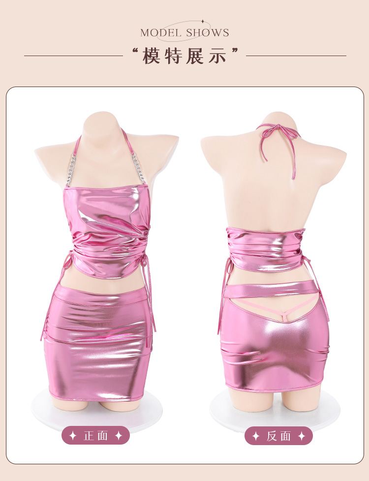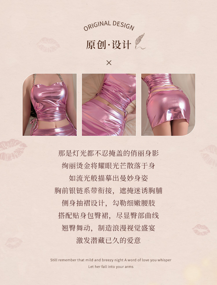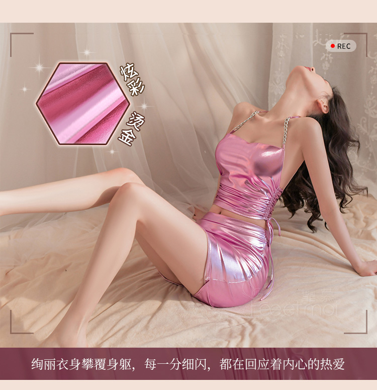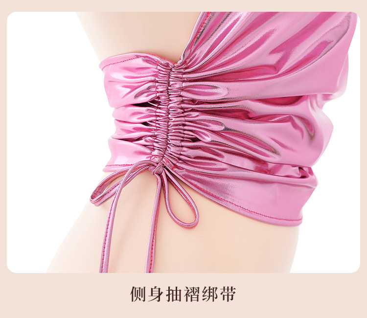 霏慕夜店风绑带抽褶分体套装6727