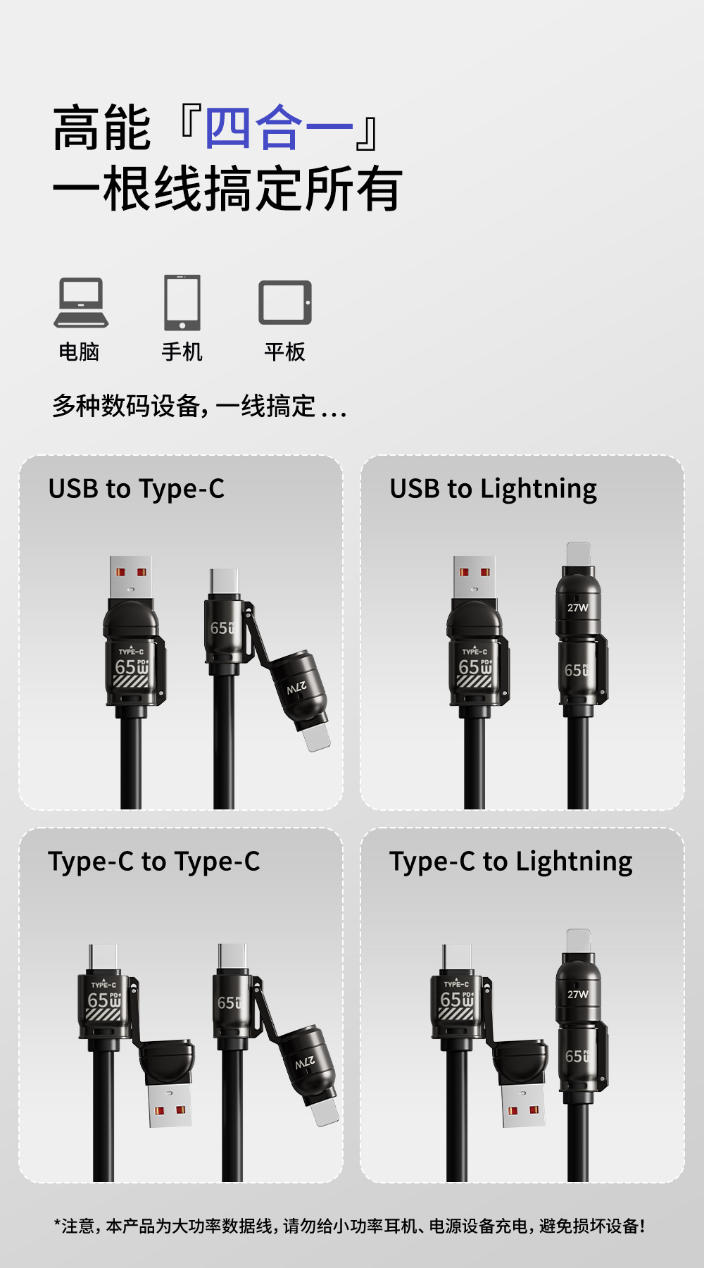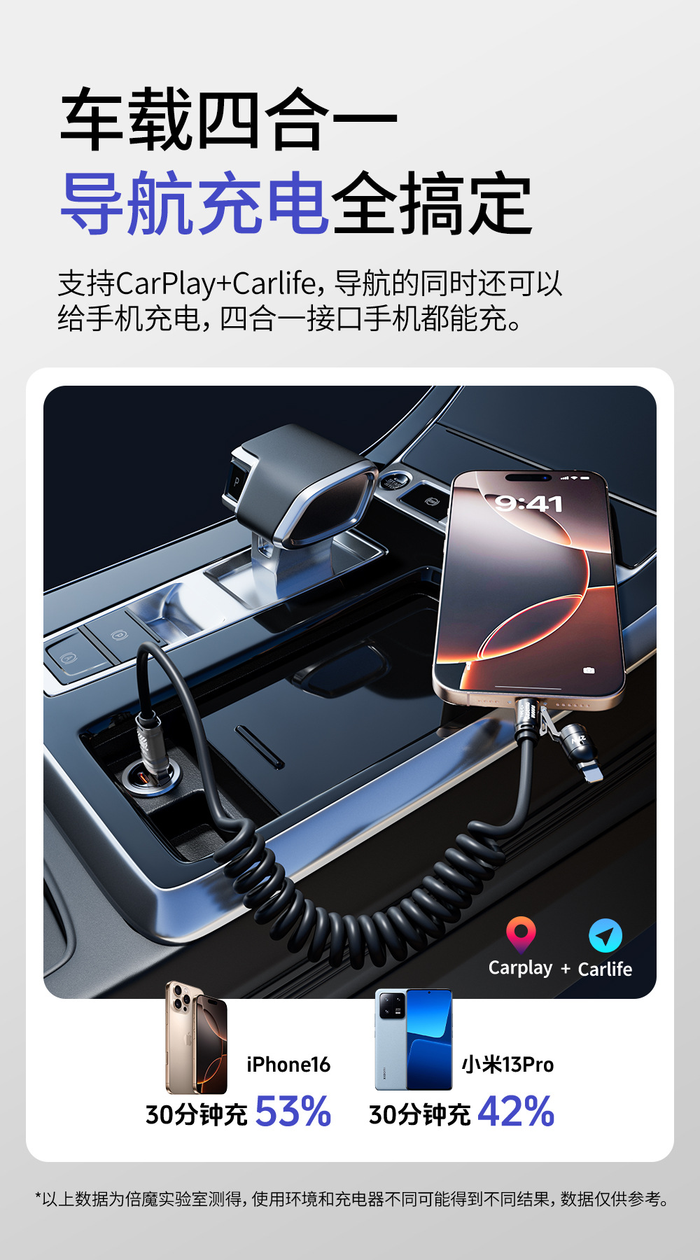 「3米弹簧线!四合一插头」倍魔65W超级快充弹簧数据线 四合一适用于华为苹果16数码配件 商品图4