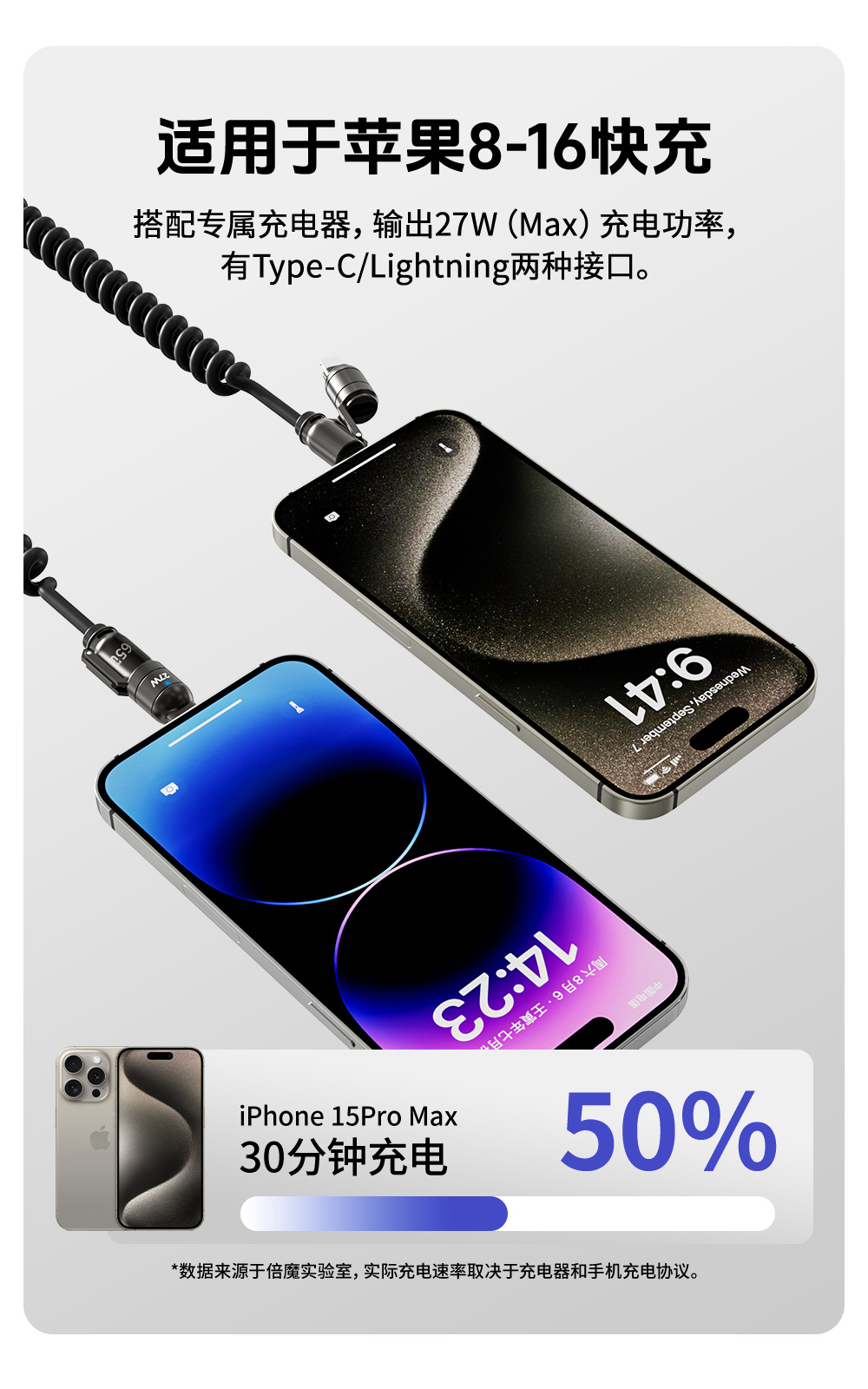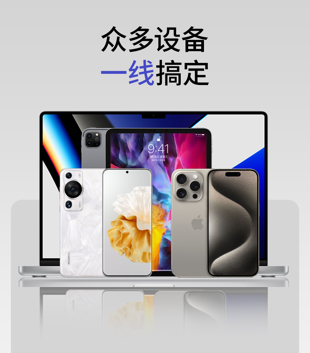 「3米弹簧线!四合一插头」倍魔65W超级快充弹簧数据线 四合一适用于华为苹果16数码配件 商品图3