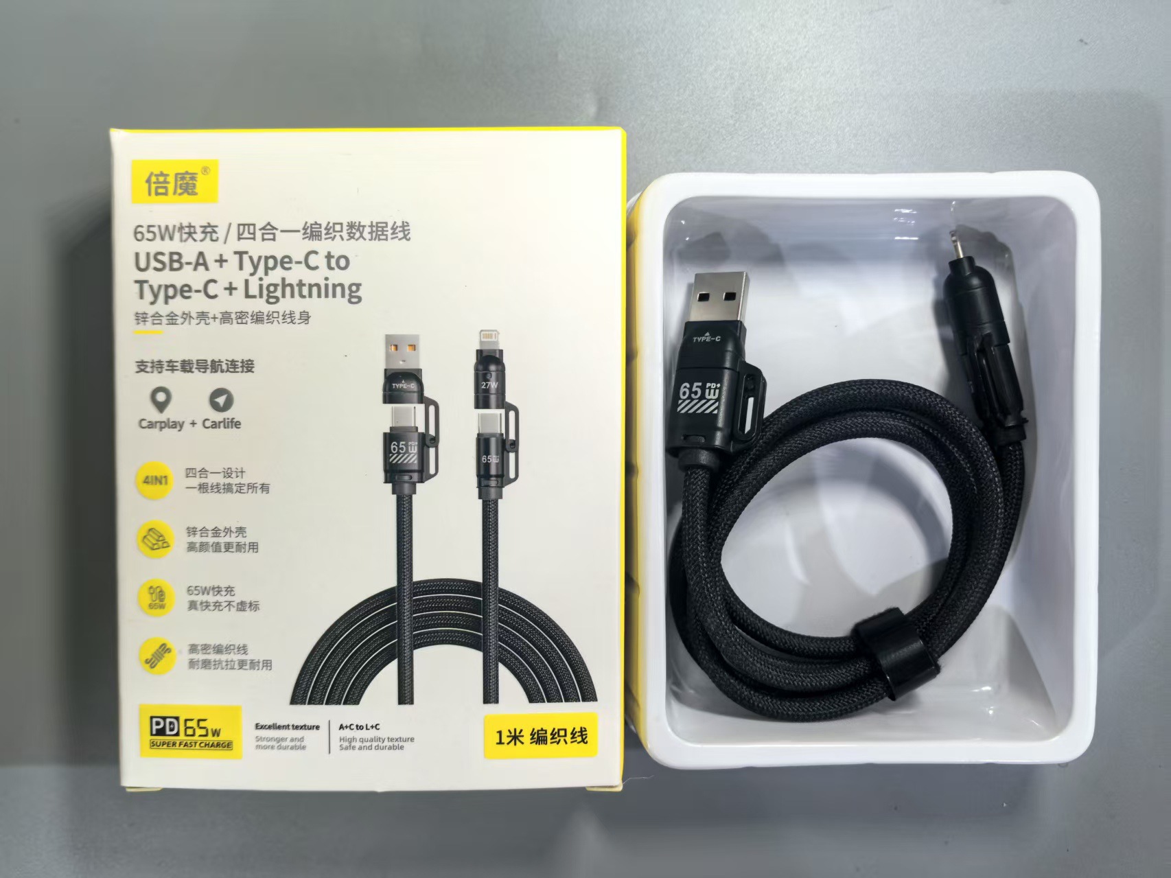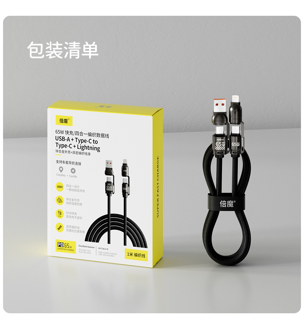 「3米弹簧线!四合一插头」倍魔65W超级快充弹簧数据线 四合一适用于华为苹果16数码配件 商品图1