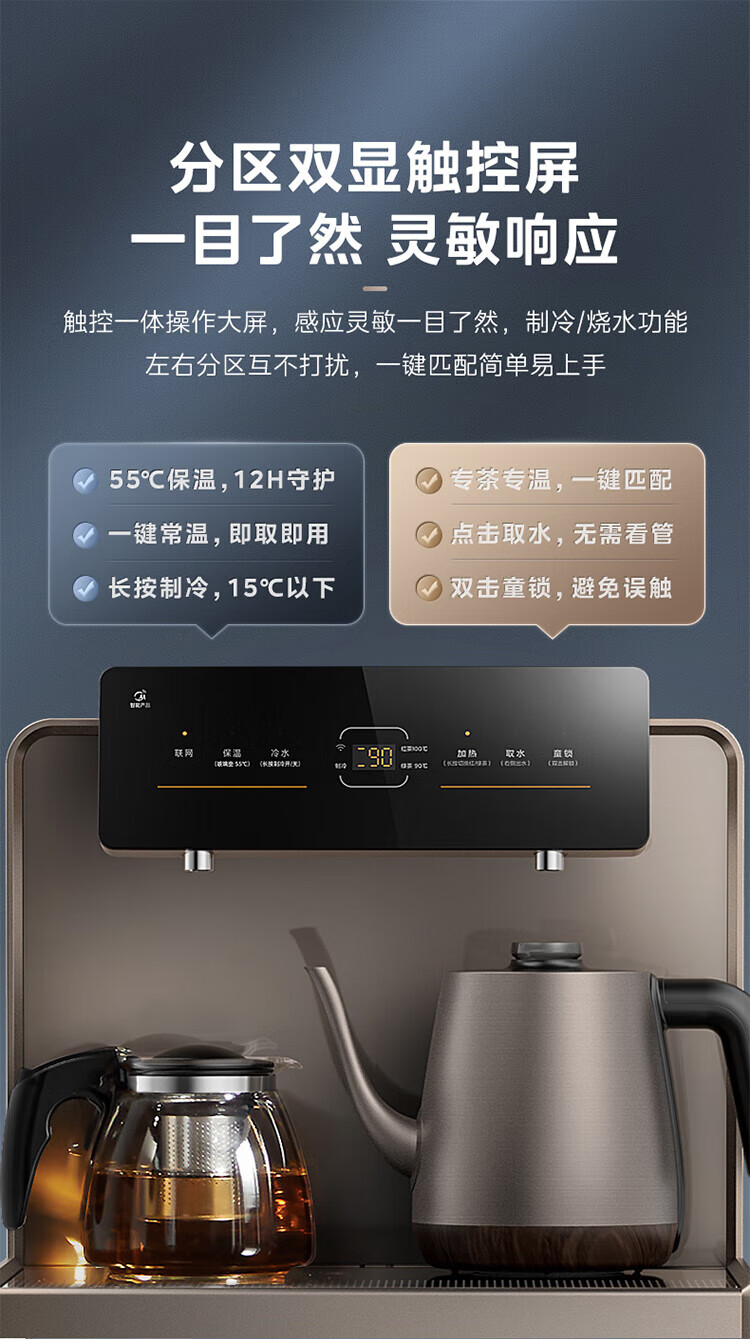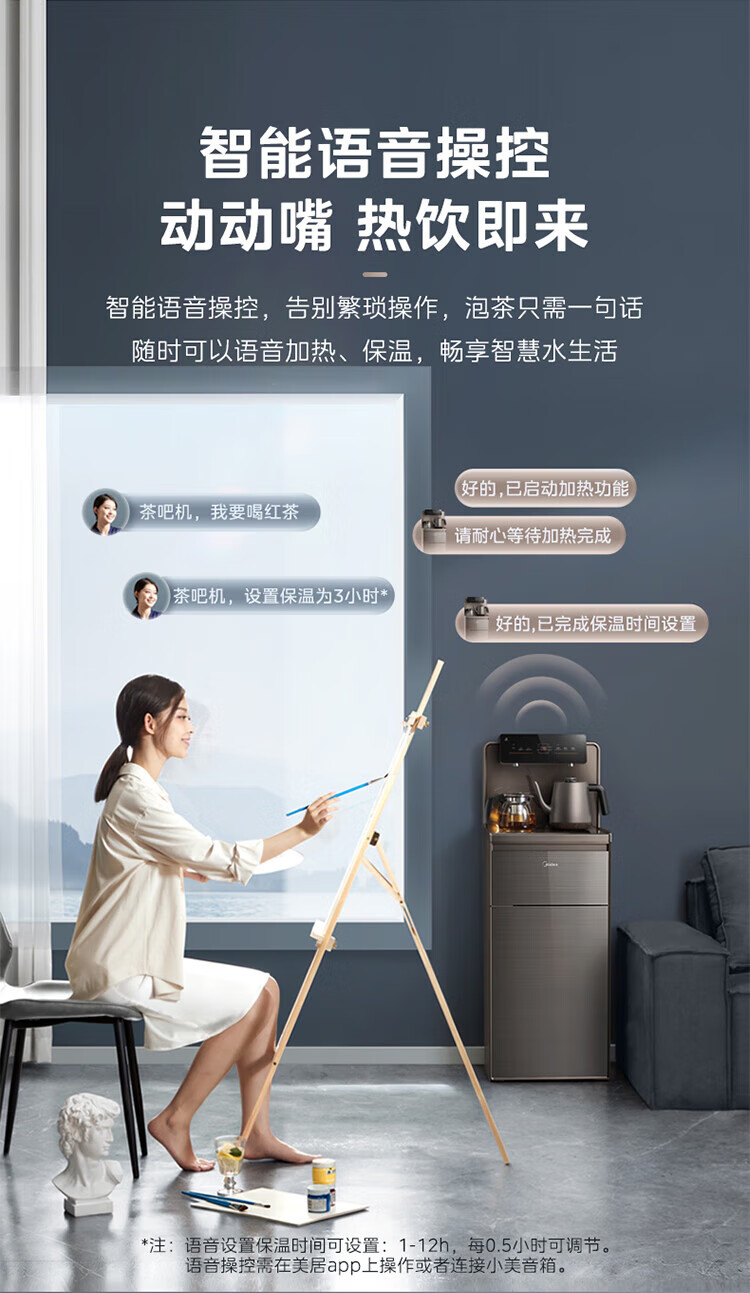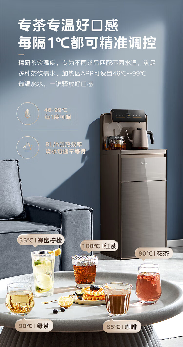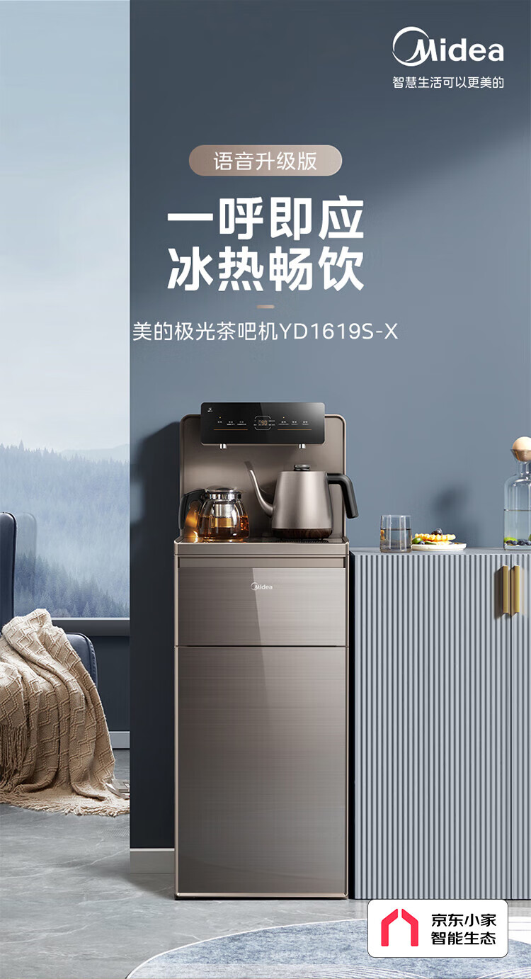美的(Midea)茶吧机 家用茶吧机智能语音操控制冷饮水机 YD1619S-X