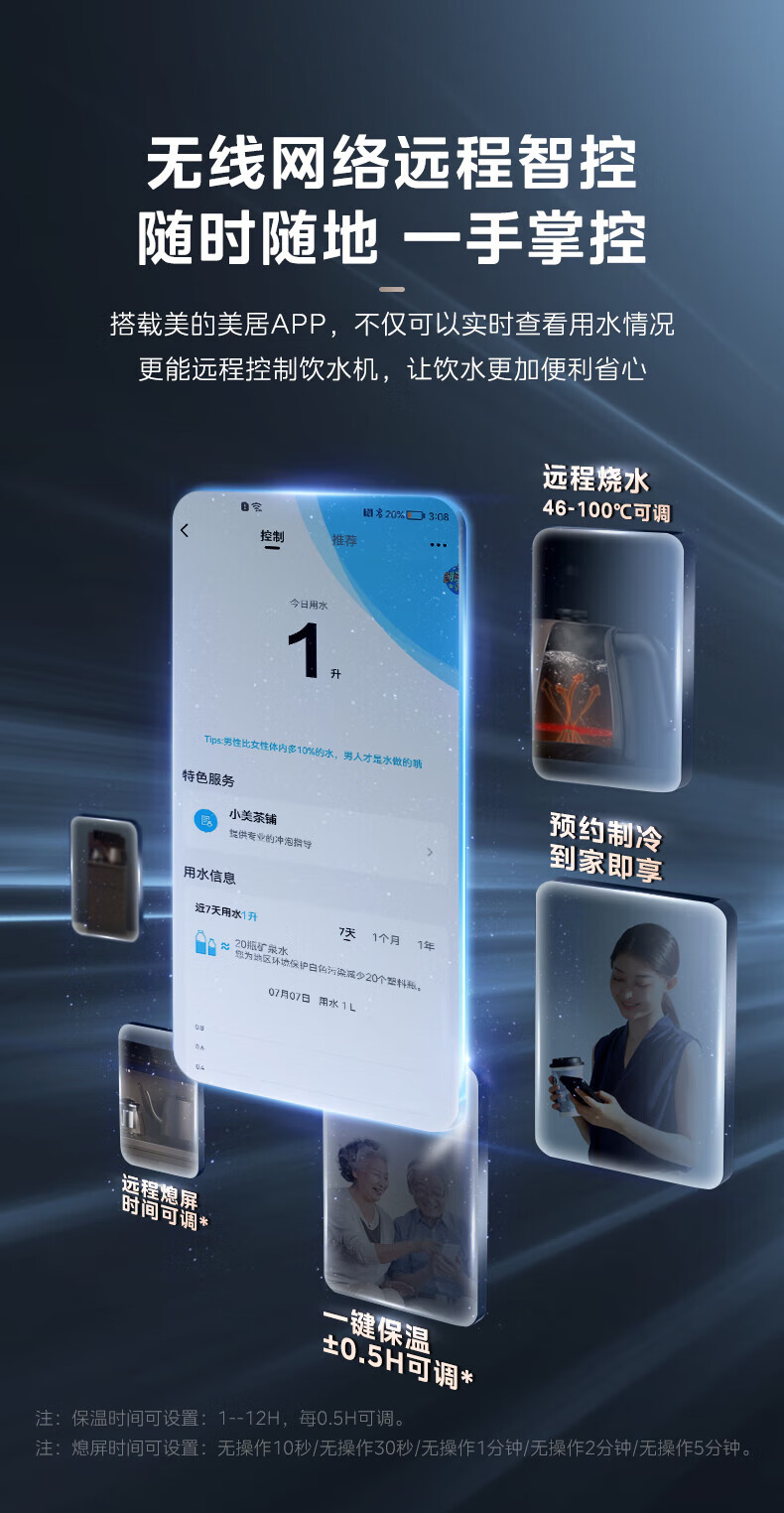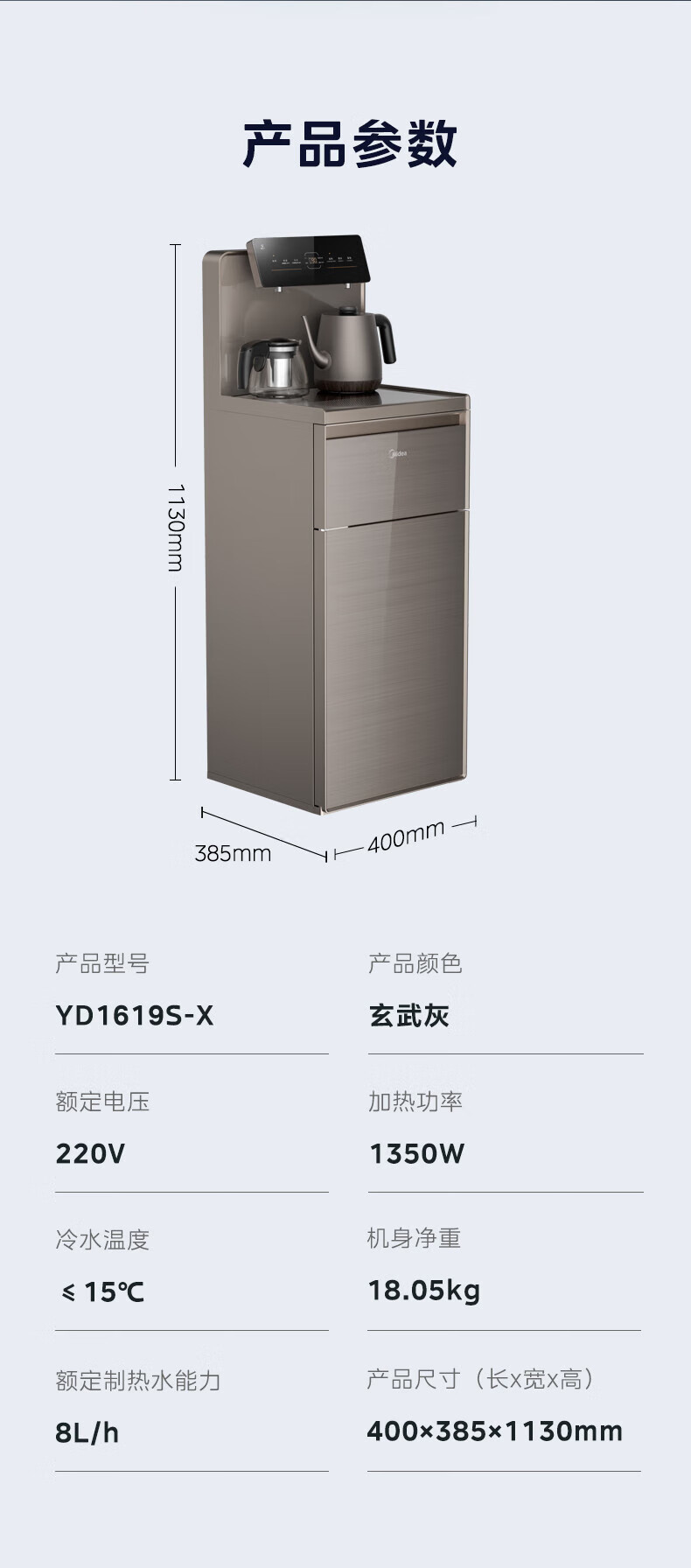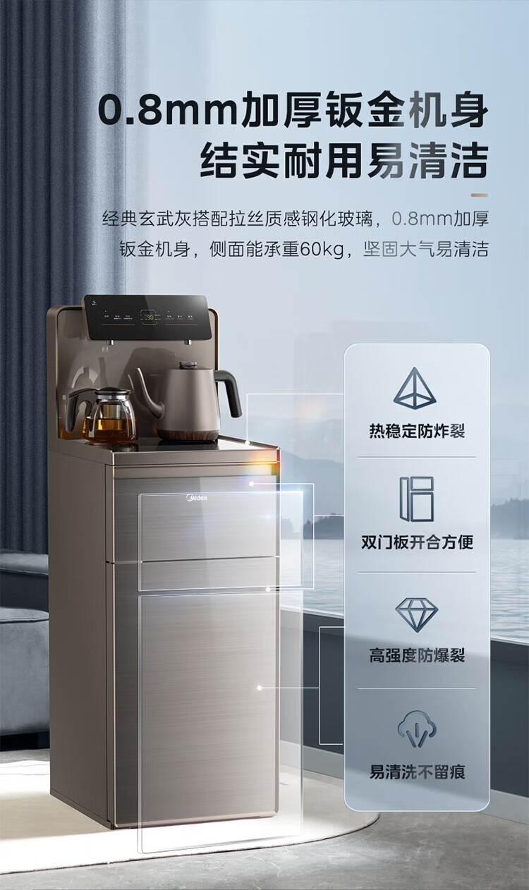 美的(Midea)茶吧机 家用茶吧机智能语音操控制冷饮水机 YD1619S-X