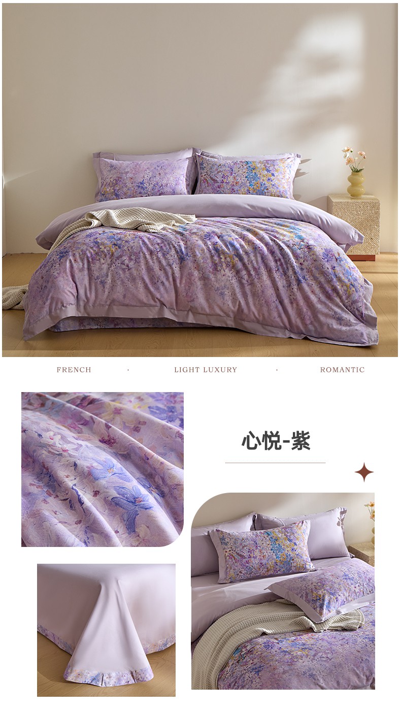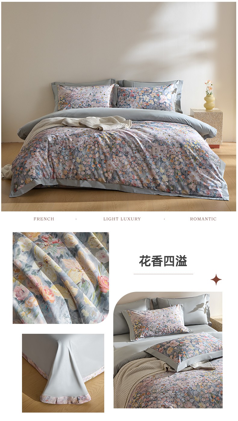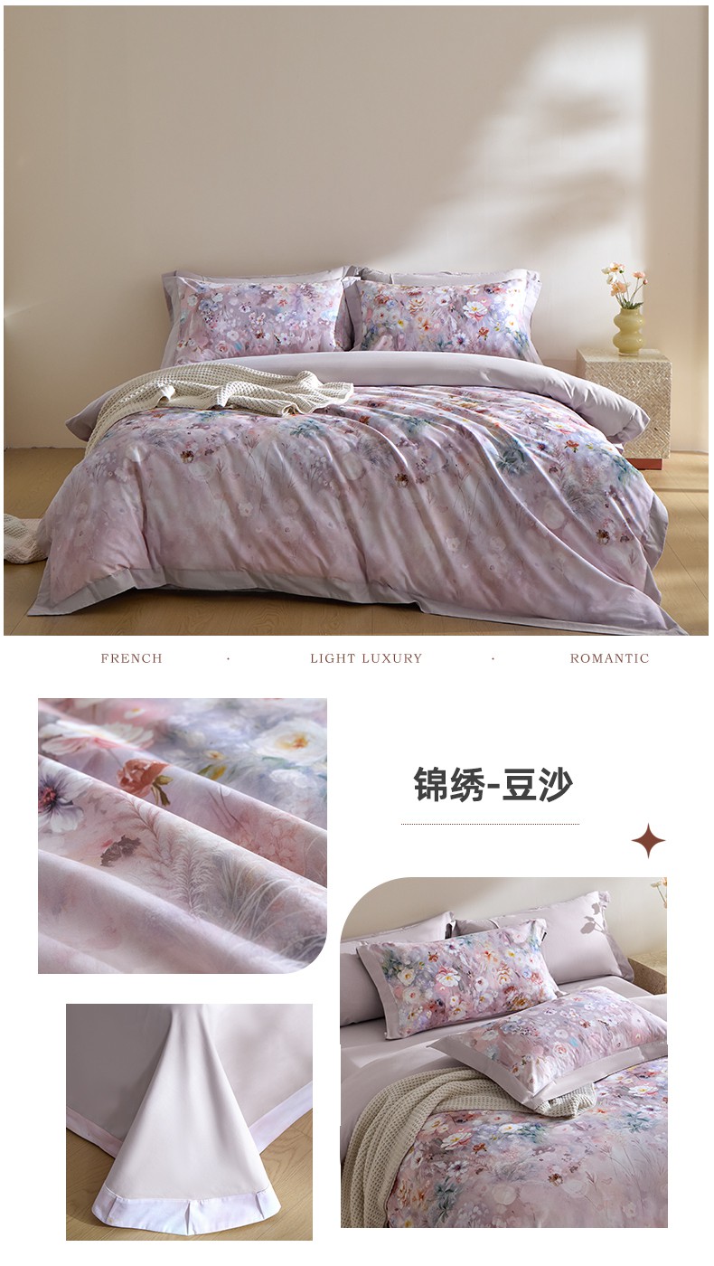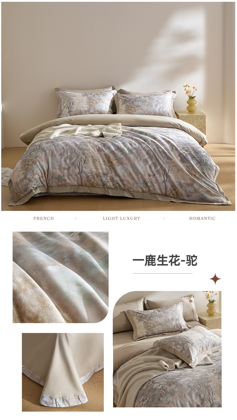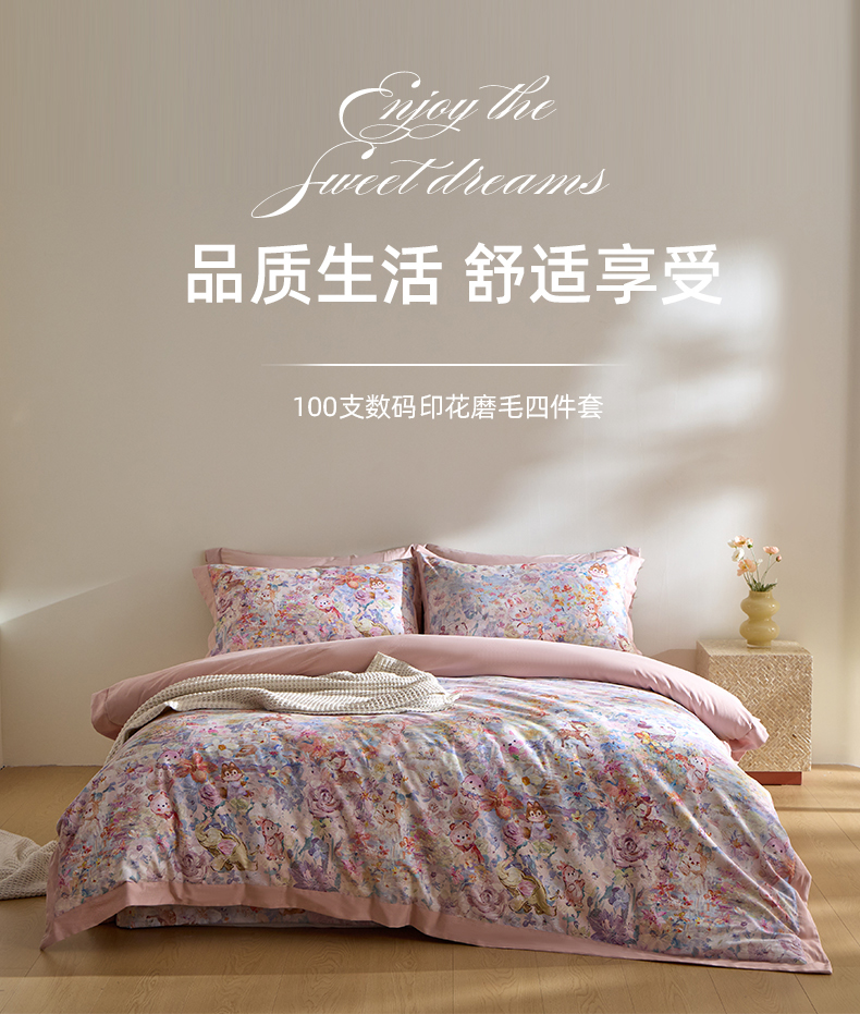 【热卖推荐】自然醒全棉贡缎数码100支长绒棉磨毛四件套(带高档礼盒)HS