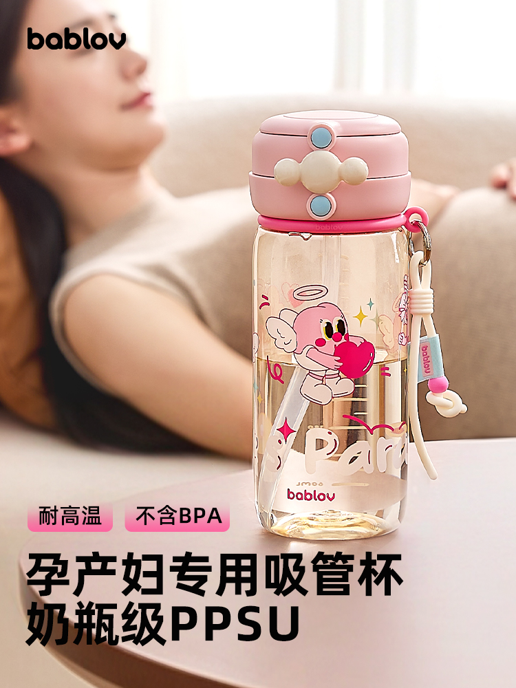 bablov吸管水杯孕妇产妇专用便携随行杯成人躺着喝带刻度ppsu杯子