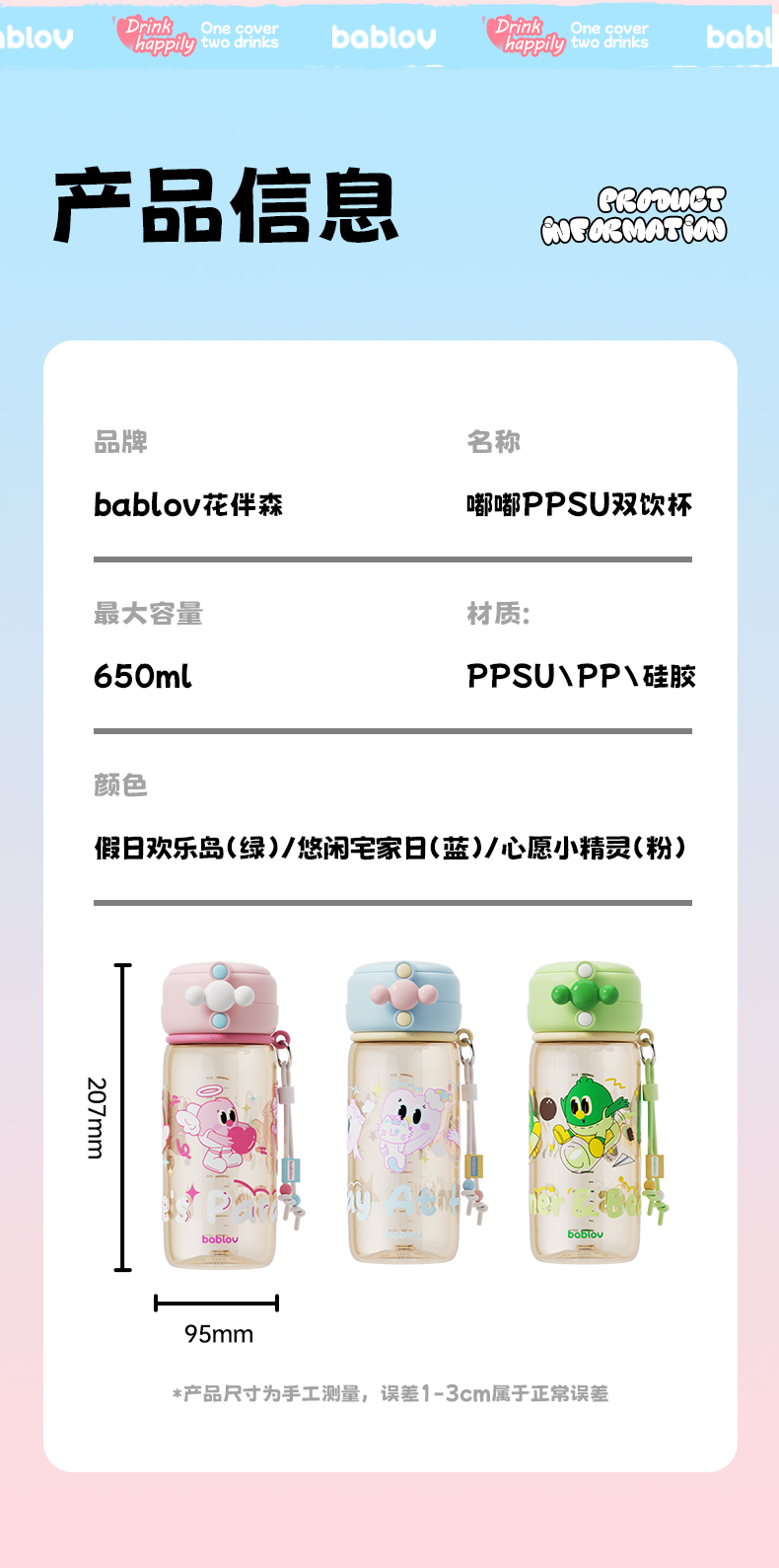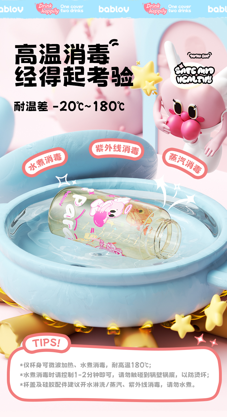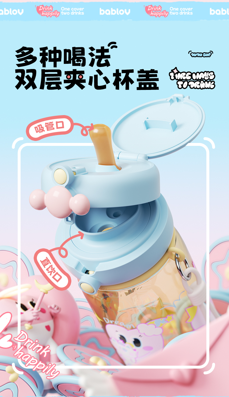 - BABLOV关注中国人的饮水健康,更不断探索未知可能性,专注于新生代自我个性表达,创造玩味新潮的产品体系。希望将水杯带入Z世代年轻人的生活,传递更多“饮”响力。