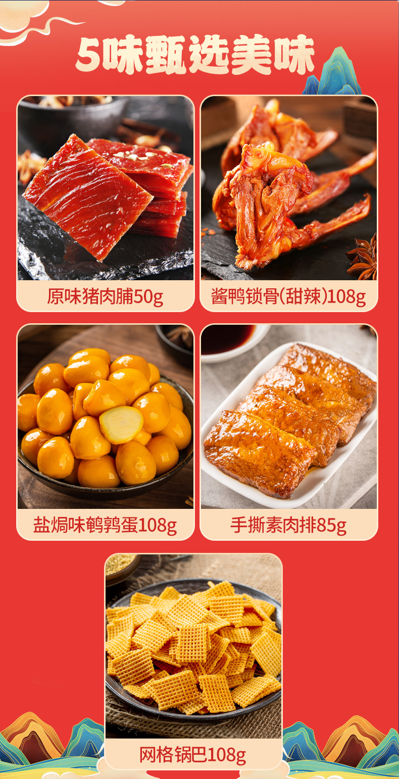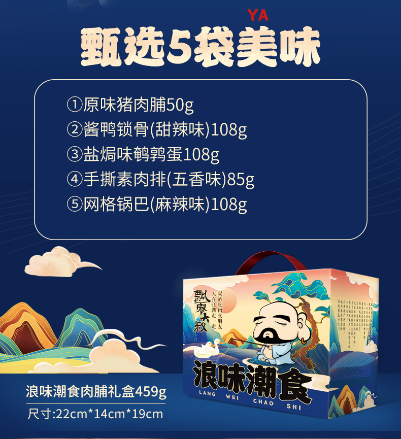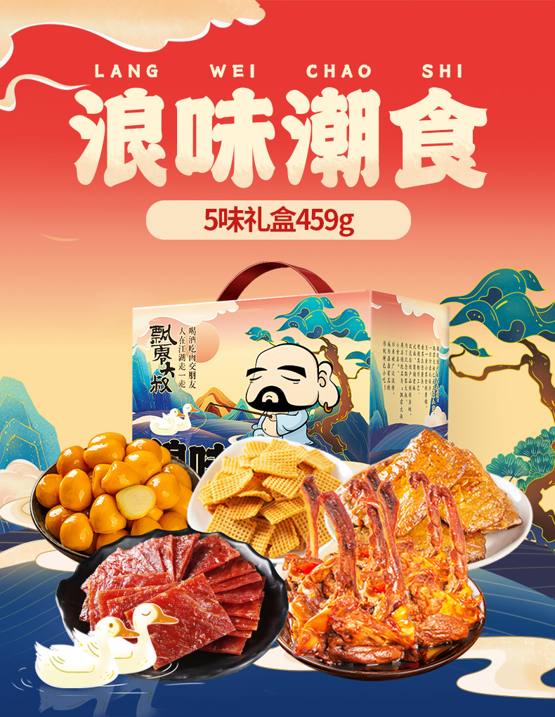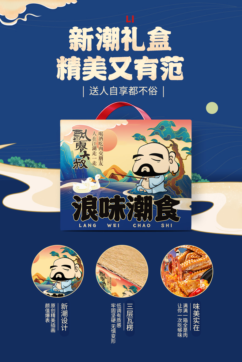 飘零大叔【年货礼盒】零食大礼包甜辣锁骨猪肉脯鹌鹑蛋卤味小吃特产 浪味潮食精品礼盒/1盒