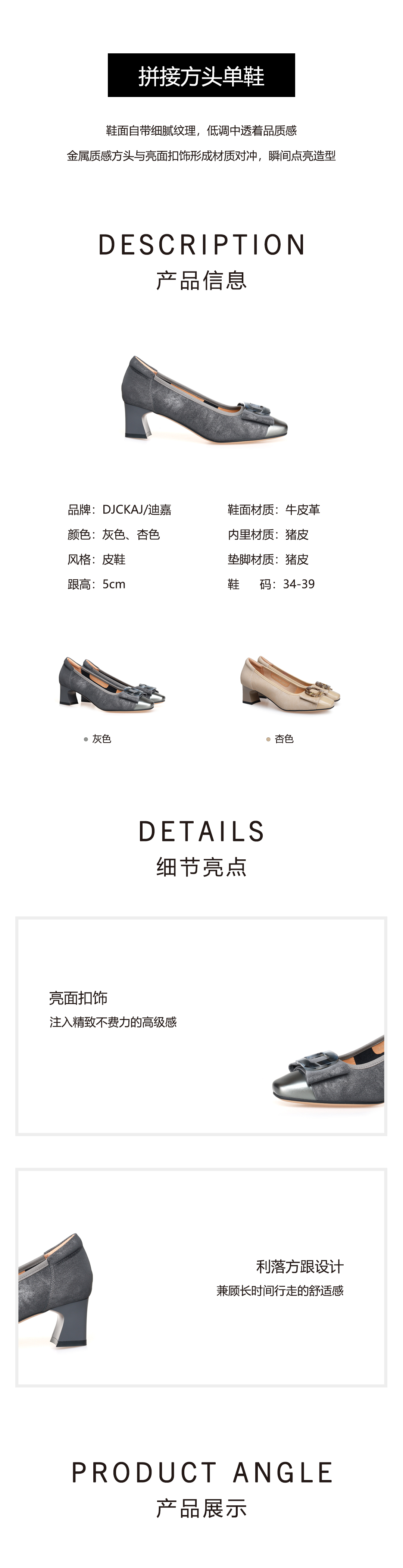 豪麟名鞋奥莱迪嘉女鞋皮鞋牛皮革DJCMO52WP205灰色 原价1660元