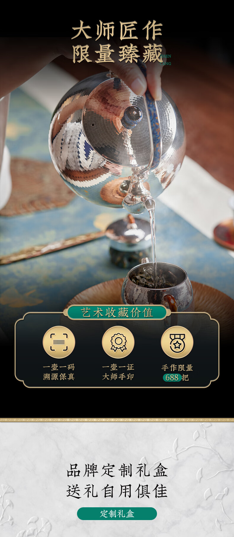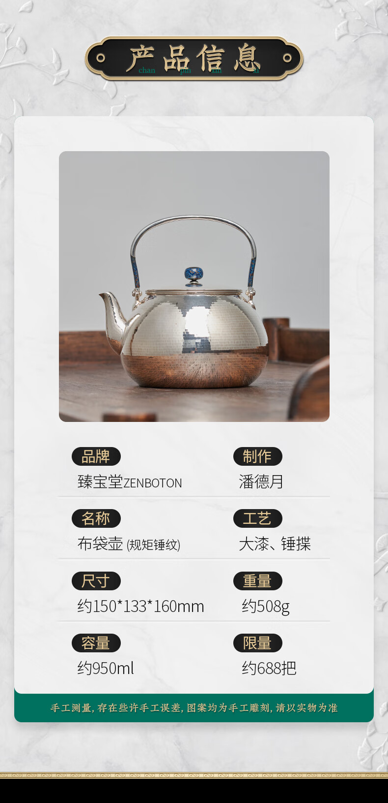 臻宝堂-布袋银壶(规矩锤纹)950ml 样品