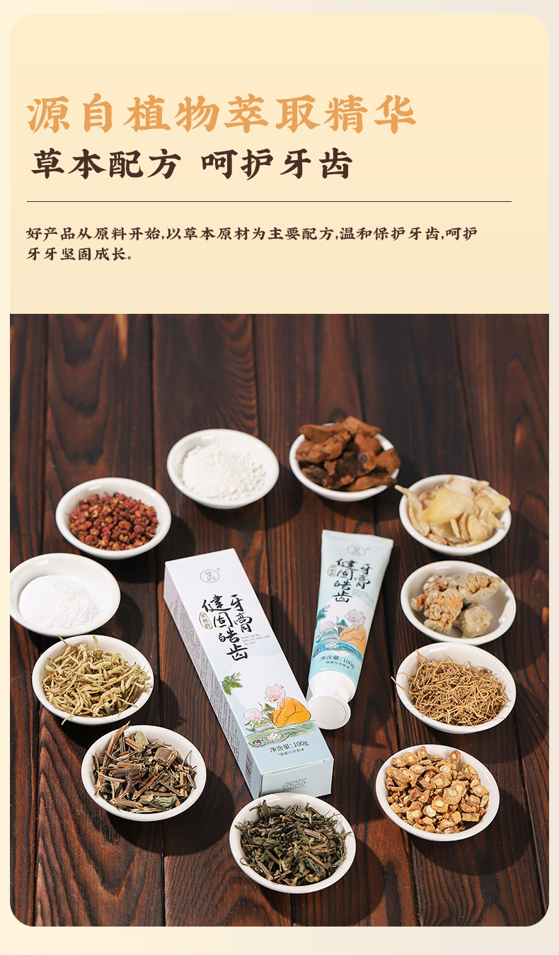 【健固皓齿牙膏】洗护|草本专研护齿,净护萌牙成长|草本味