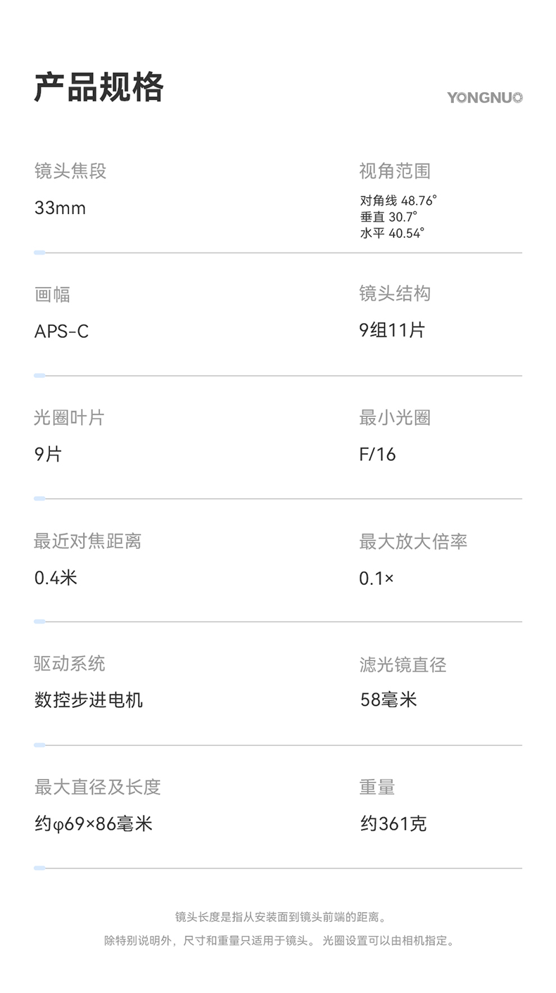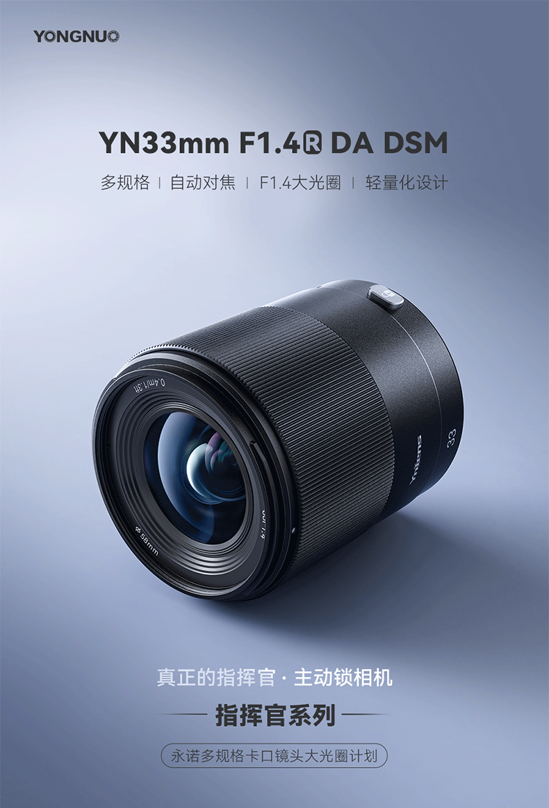 永诺 33mm F1.4 多规格卡口APS-C画幅自动对焦镜头YN33mm F1.4R DA DSM 【顺丰包邮】