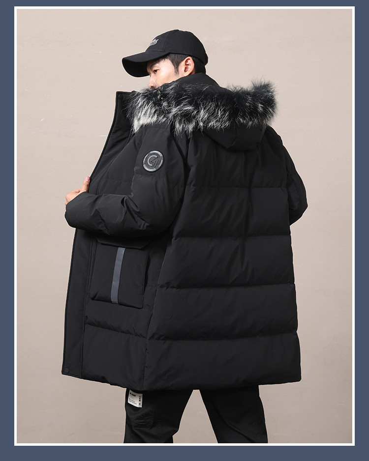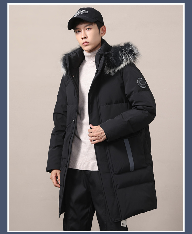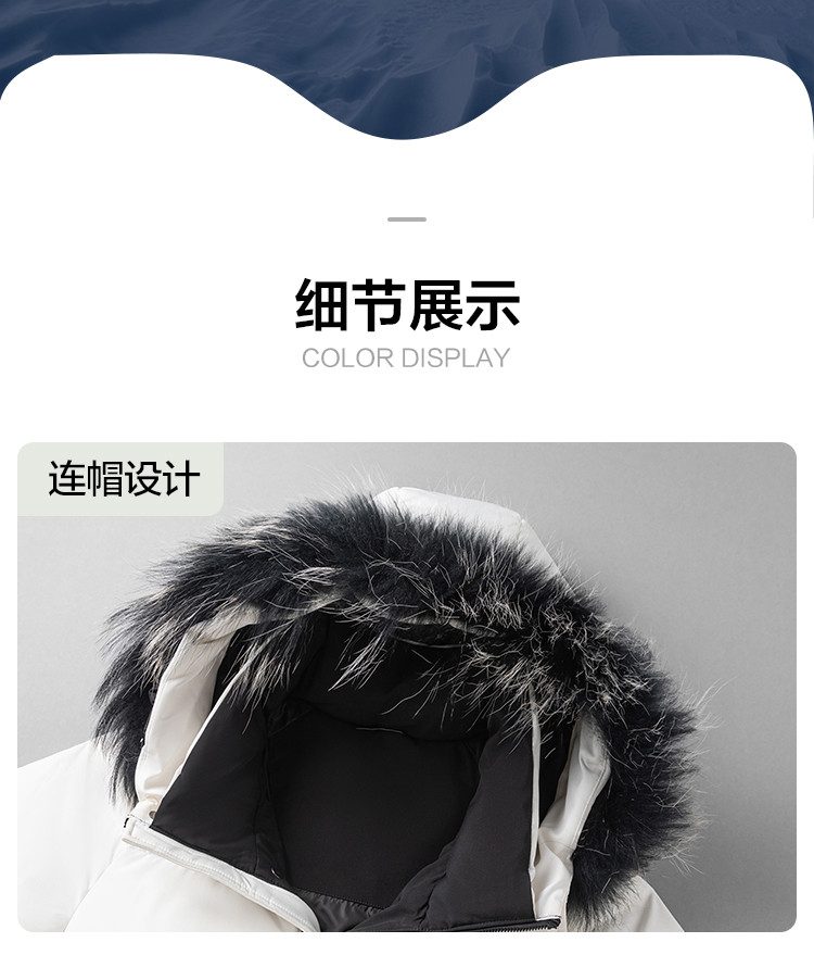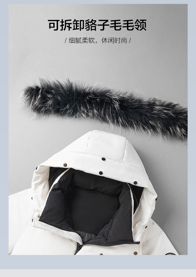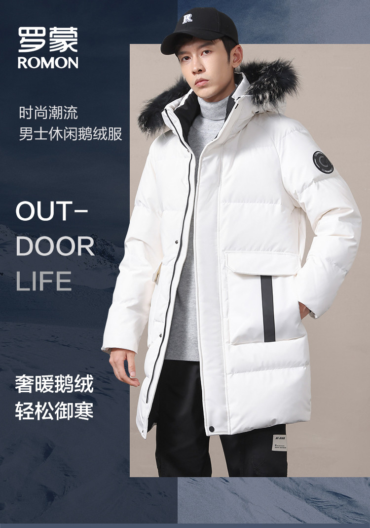 【白鹅绒 银貉子毛领】罗蒙秋冬中长款羽绒服男士休闲连帽款可拆卸毛领羽绒服外套