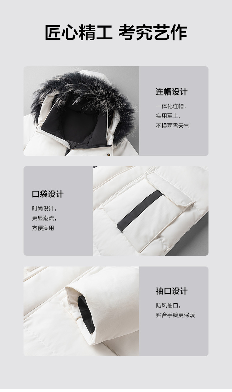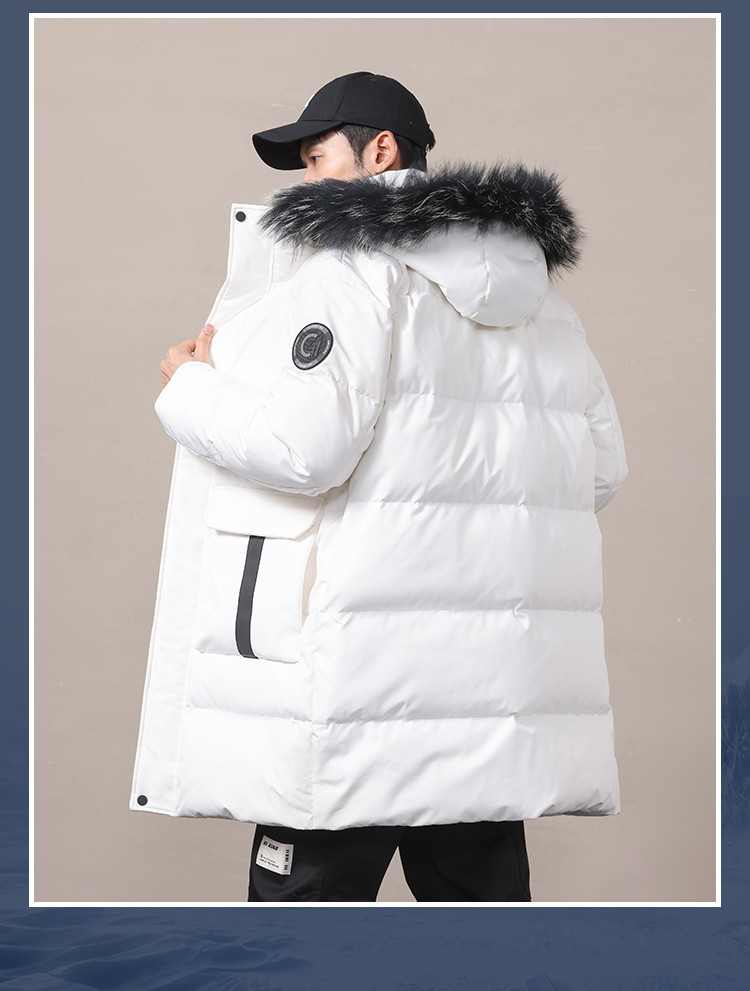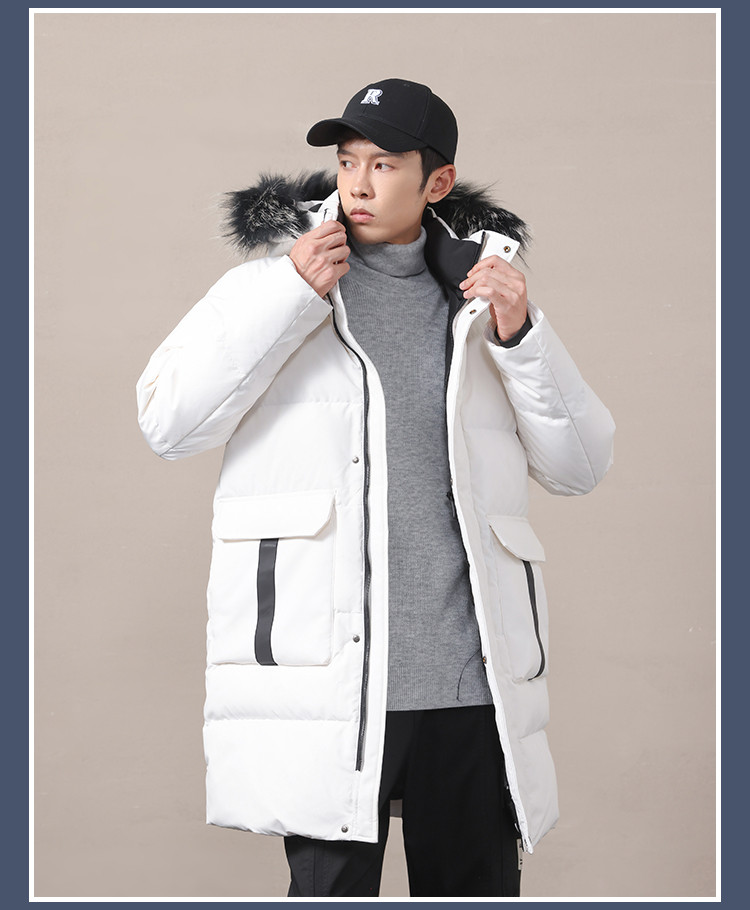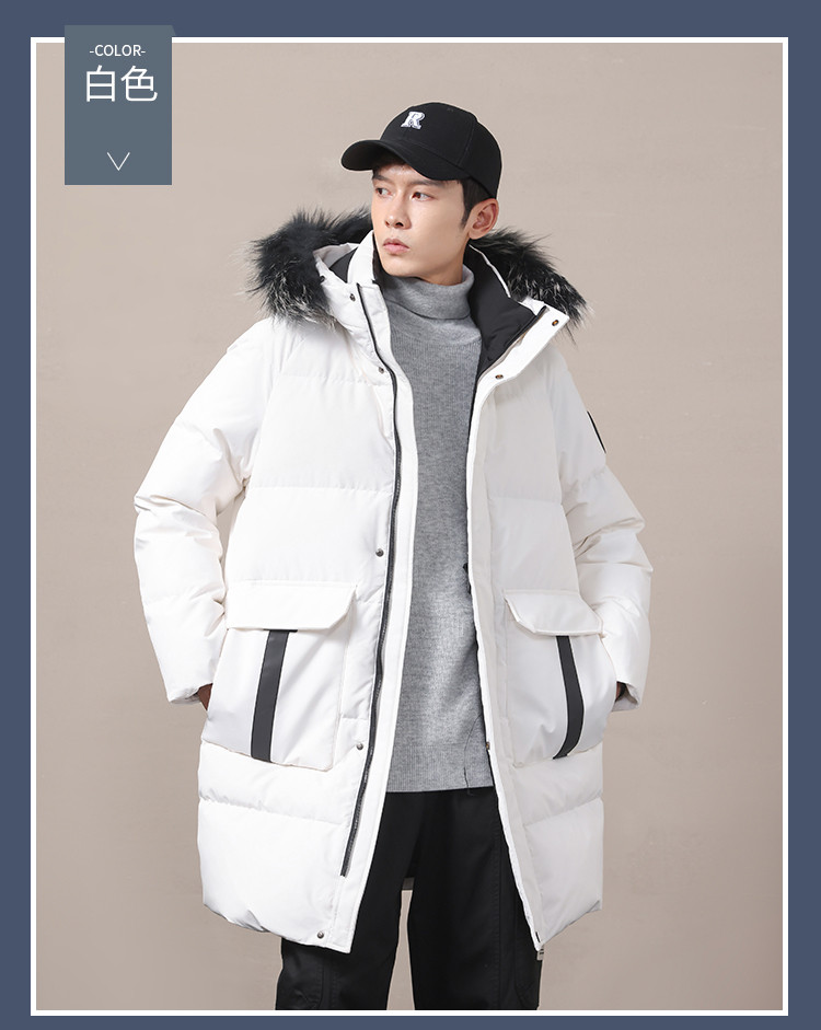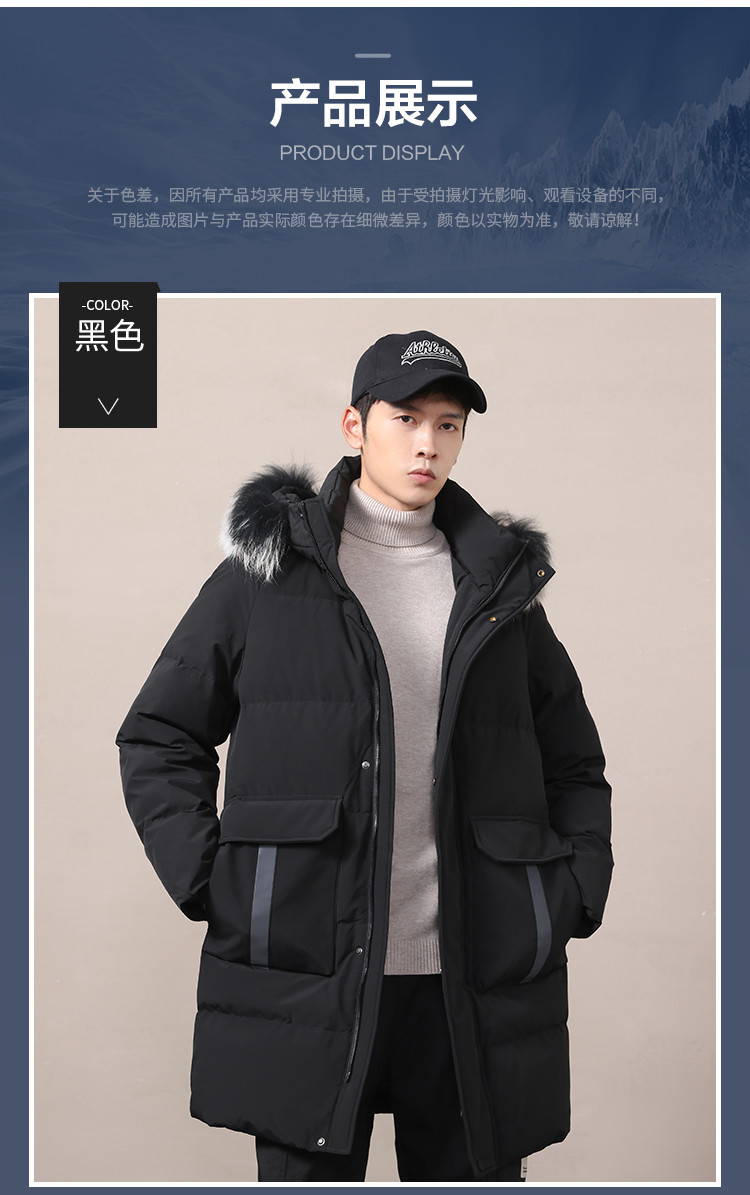 【白鹅绒 银貉子毛领】罗蒙秋冬中长款羽绒服男士休闲连帽款可拆卸毛领羽绒服外套