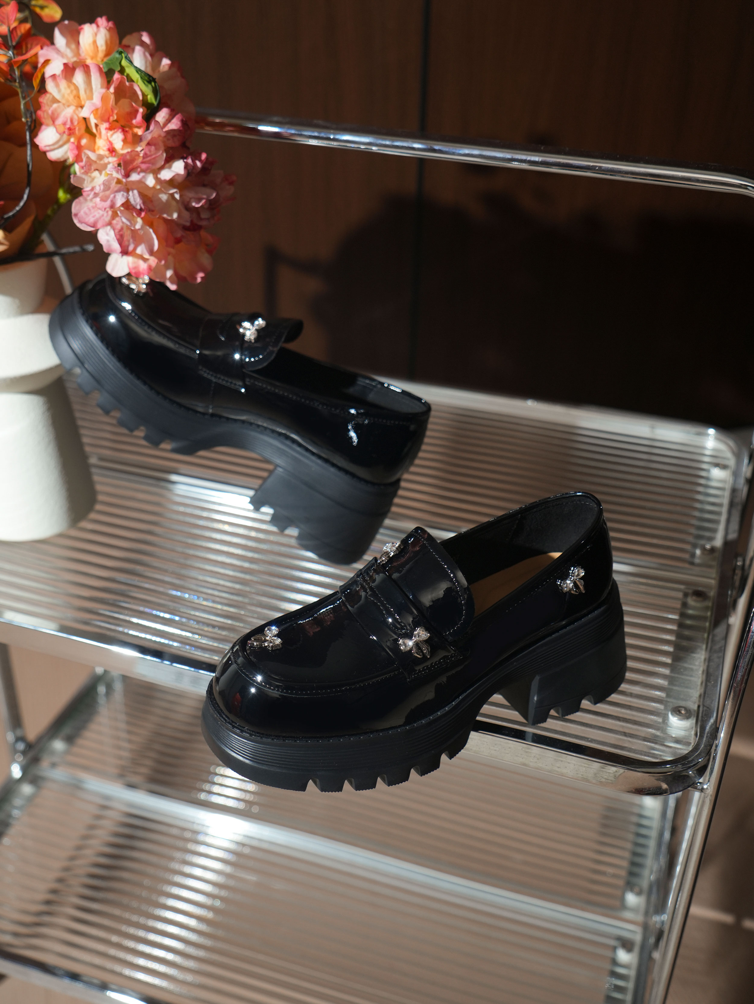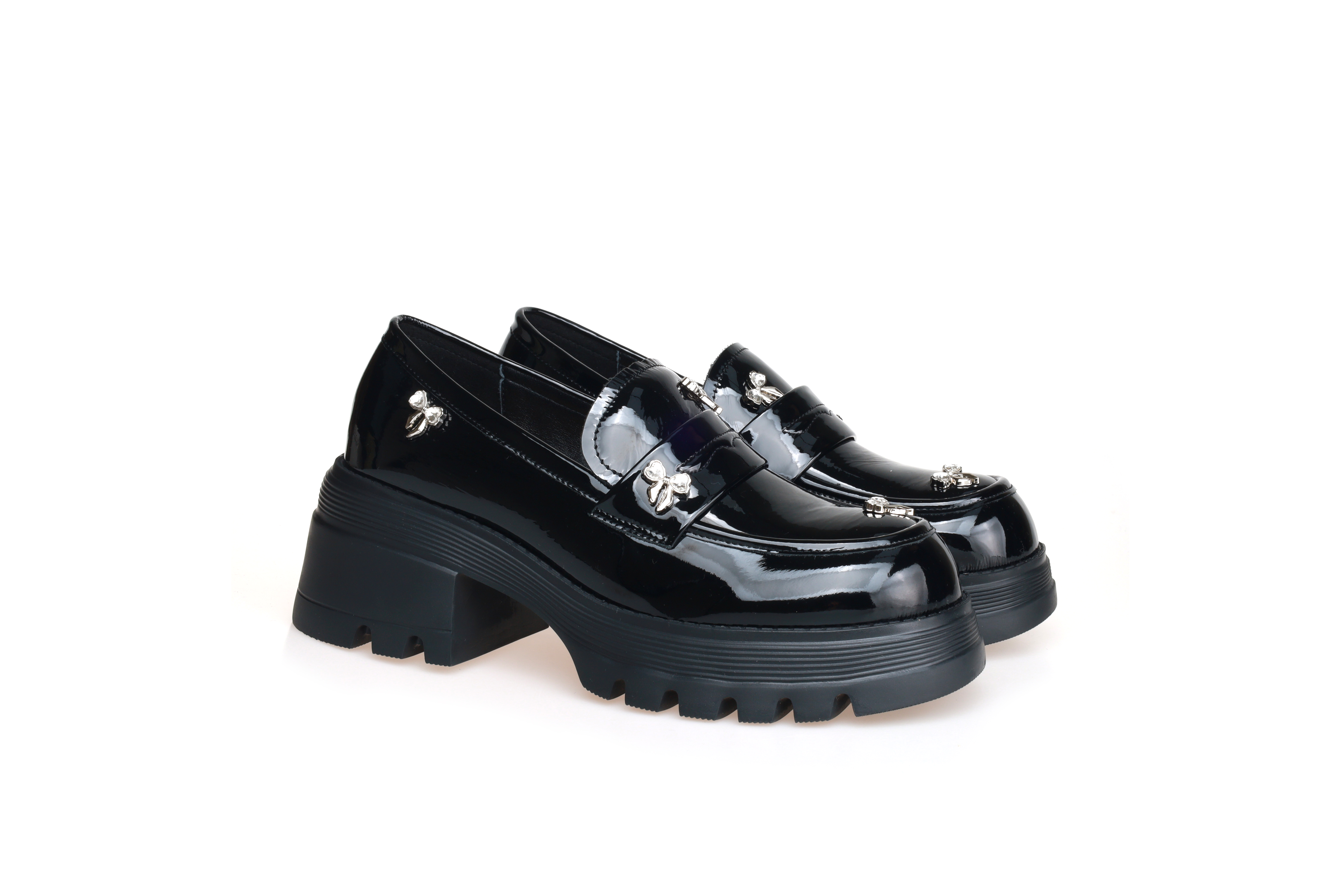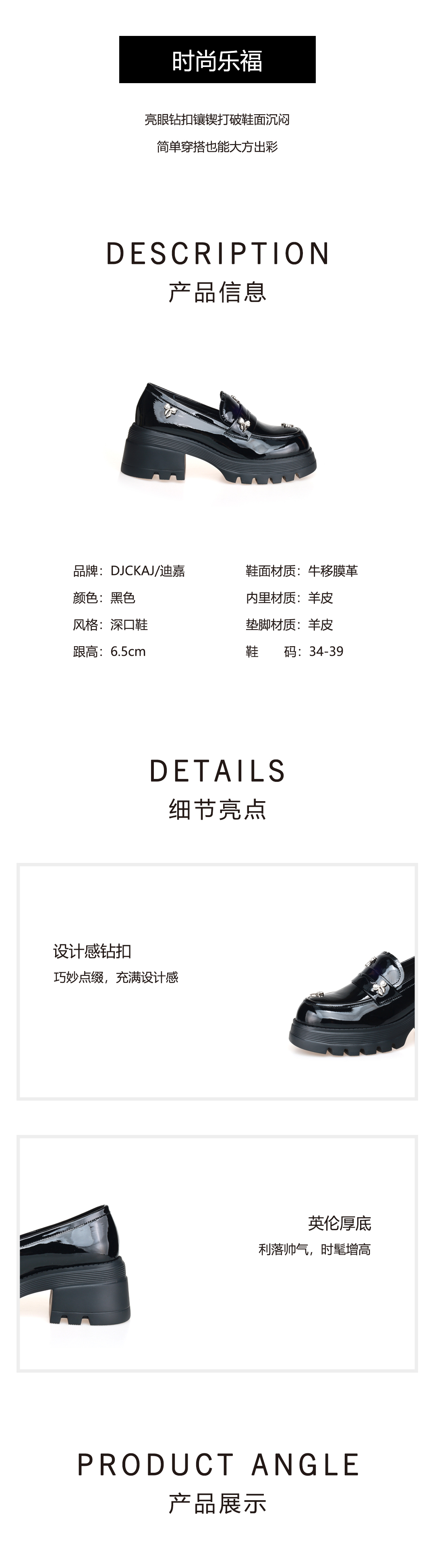 豪麟名鞋迪嘉女鞋乐福鞋牛移膜革DJYRA52WS007黑色
