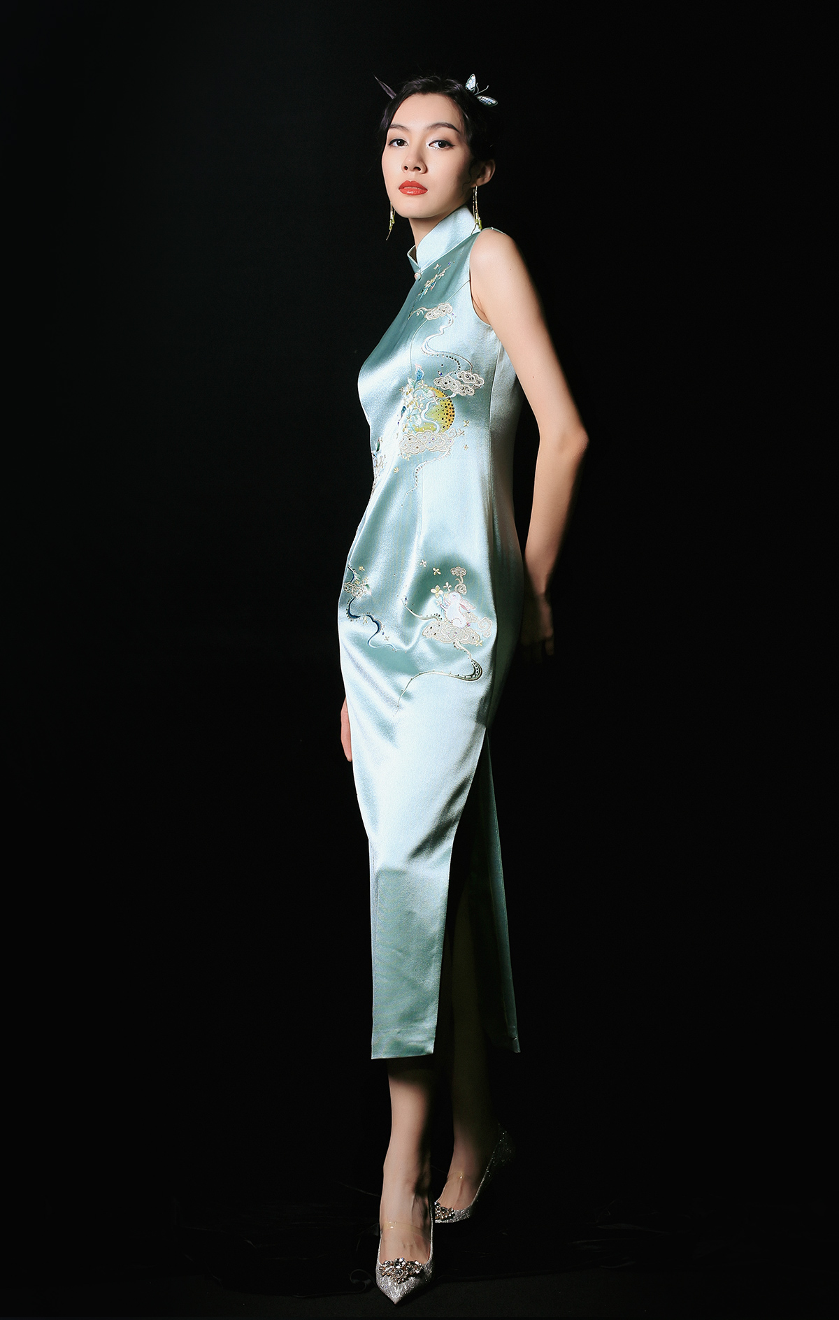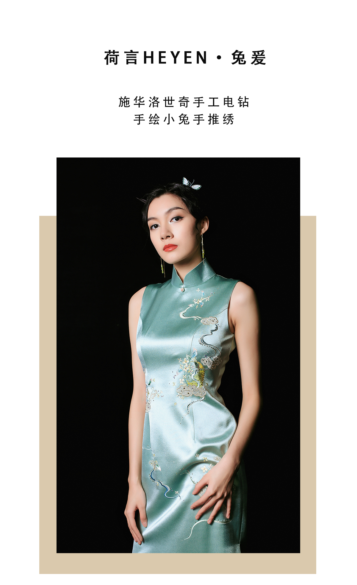 荷言HEYEN兔爰手推绣手工旗袍高级定制时装周大秀