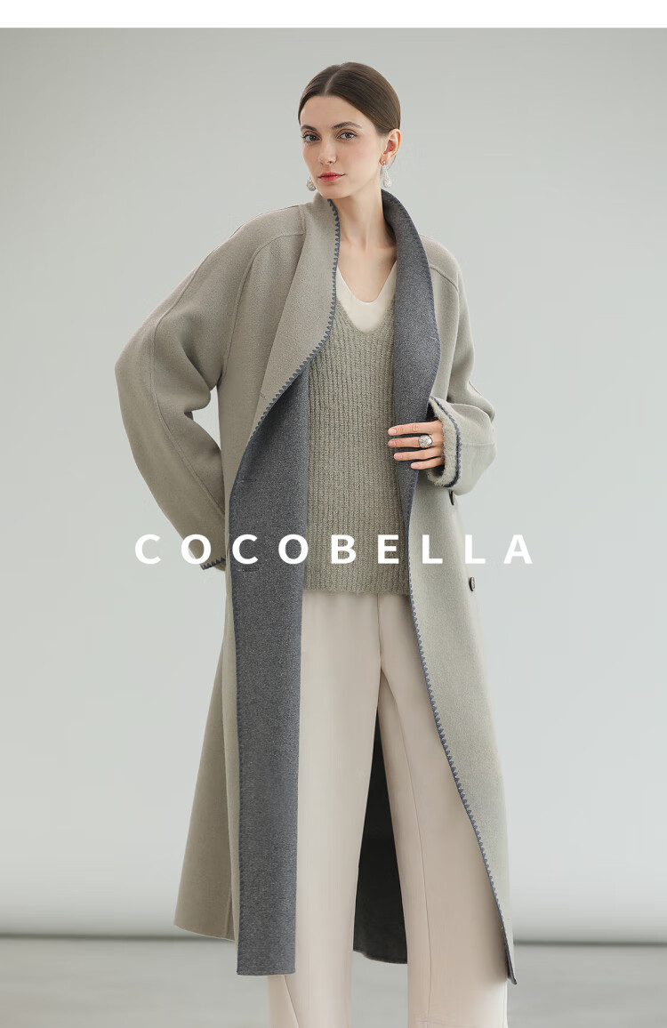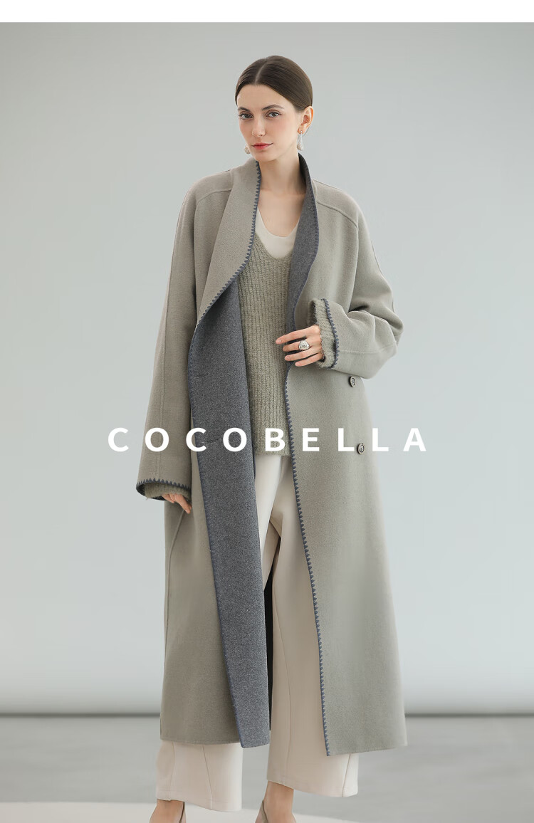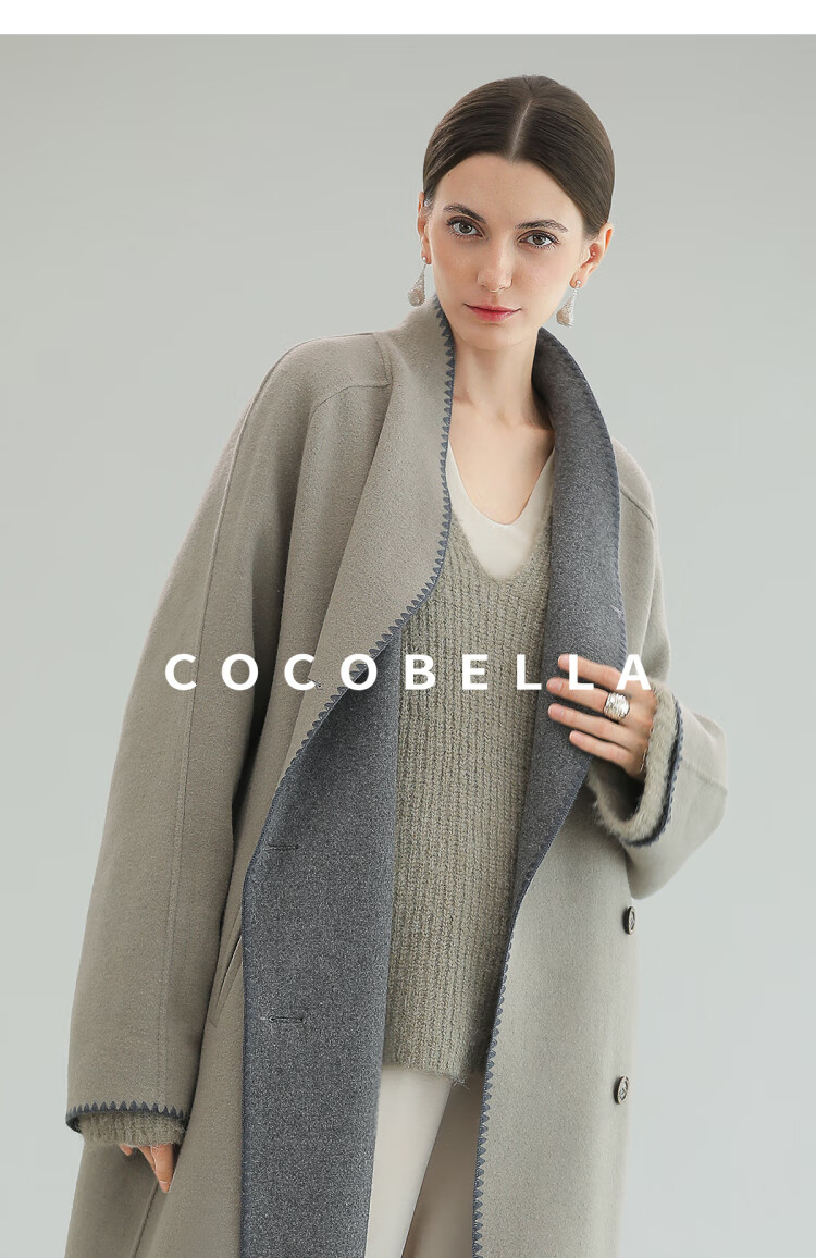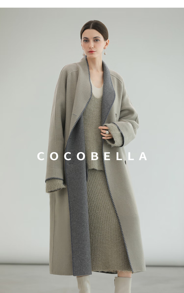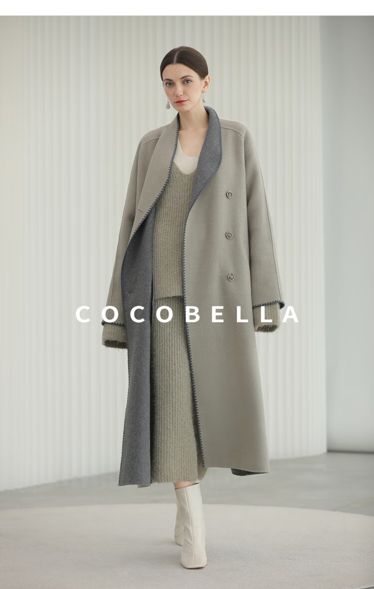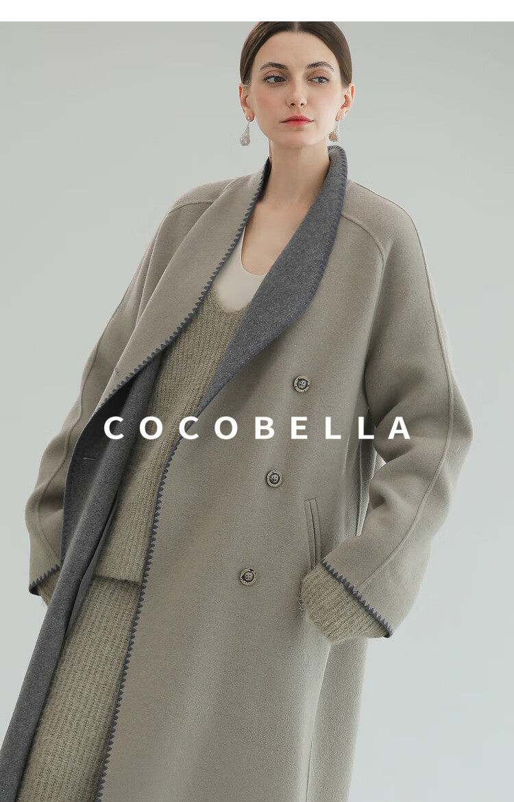 COCOBELLA[双面穿]高智感长款羊毛大衣贝壳绣毛呢外套WL7062