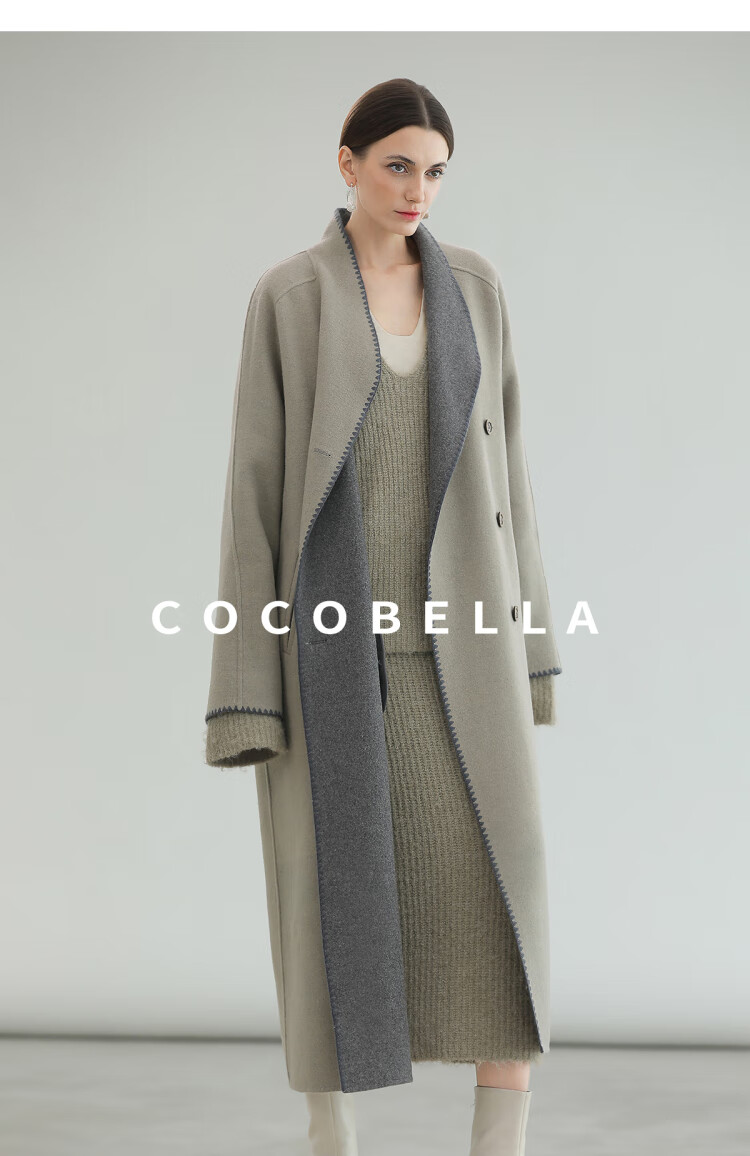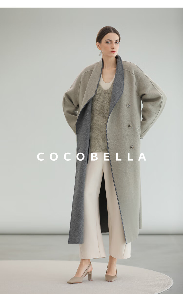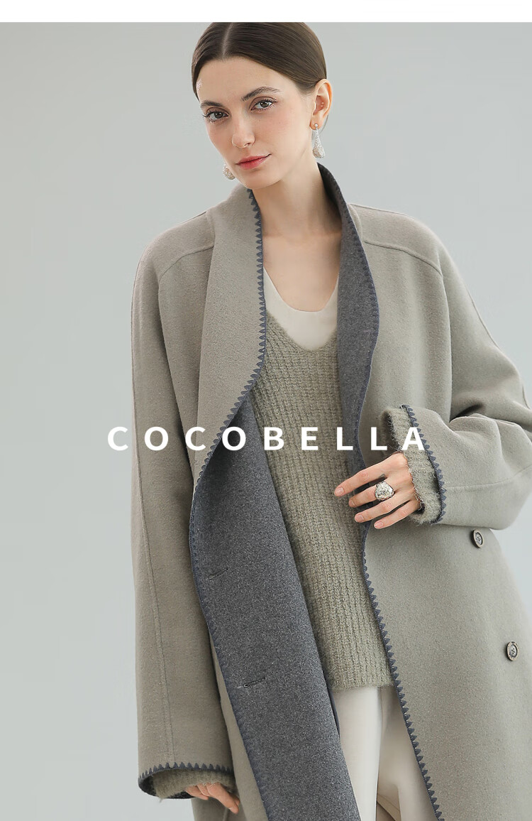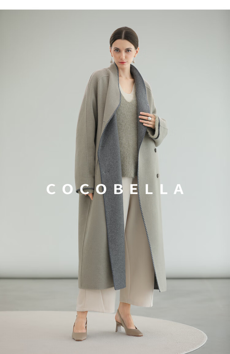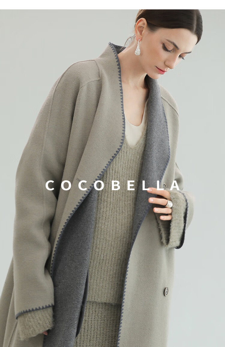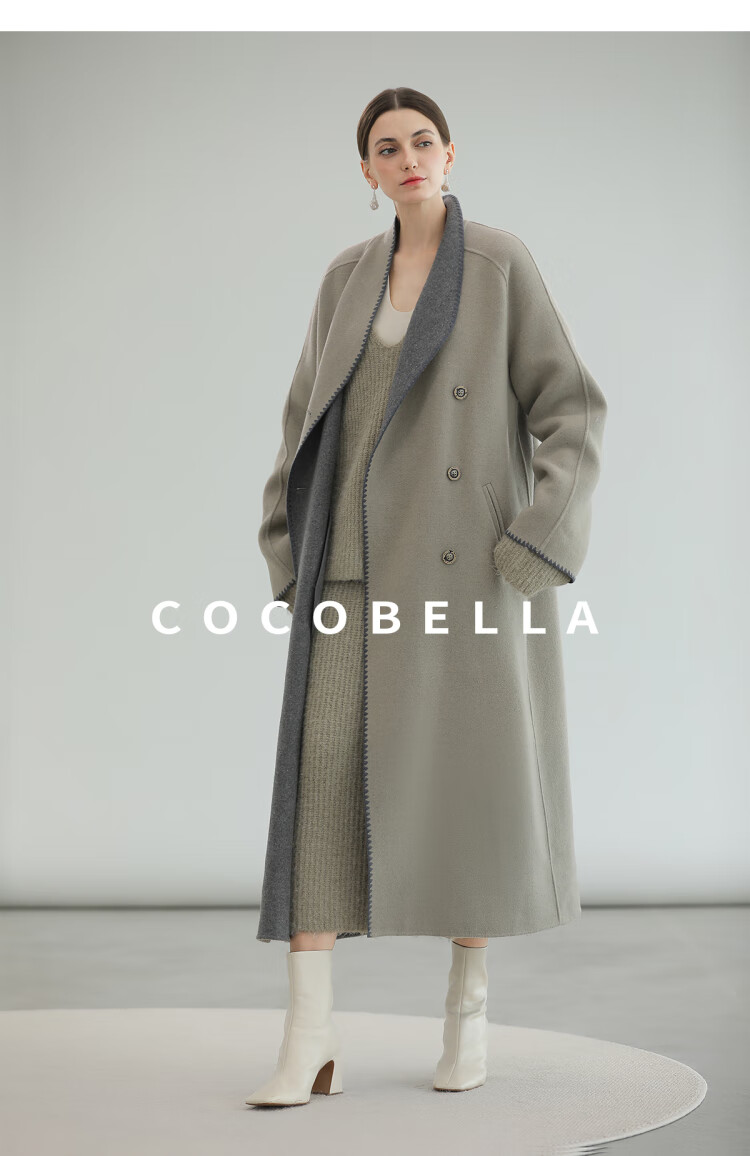 COCOBELLA[双面穿]高智感长款羊毛大衣贝壳绣毛呢外套WL7062