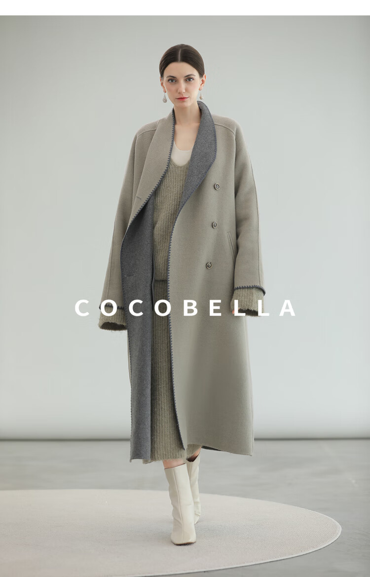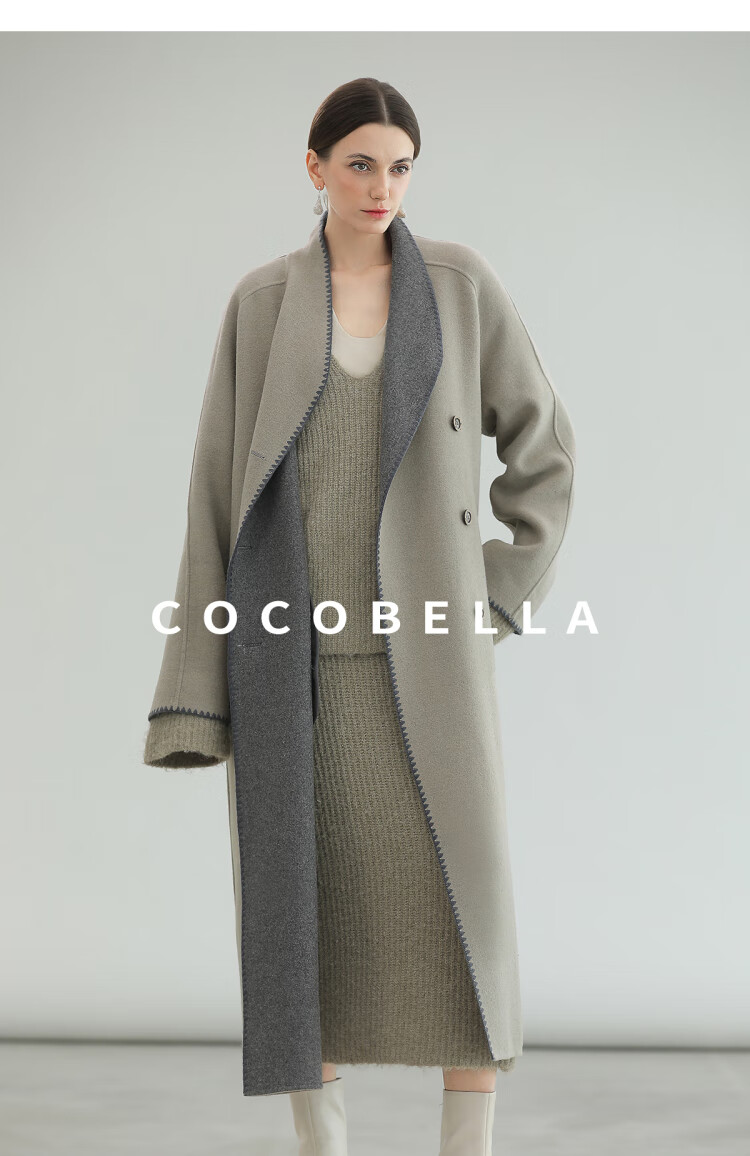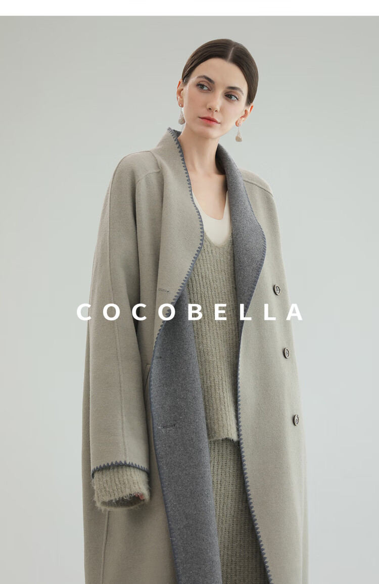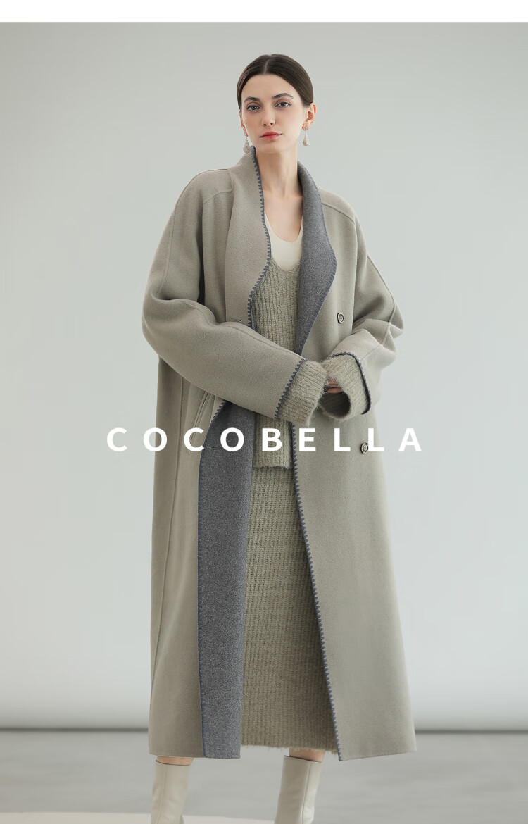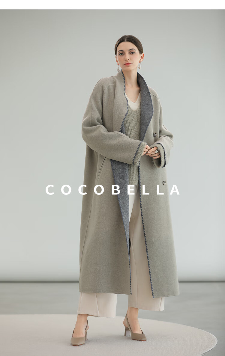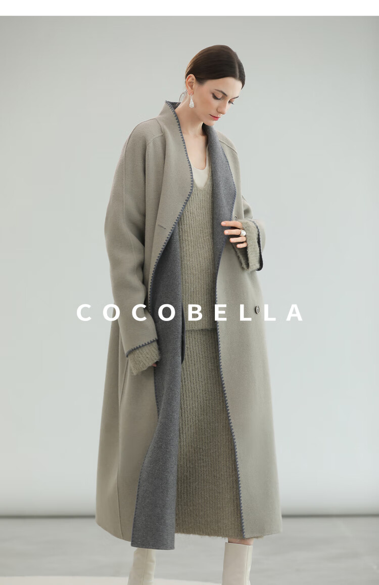 COCOBELLA[双面穿]高智感长款羊毛大衣贝壳绣毛呢外套WL7062