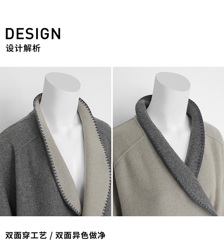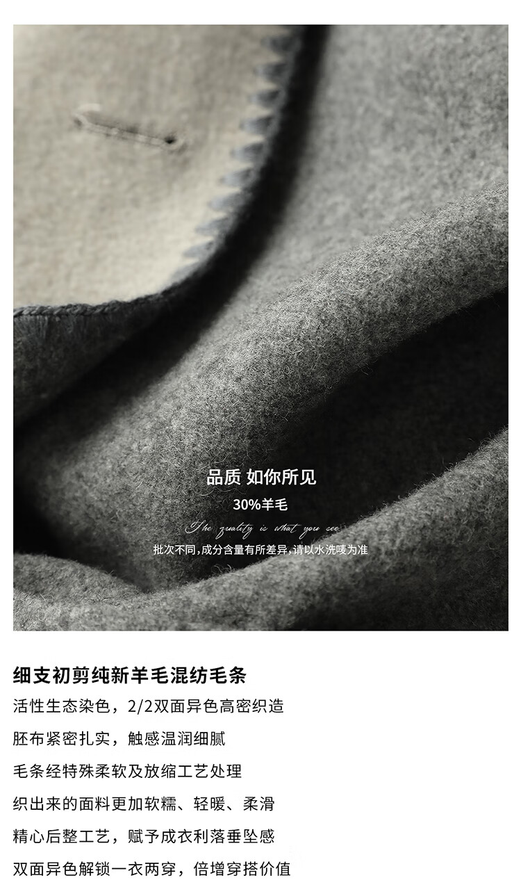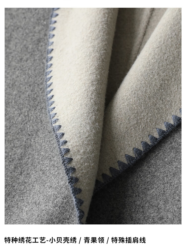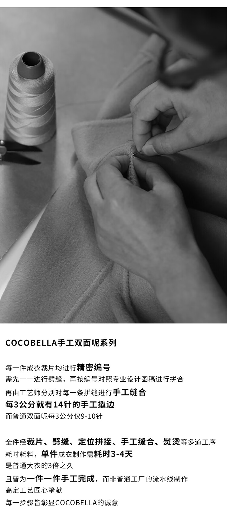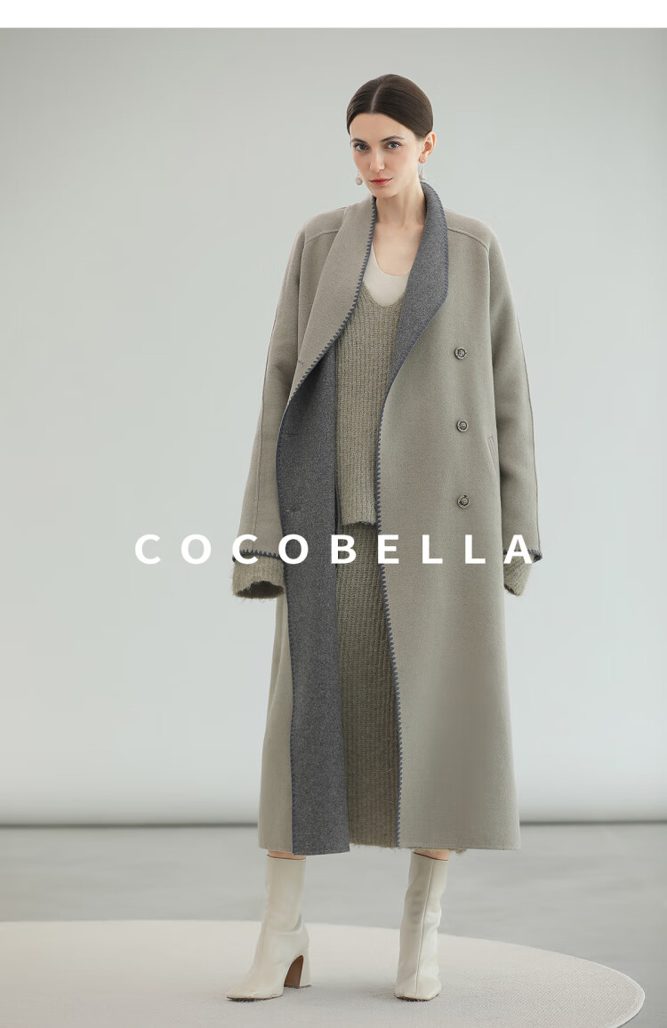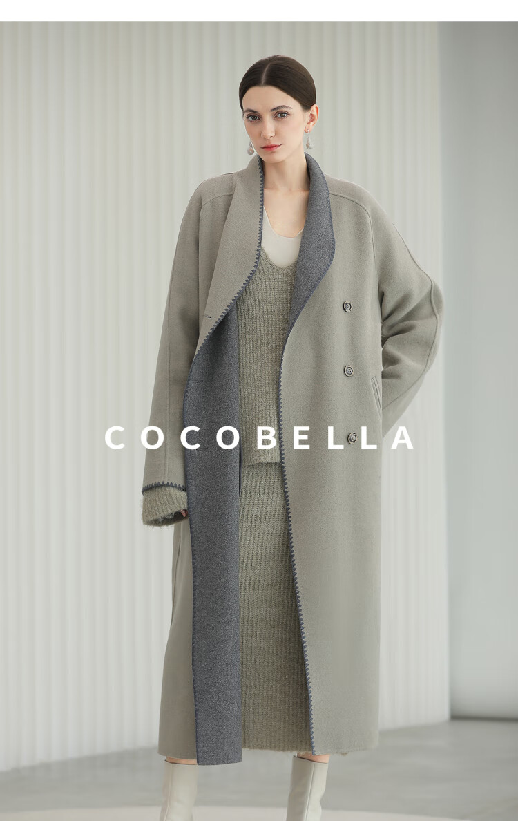 COCOBELLA[双面穿]高智感长款羊毛大衣贝壳绣毛呢外套WL7062