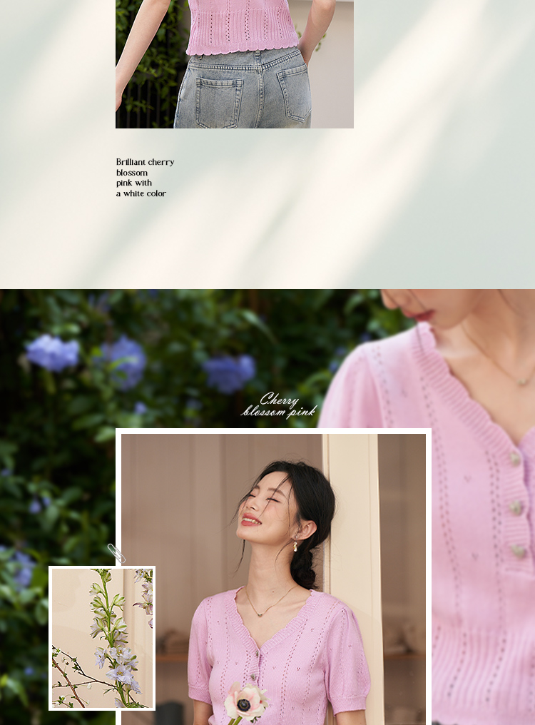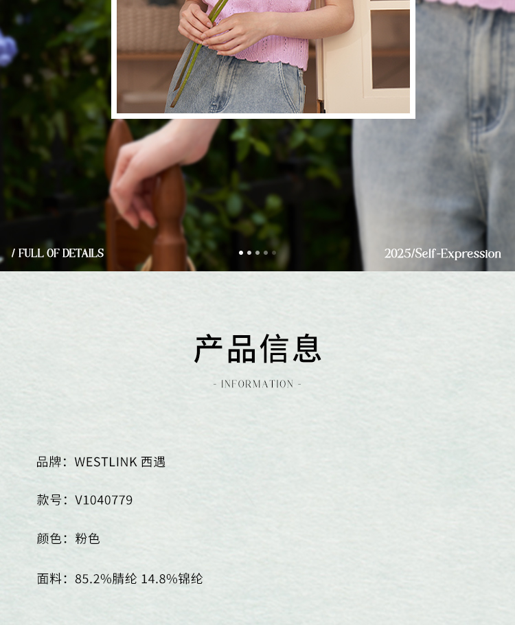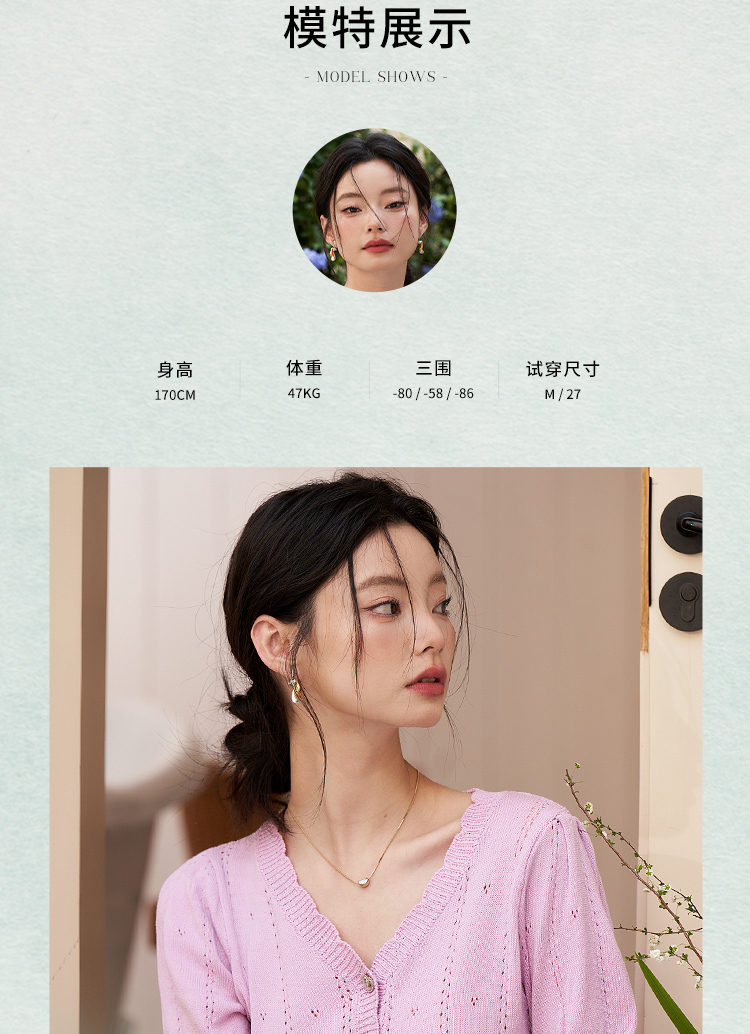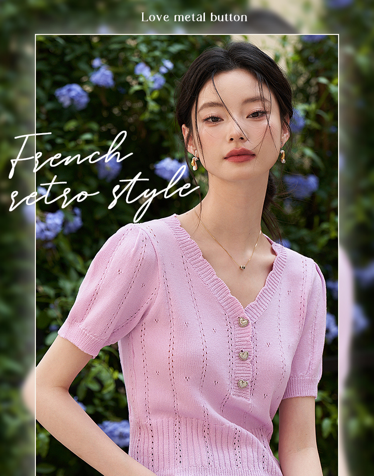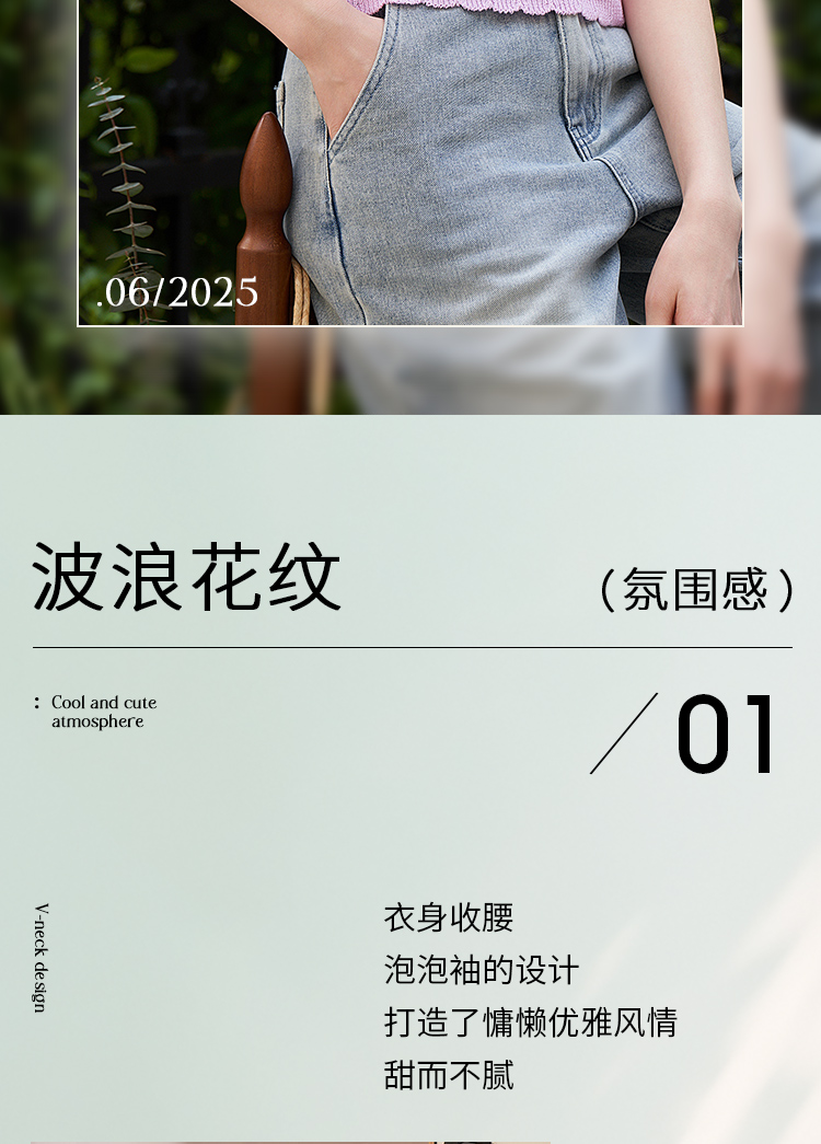 通勤风气质甜美花边短款针织衫女春夏季短款收腰V领毛衣V1040779/V0051036