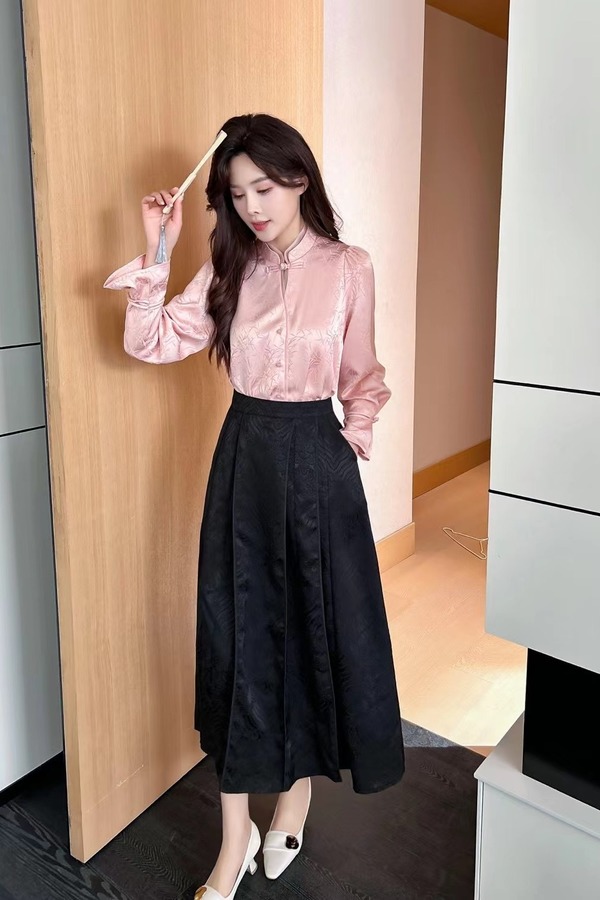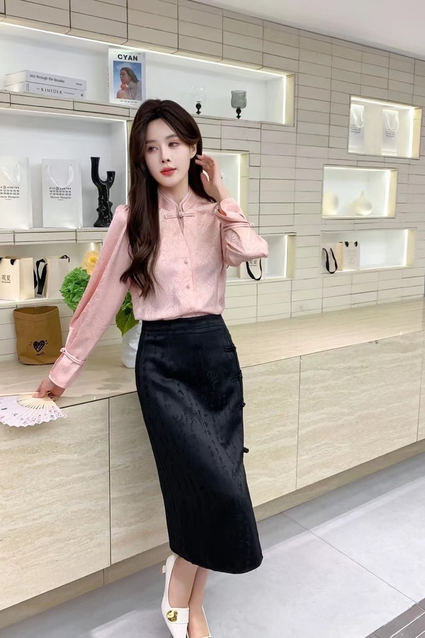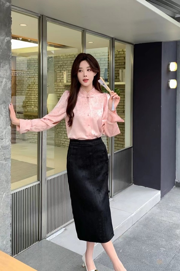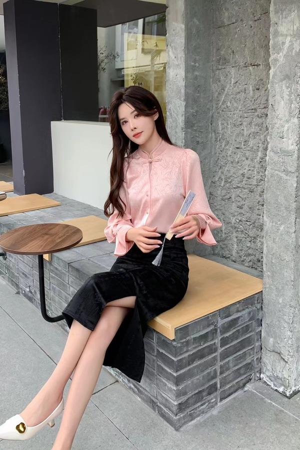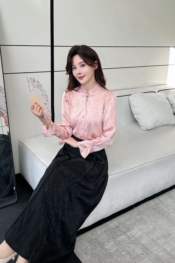 Le Malene 粉色新中式国风提花盘扣上衣 20157