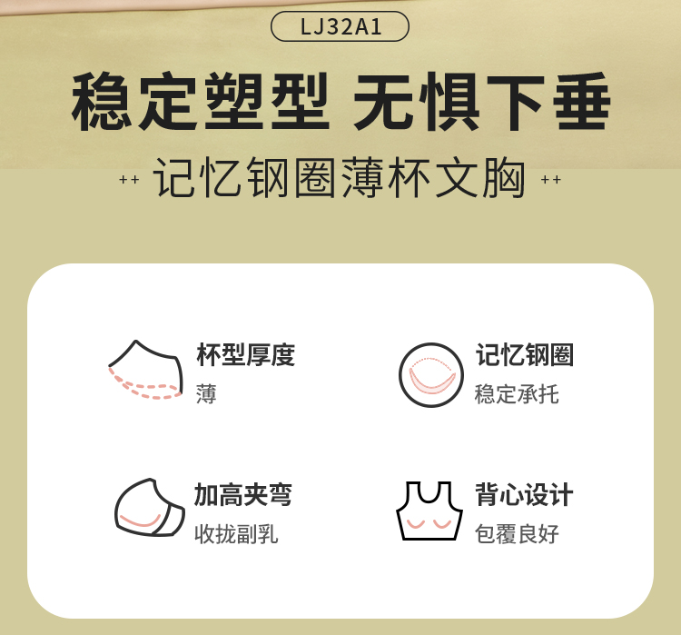 都市丽人舒软挺塑调整型内衣C薄3/4杯蕾丝塑身文胸四排无钢圈LJ32A1