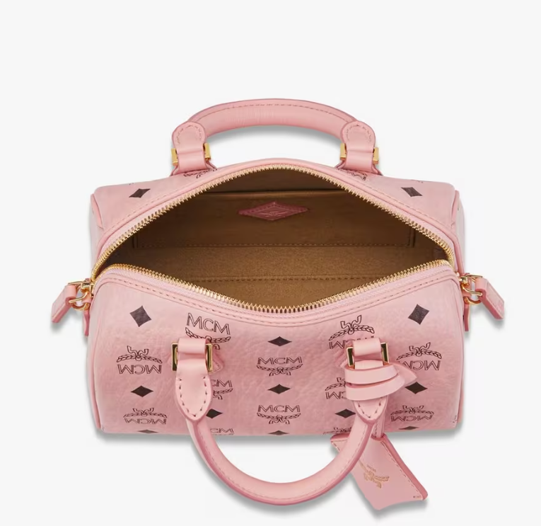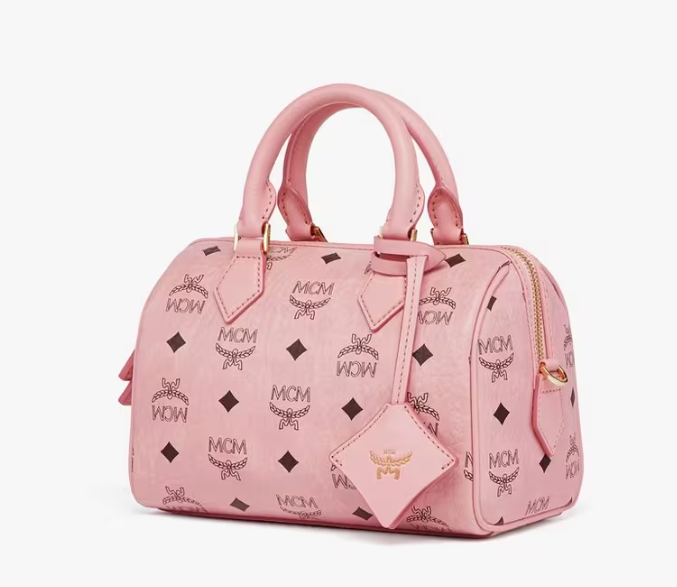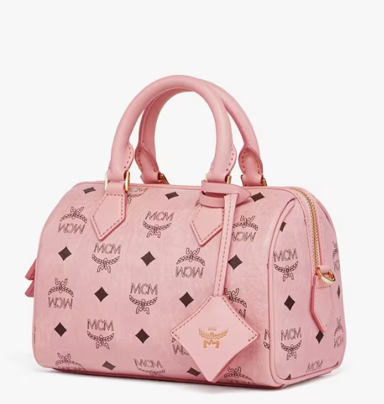 这款Visetos经典花纹人造革波士顿包采用天然皮革饰边及压花Logo皮革挂饰设计。