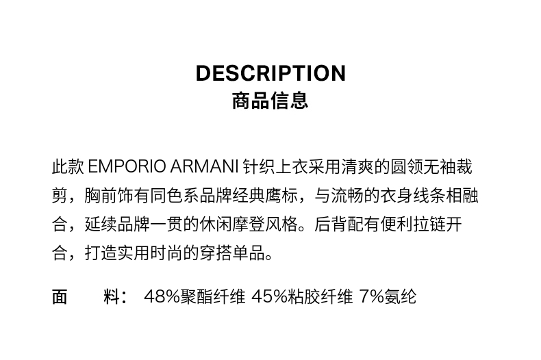 E ARMANI 无袖背心针织上衣女 3D2K6A2JZYZ-0802 浅紫灰色.