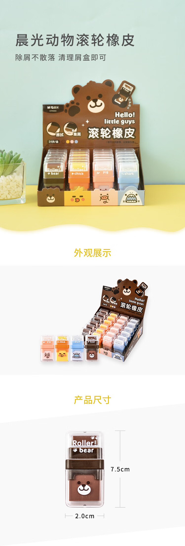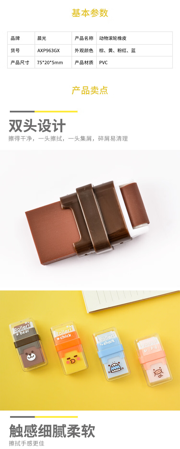 晨光橡皮擦AXP963GX动物滚轮