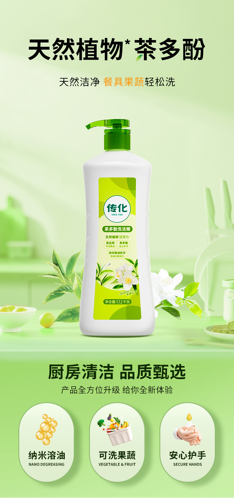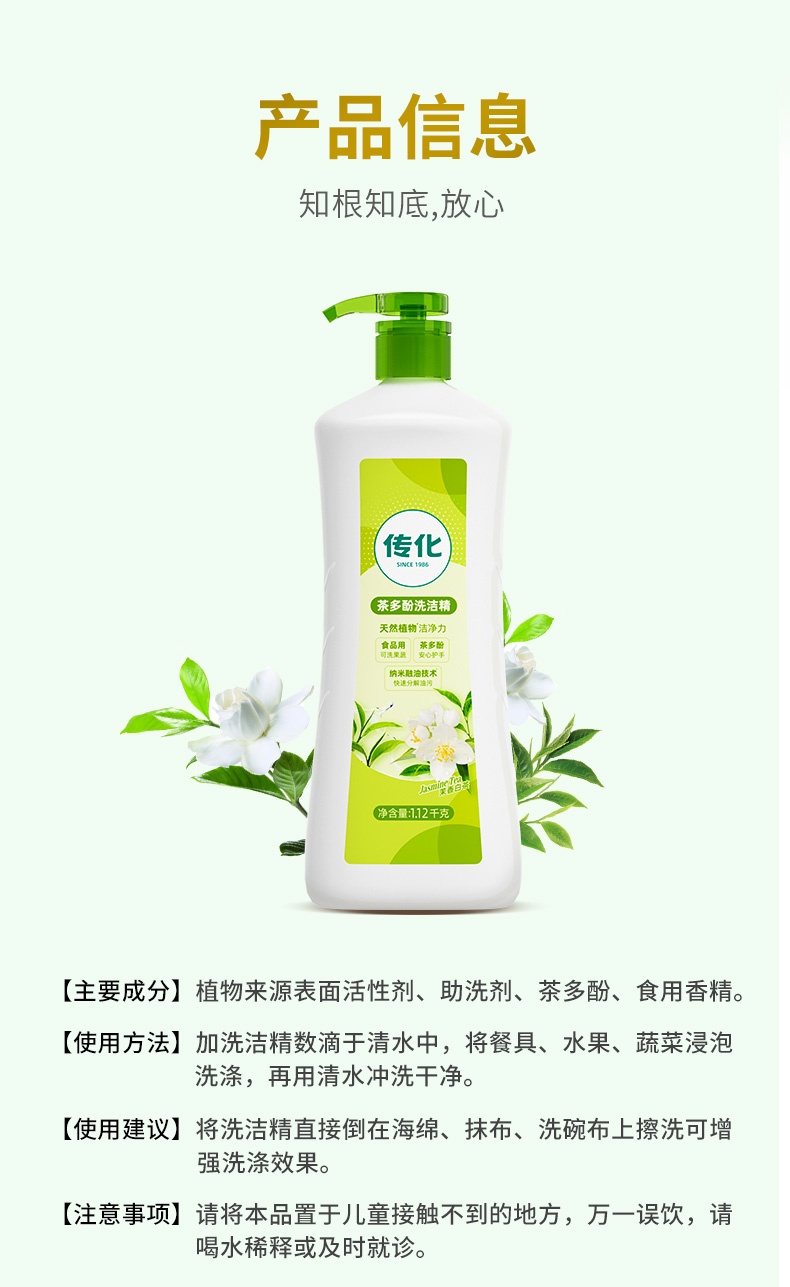 传化茶多酚洗洁精1.12kg*2瓶