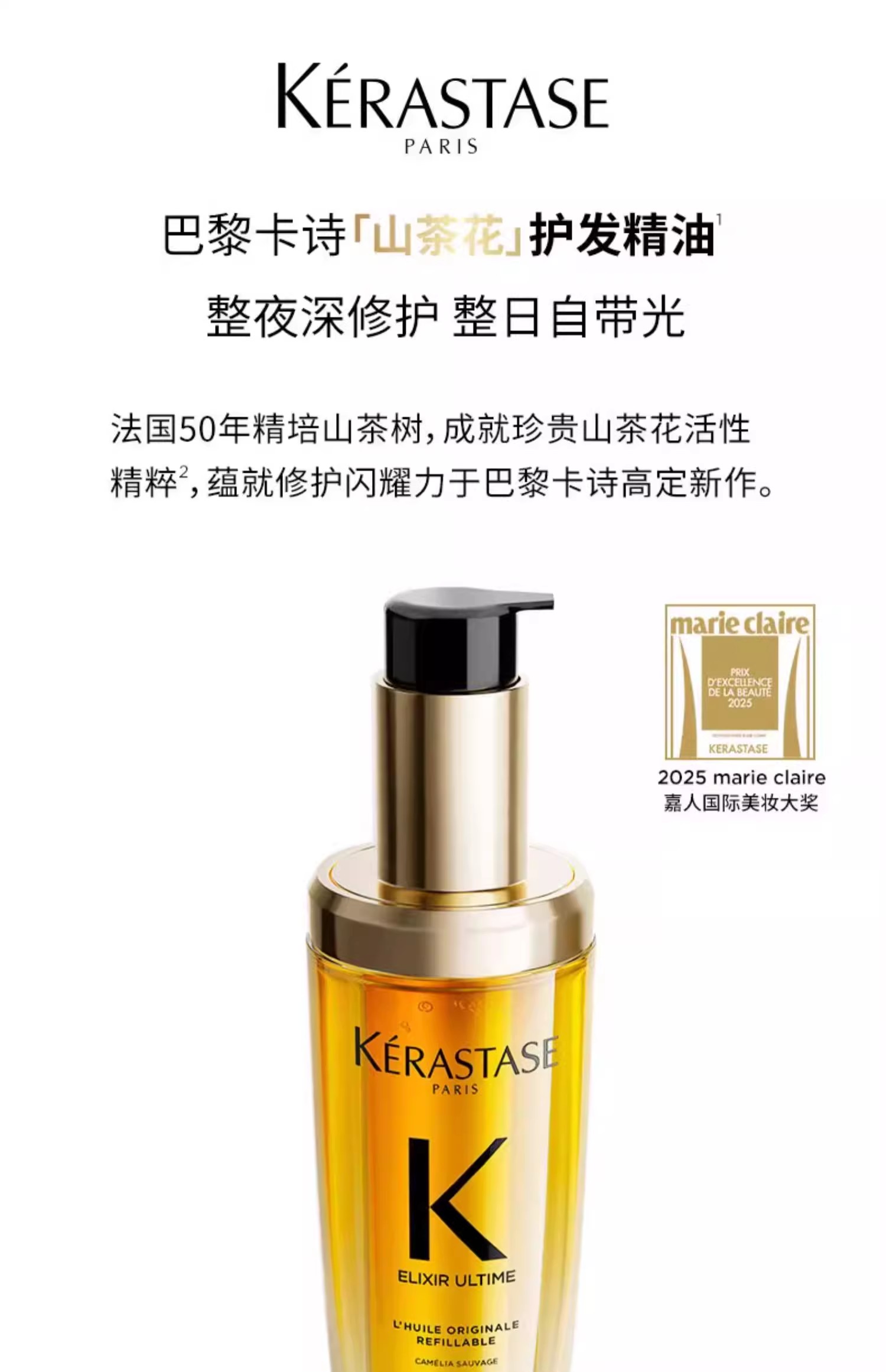 卡诗护发精油黑钻鱼子酱金瓶极光山茶花菁纯修护干枯滋养秀发柔顺