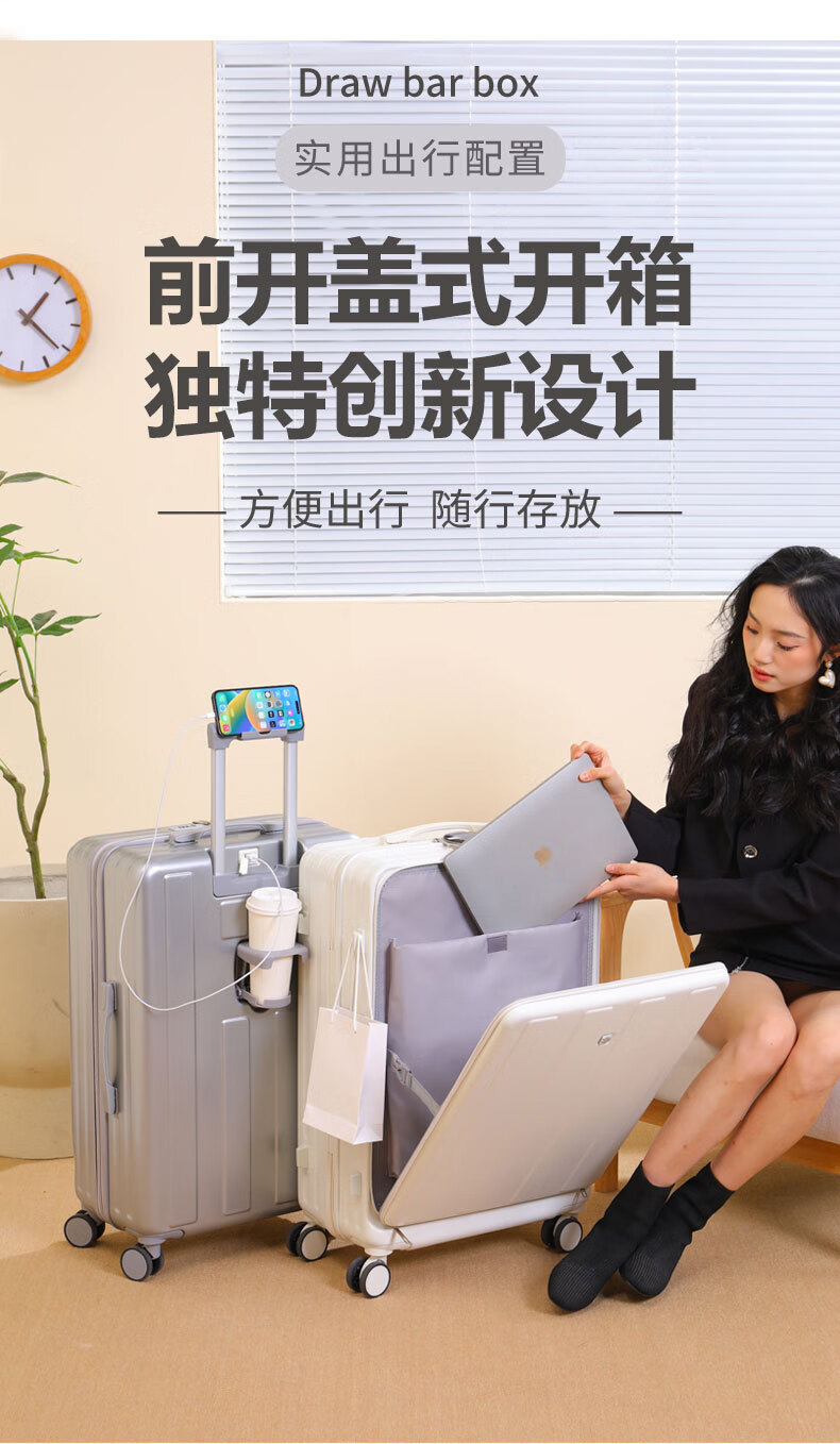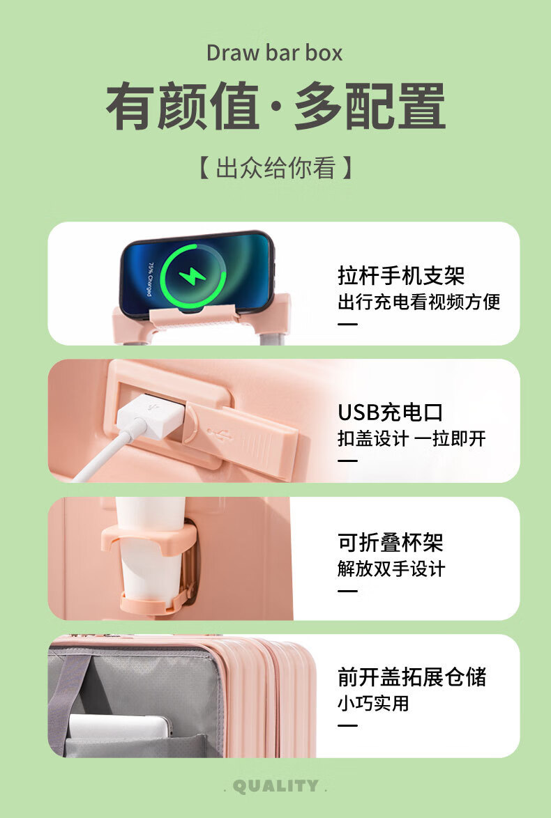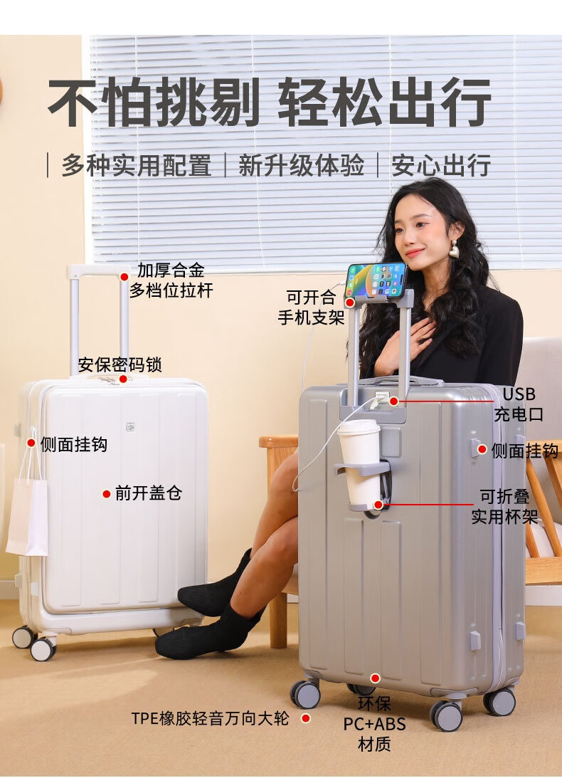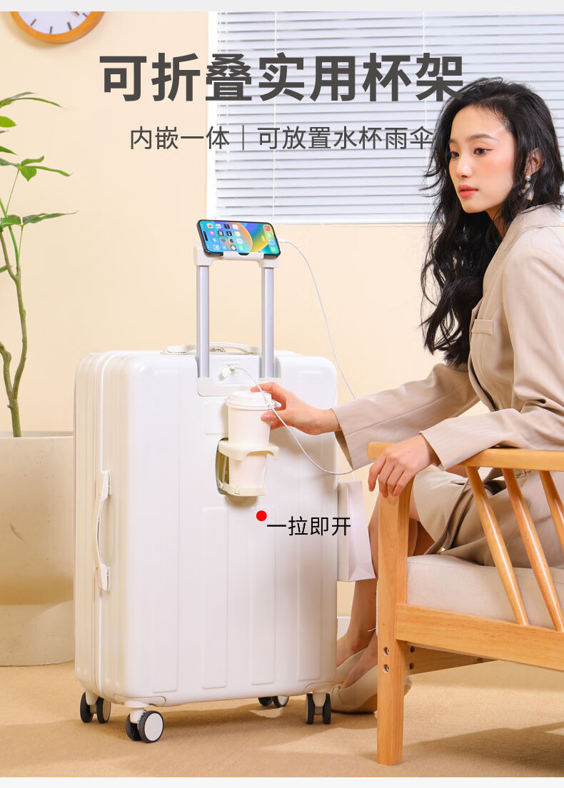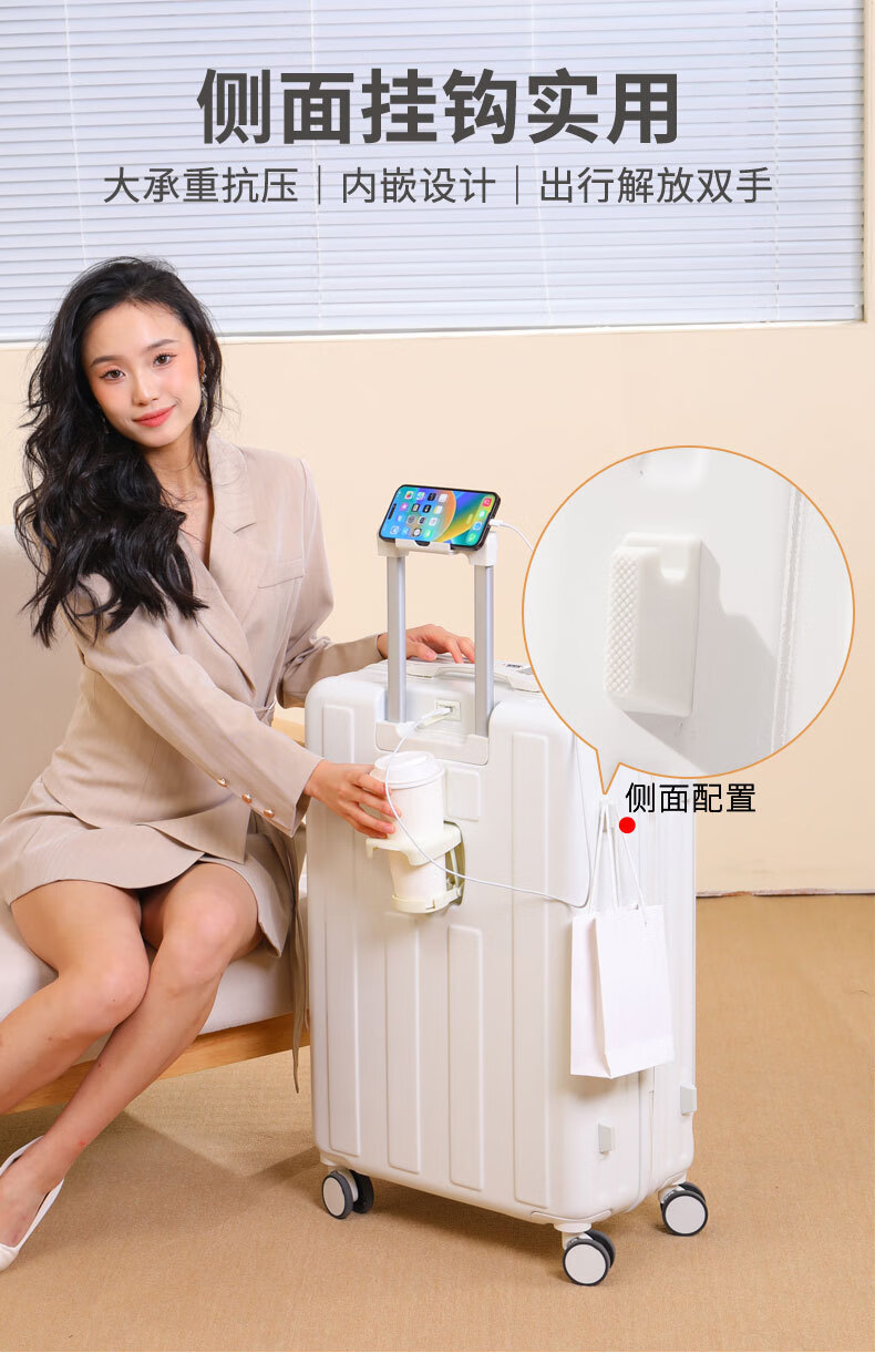 维多利亚旅行者USB充电行李箱水杯架旅行箱登机箱拉杆箱QK993(SGJW)