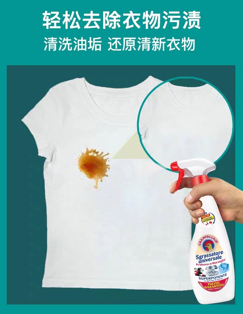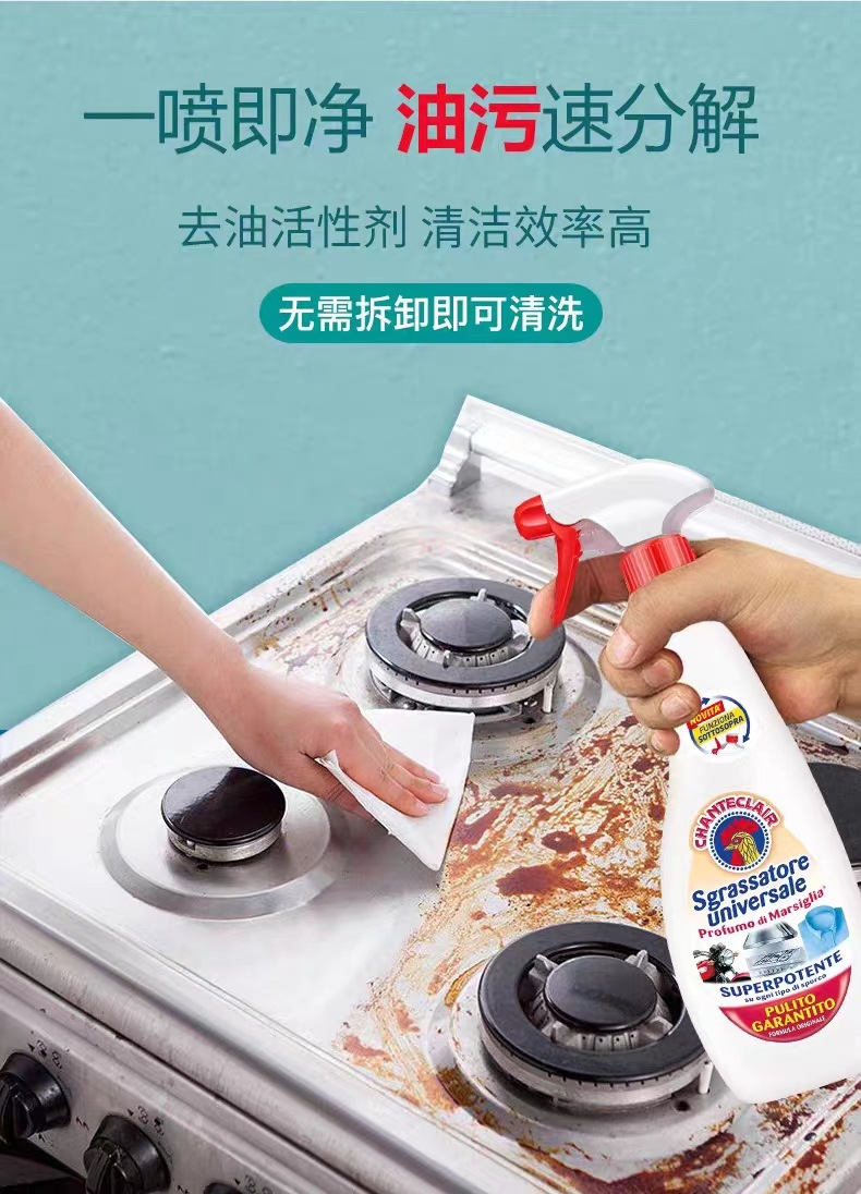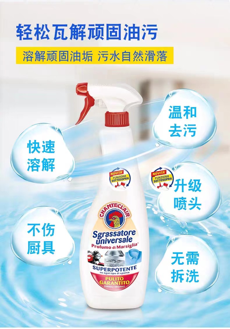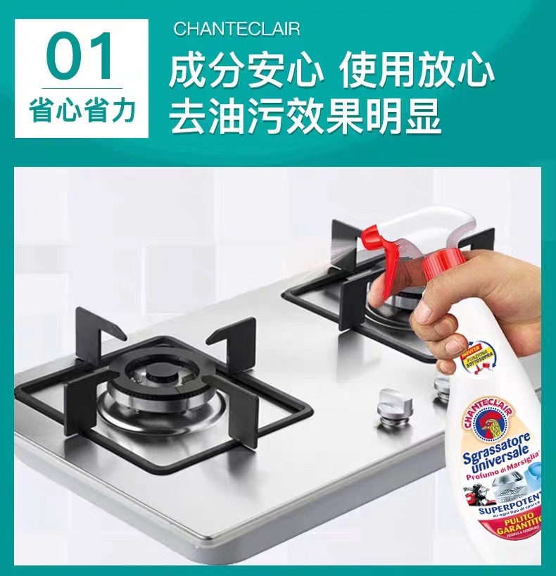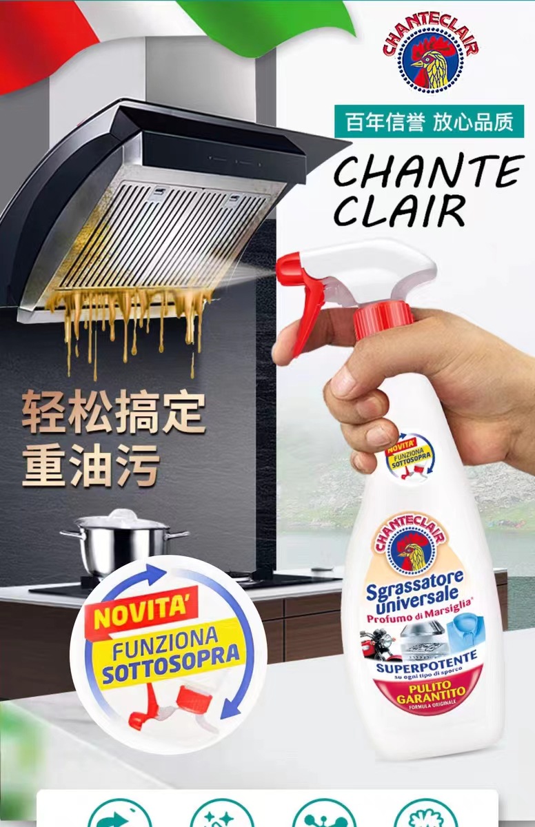 意大利进口chanteclair 大公鸡多功能油烟机厨房除去油污渍重油污净清洁剂600ml*3瓶