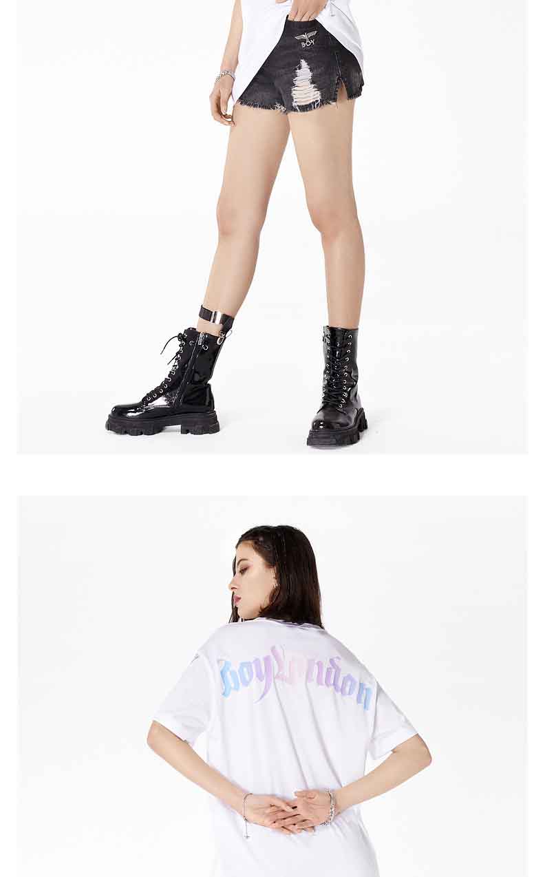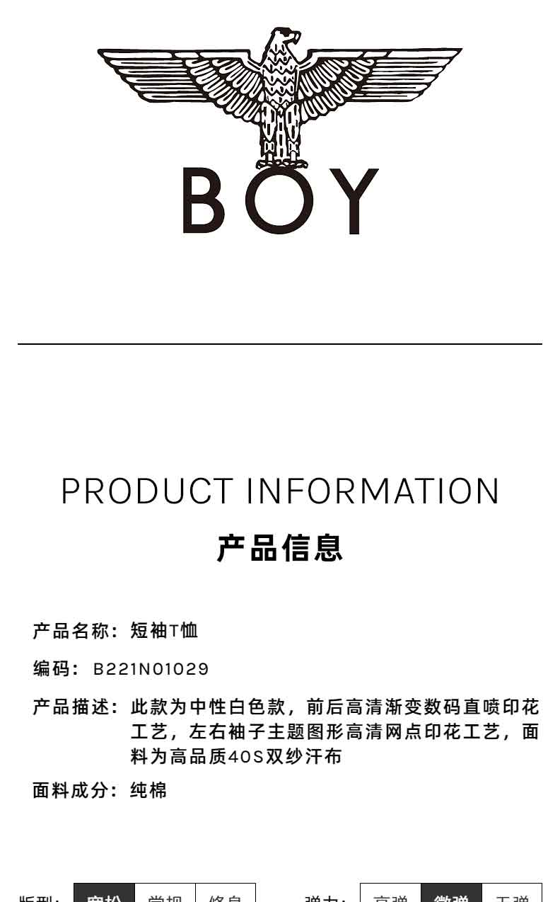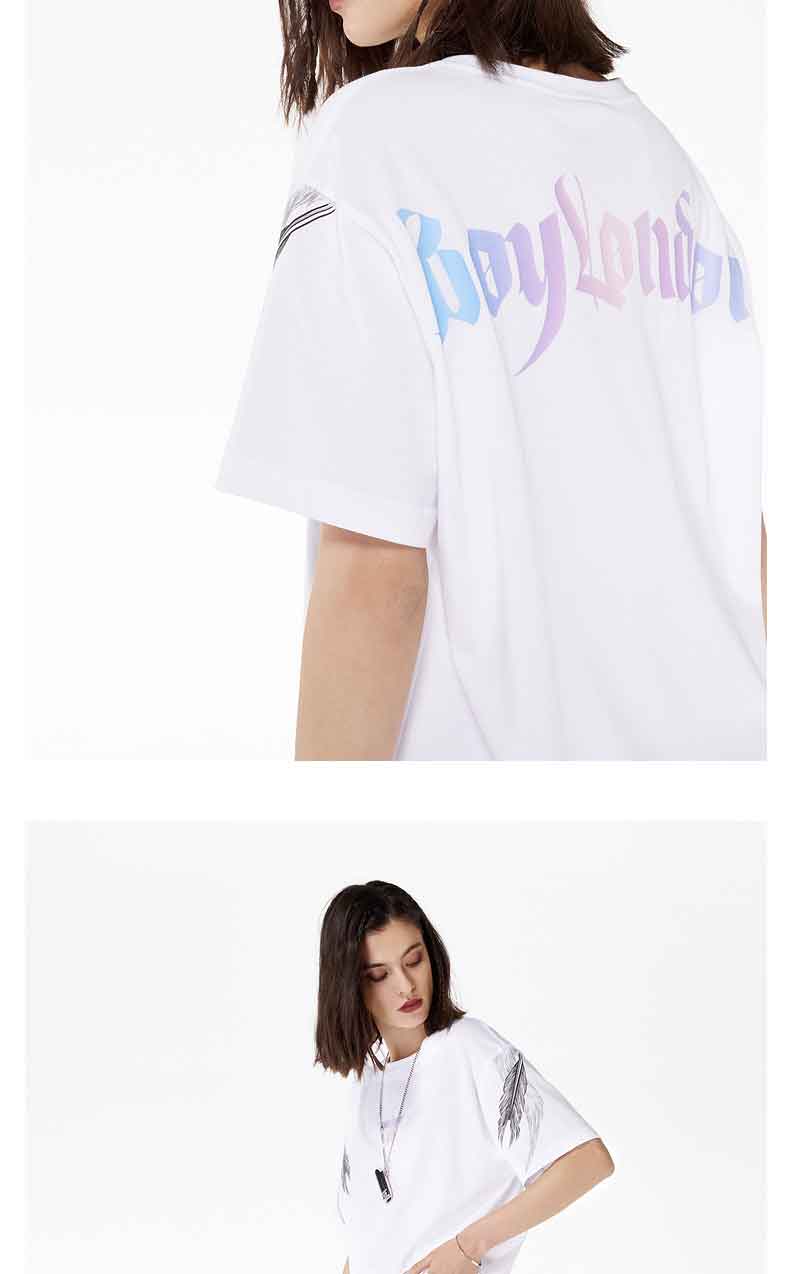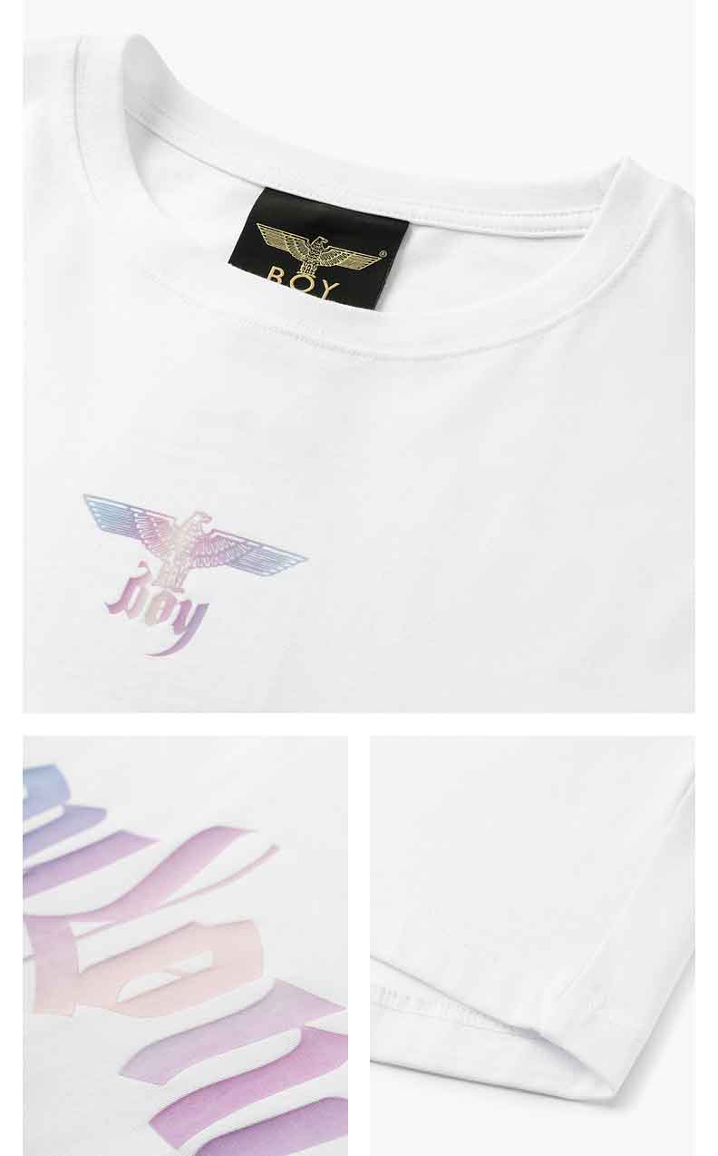 BOYLONDON短袖男女同款22春夏新品渐变字母印花简约白色T恤B221N01029