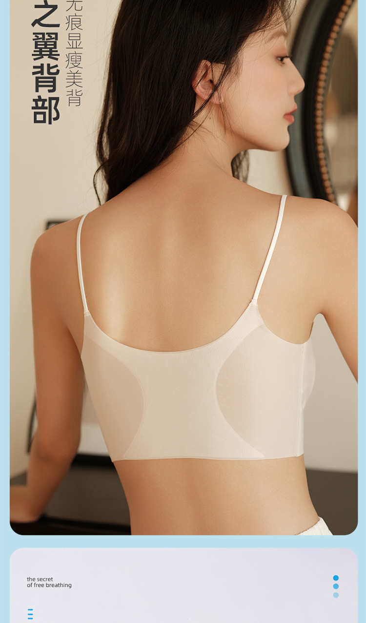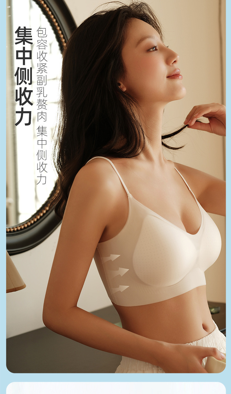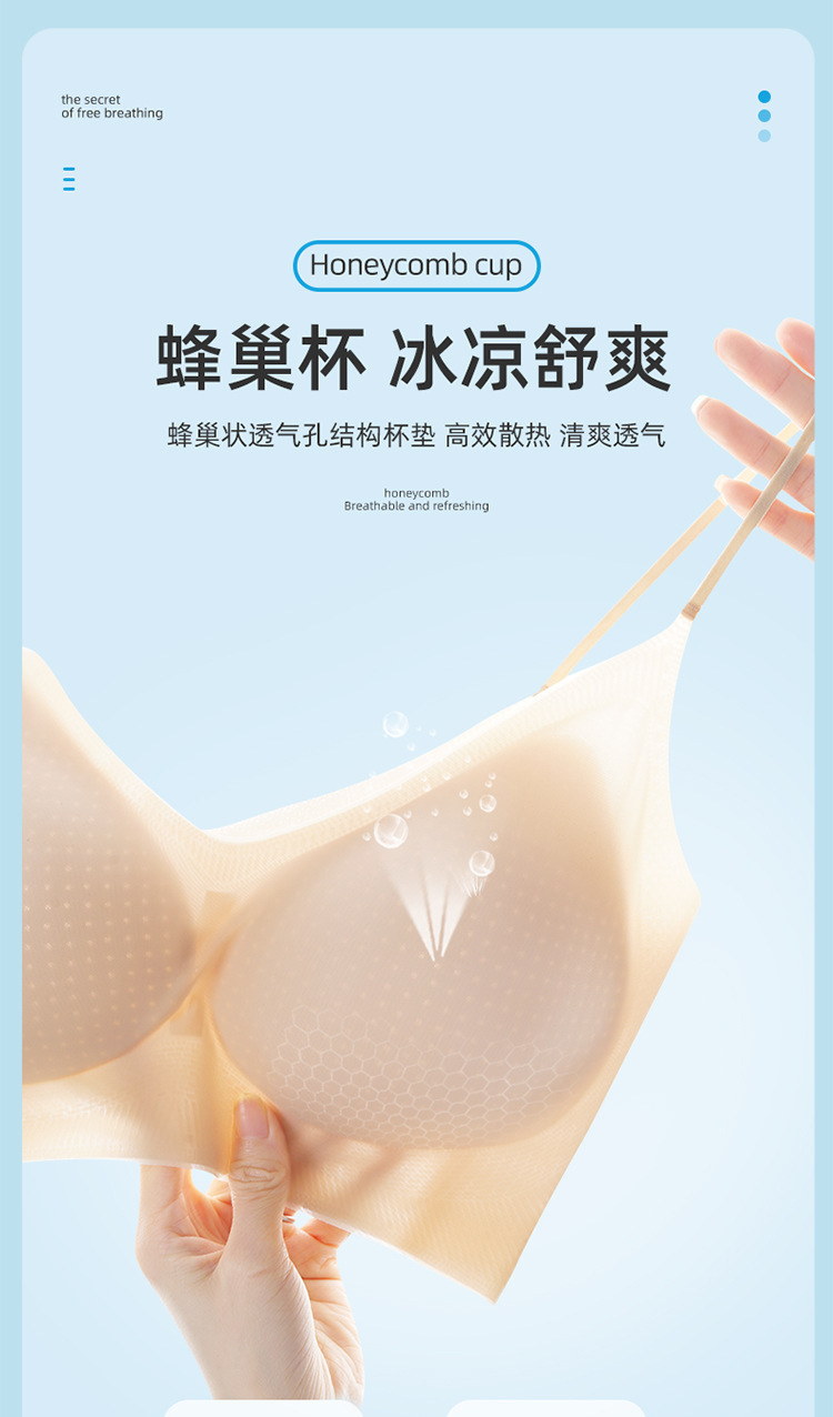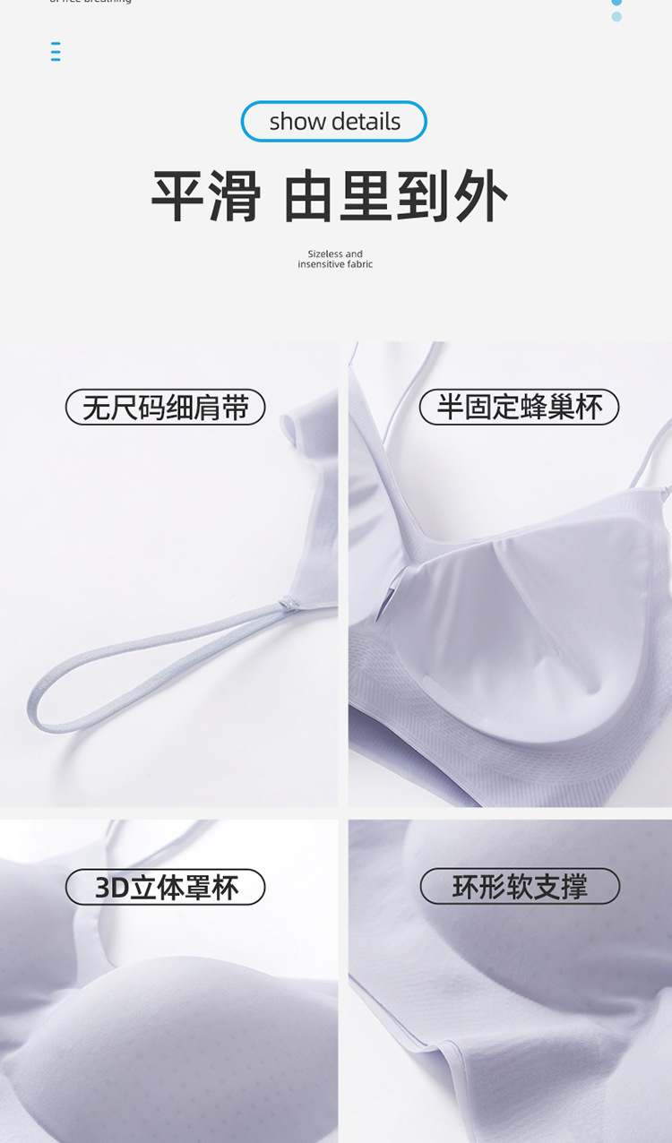 夏季新款超薄无痕无感内衣细肩带大胸显小透气孔蜂巢杯吊带内衣文胸