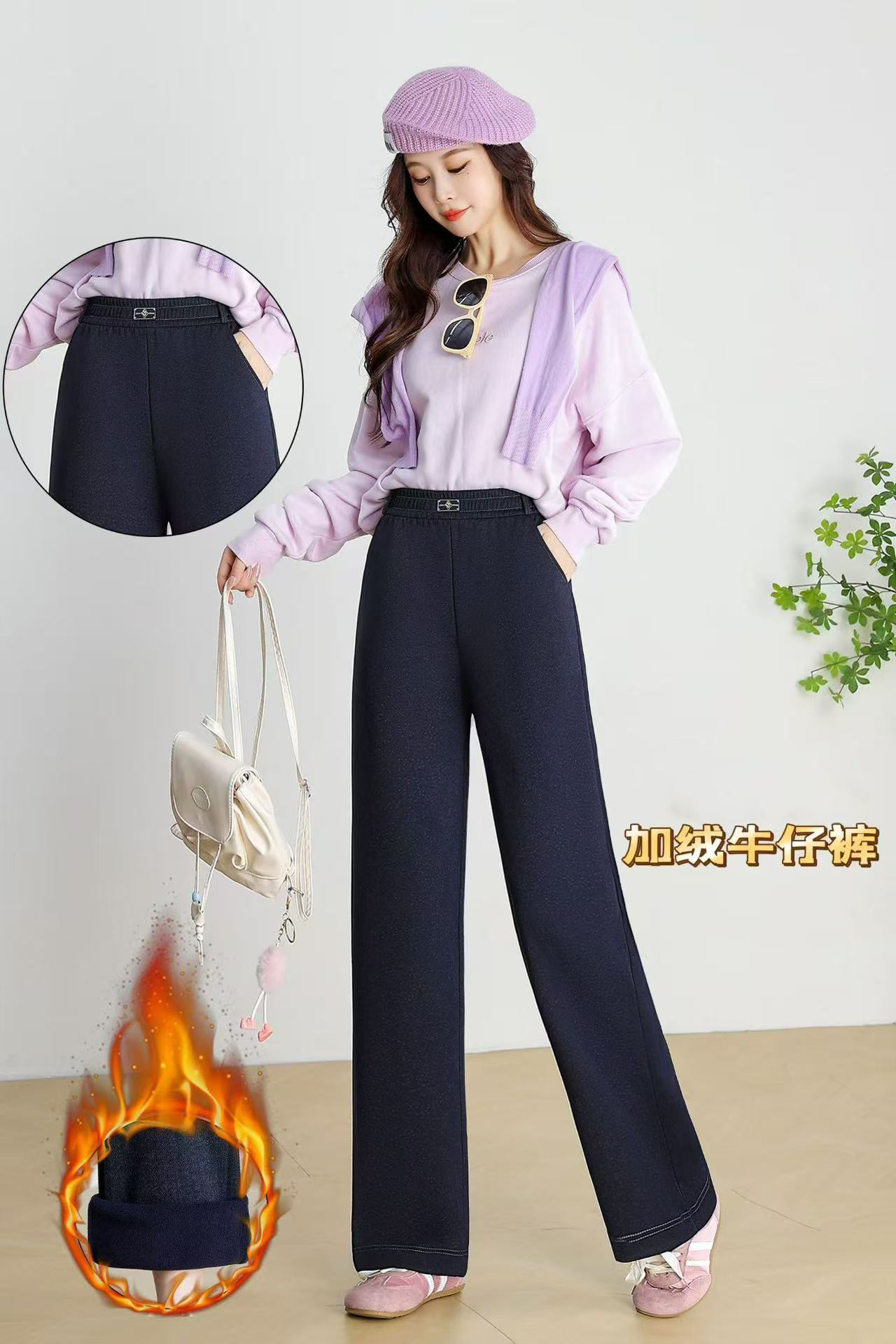 女士加绒牛仔冬季阔腿裤【FD25331】