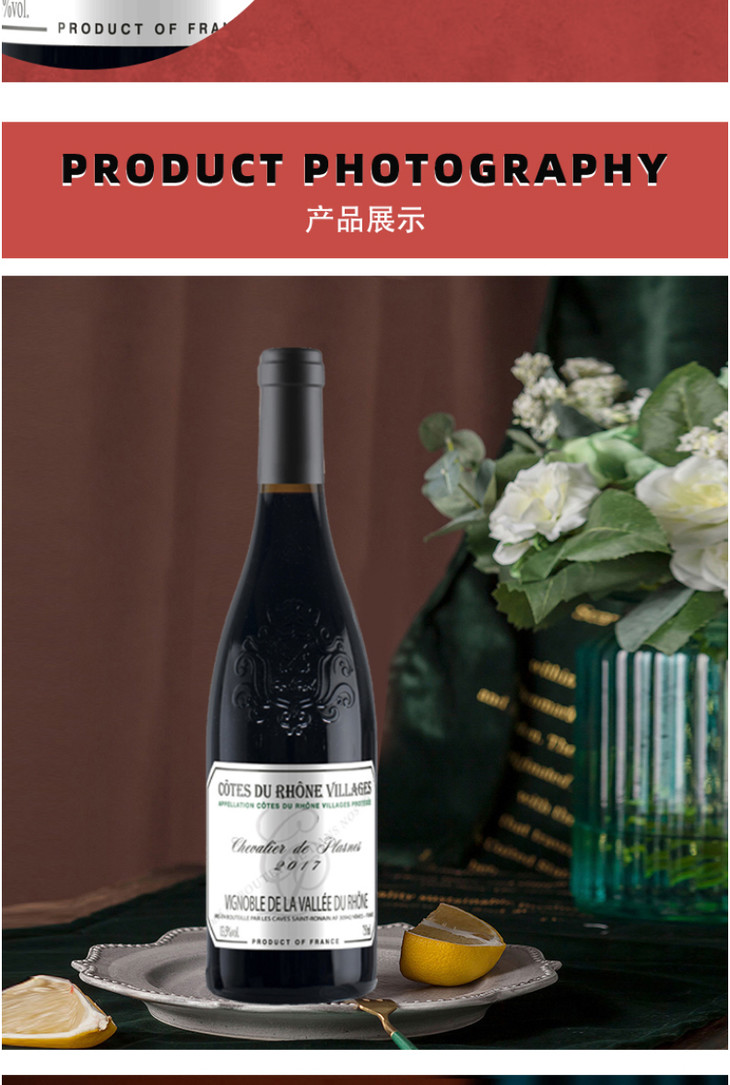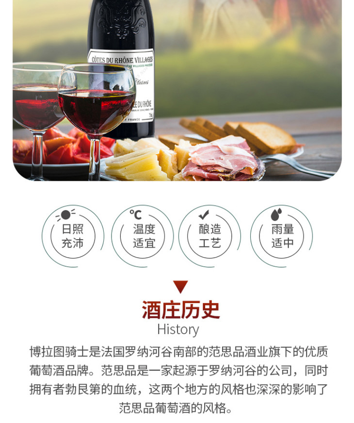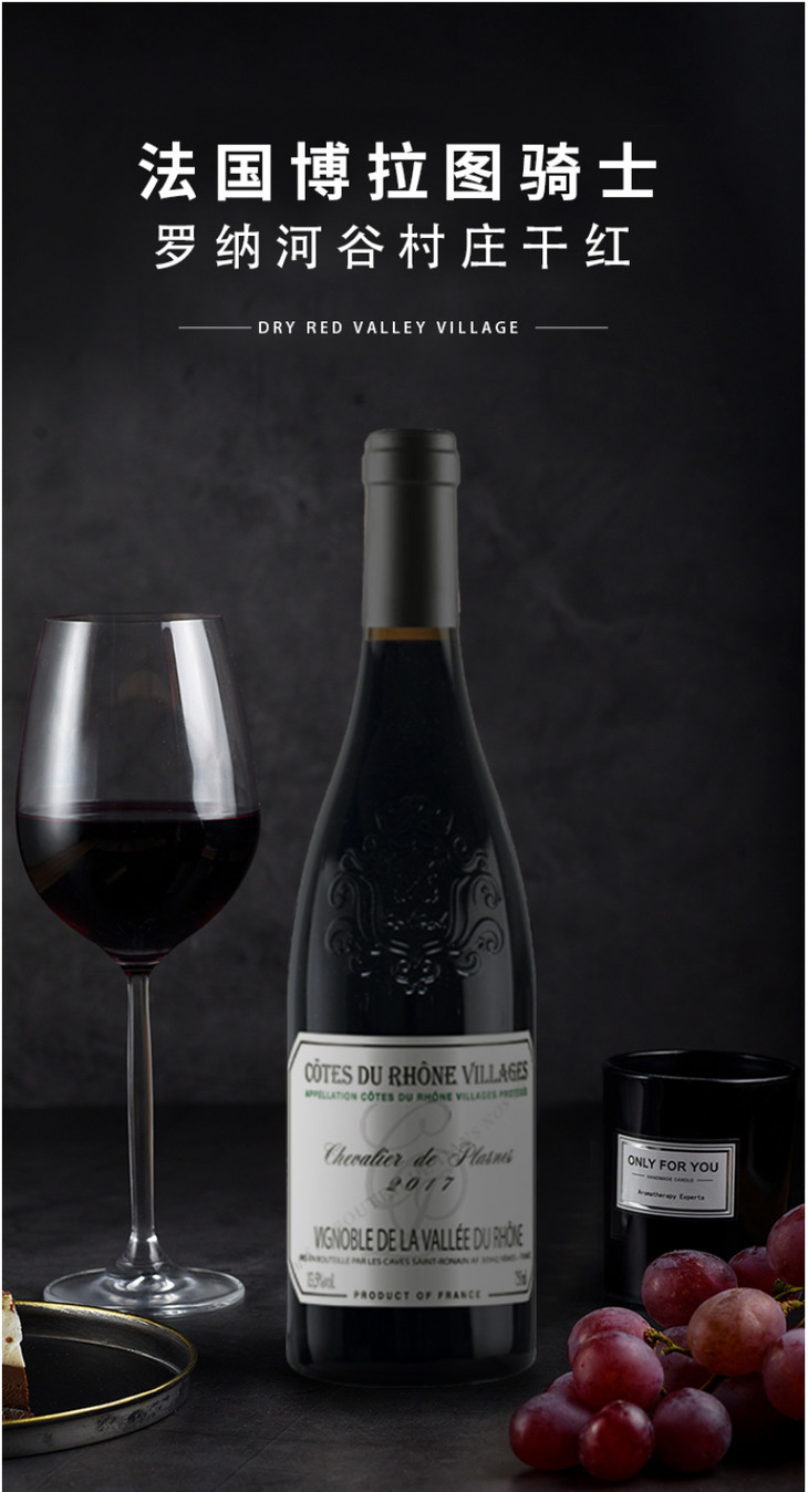 法国博拉图骑士罗纳河谷村庄干红葡萄酒750ml