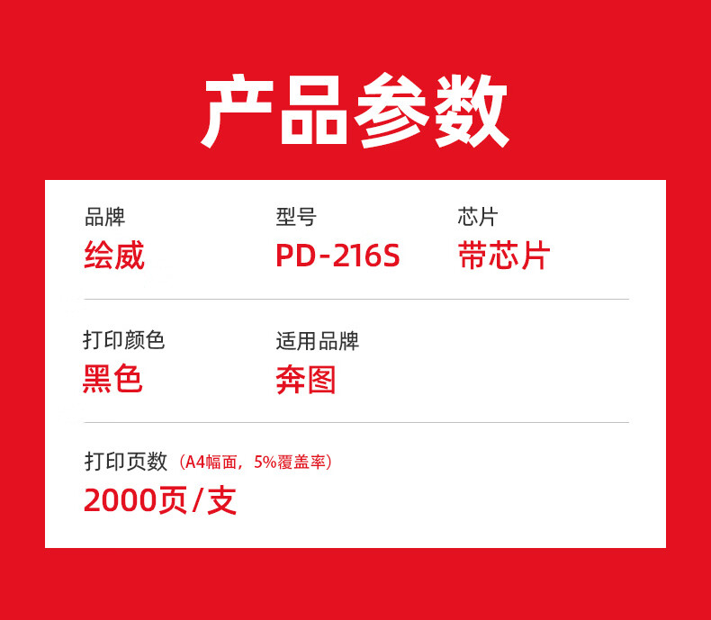 绘威PD-216S硒鼓 奔图m6212w硒鼓适用奔图 P2207W M6207W M6208W M6205NW P2215W Pantum学习版打印机pd216s粉盒