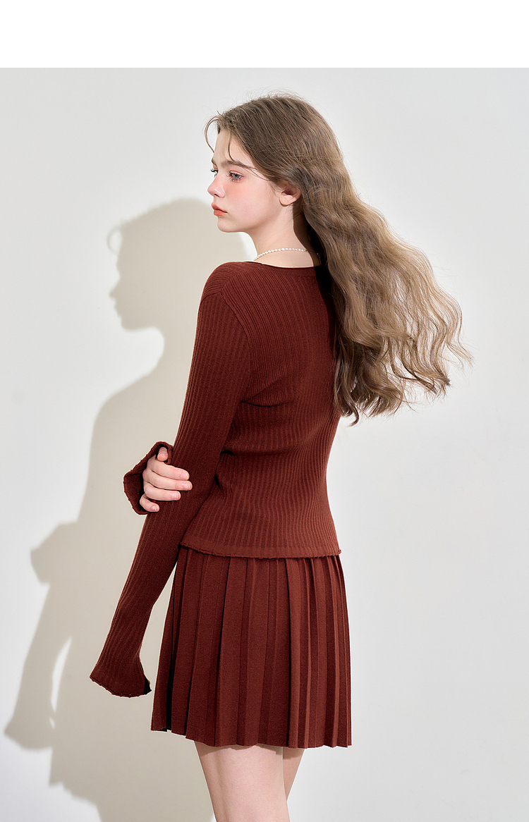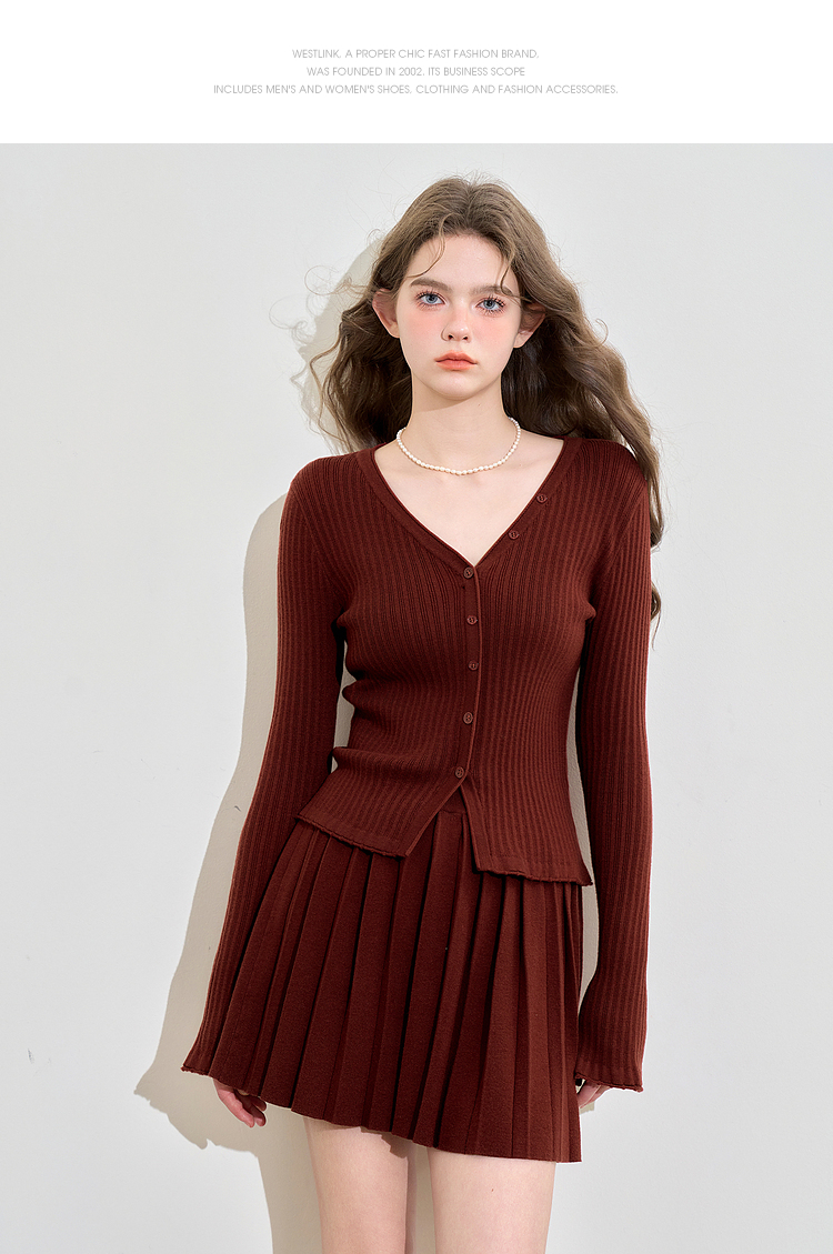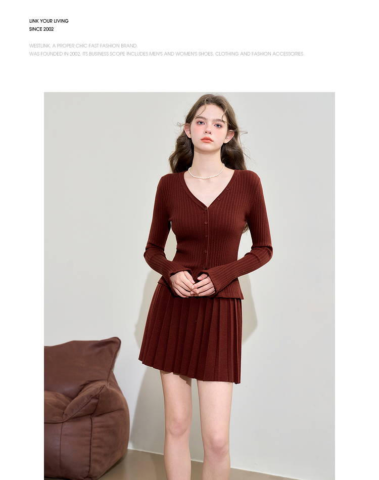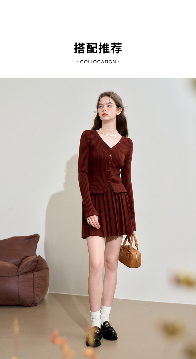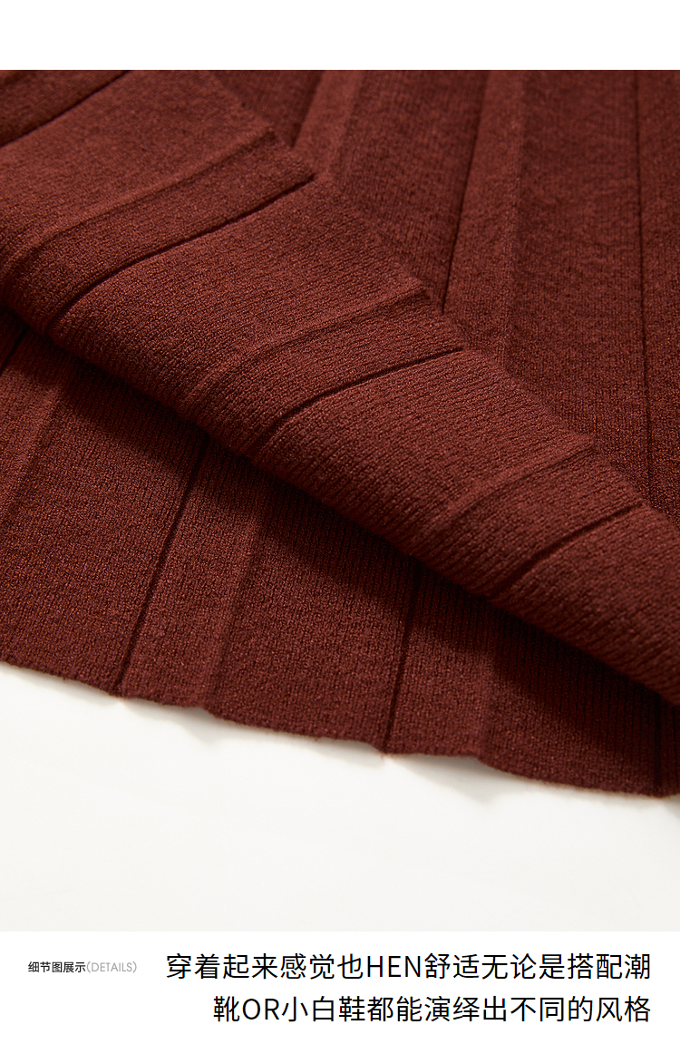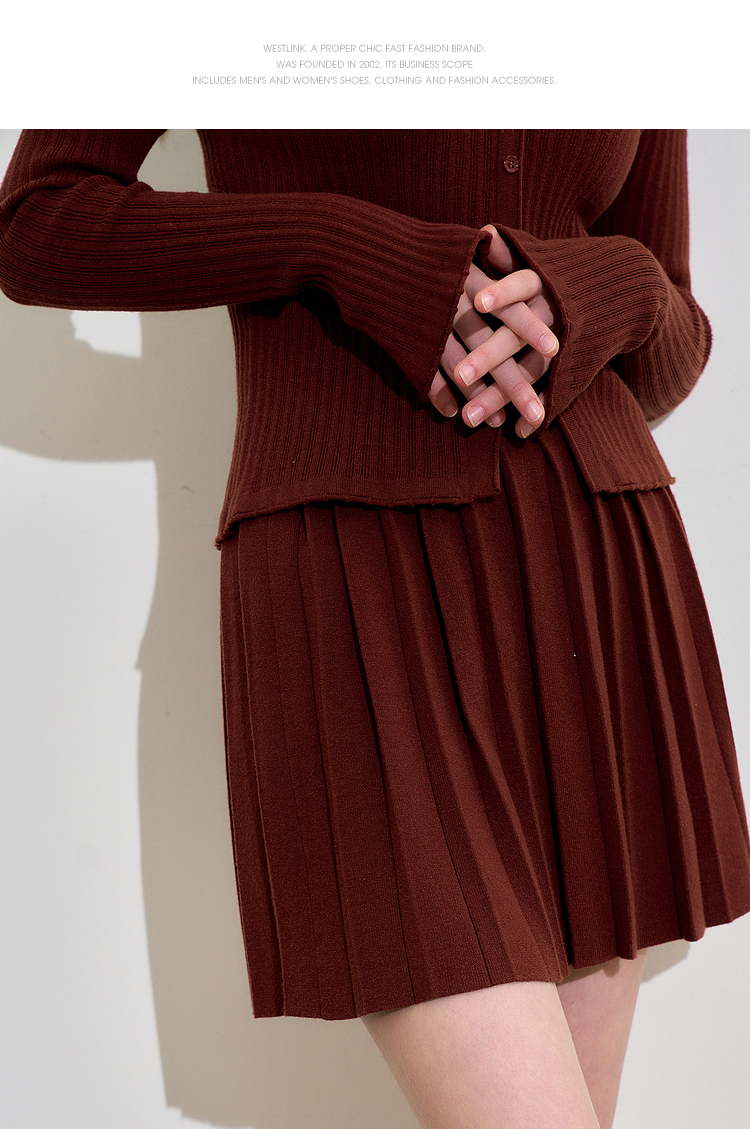西遇毛针织衫外套半身裙套装女新款百褶短裙两件套D3542428/D3542427