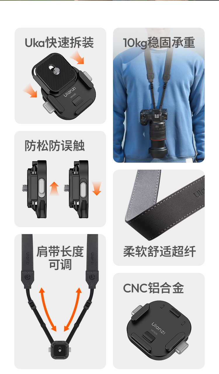 Ulanzi优篮子UKA06相机肩带快装套件兼容Uka/F38快装适用佳能索尼尼康微单单反减负背带快挂板摄影摄像防掉绳