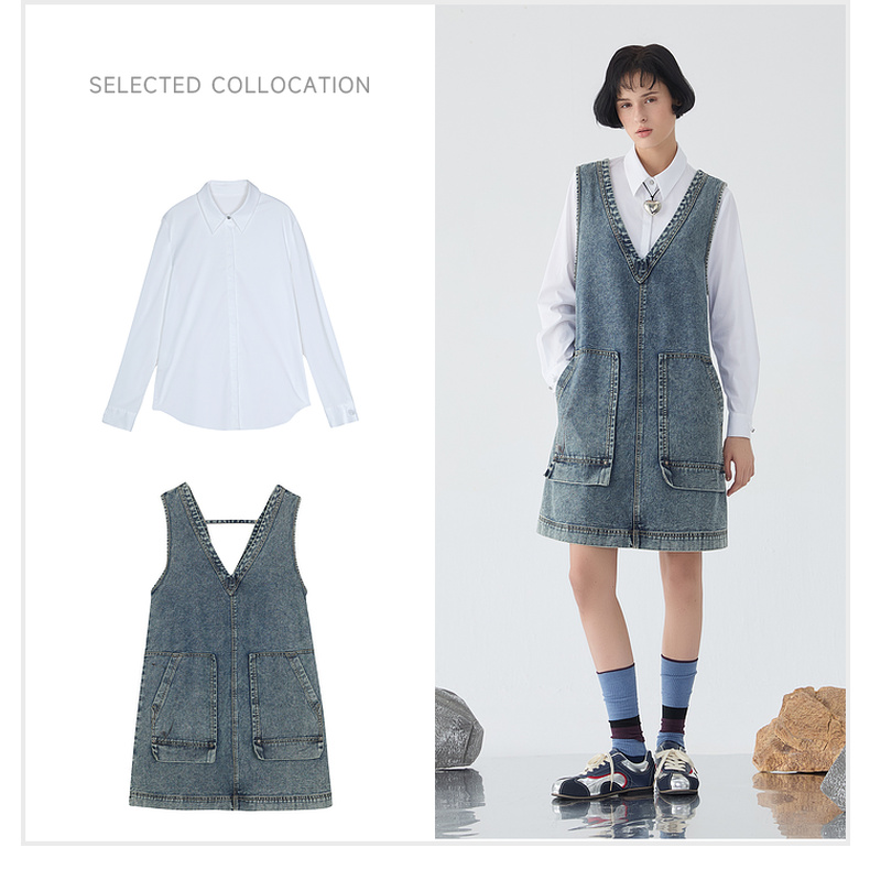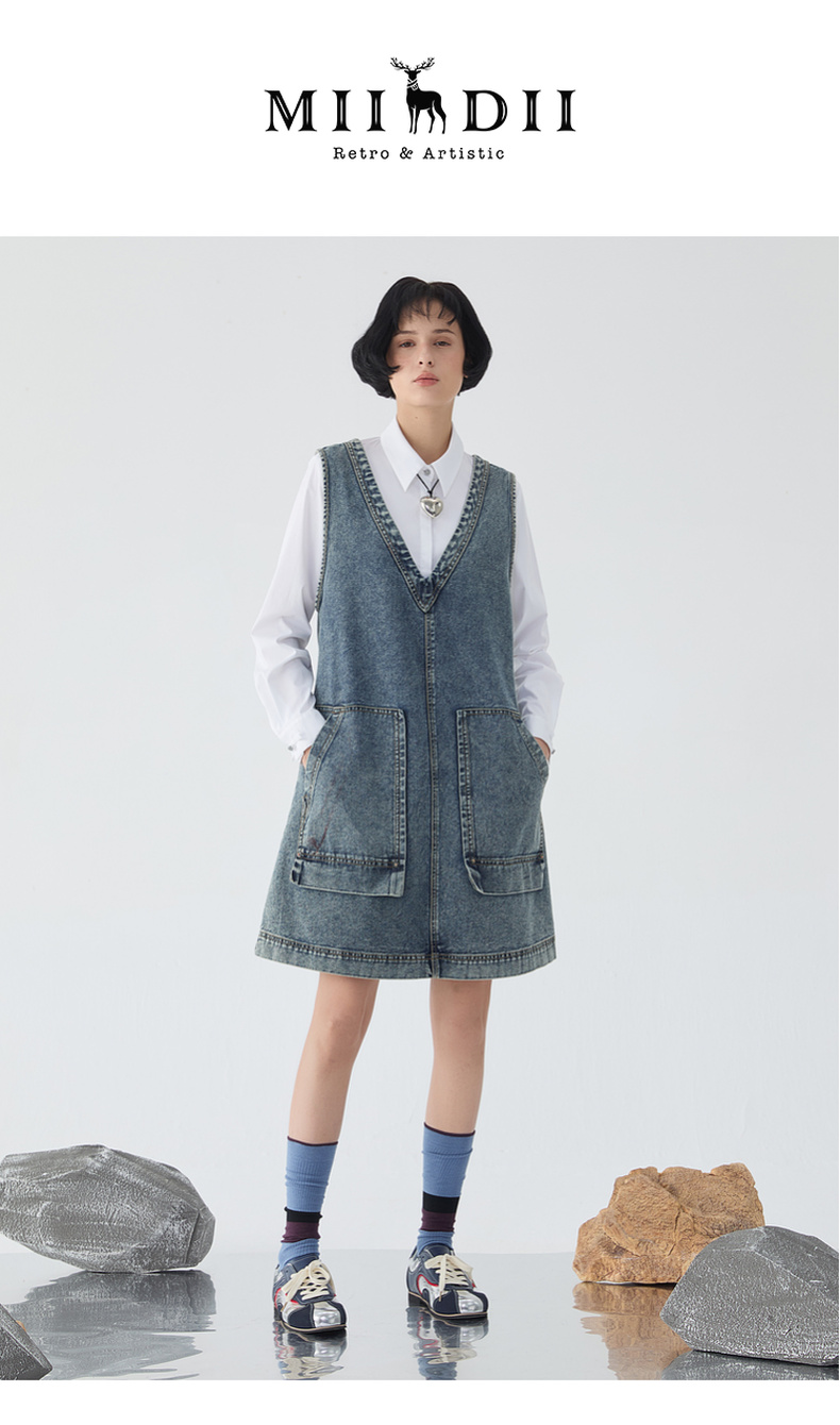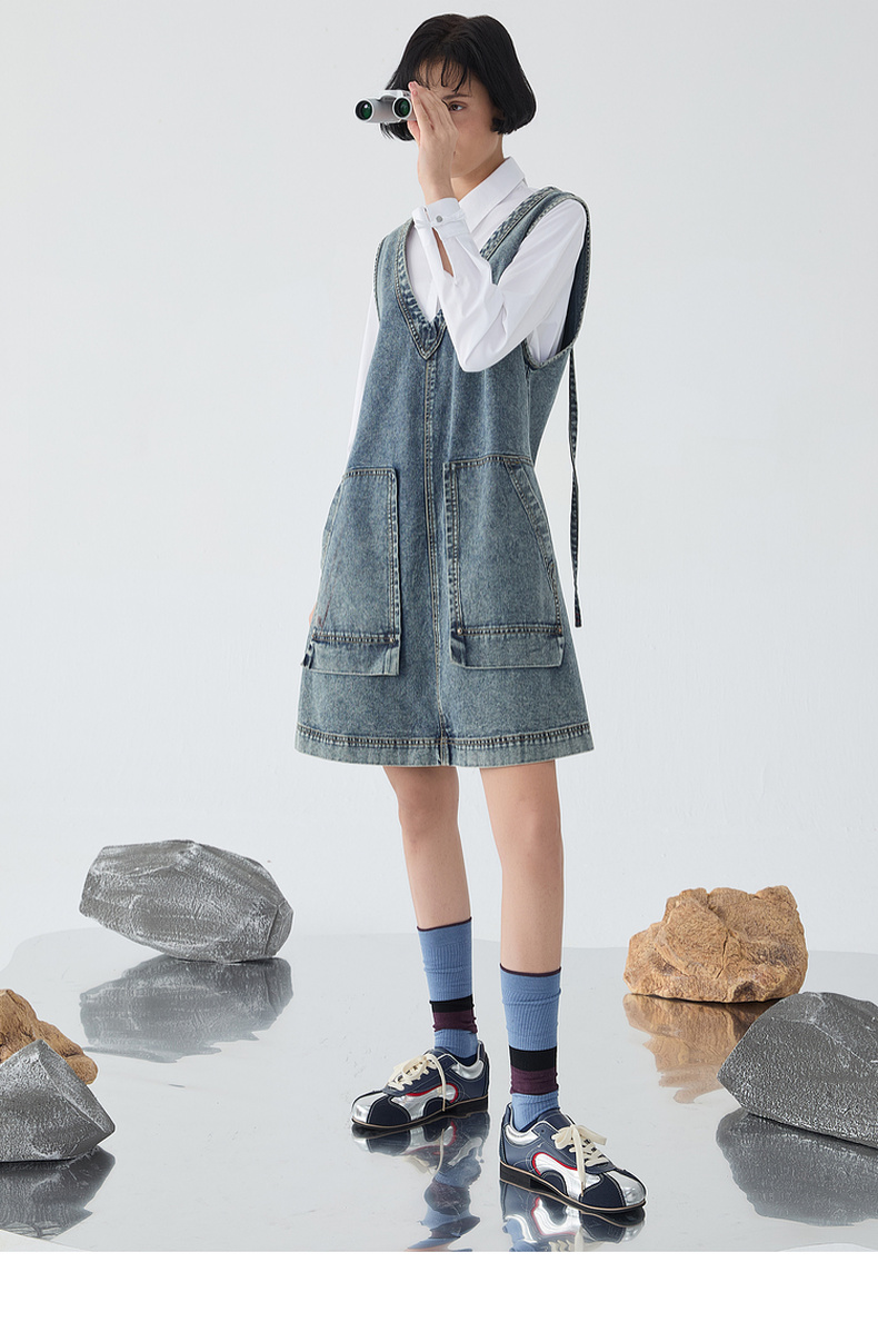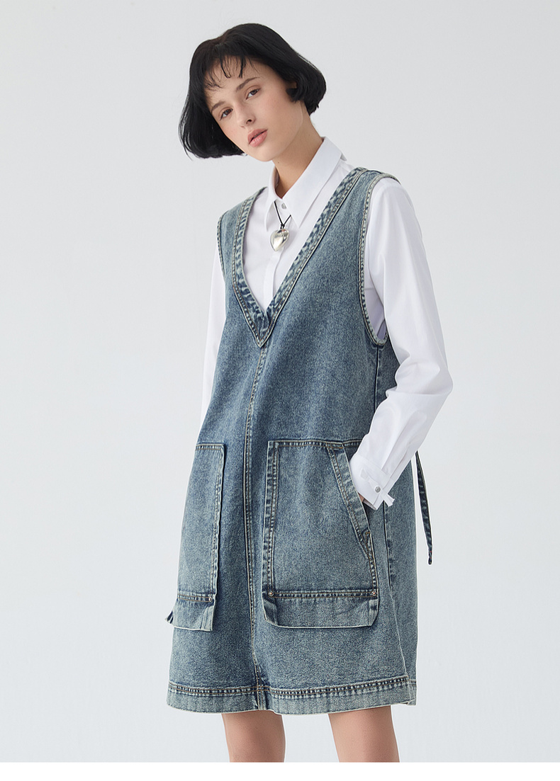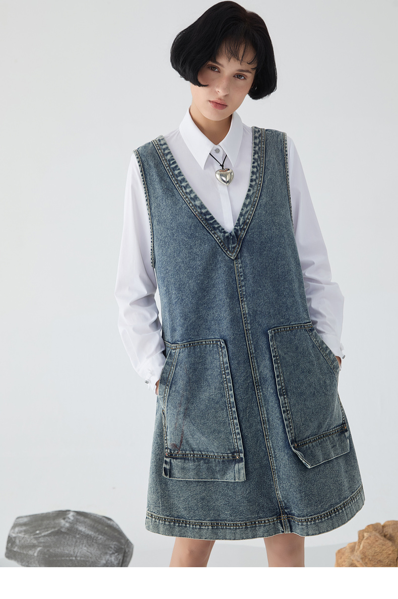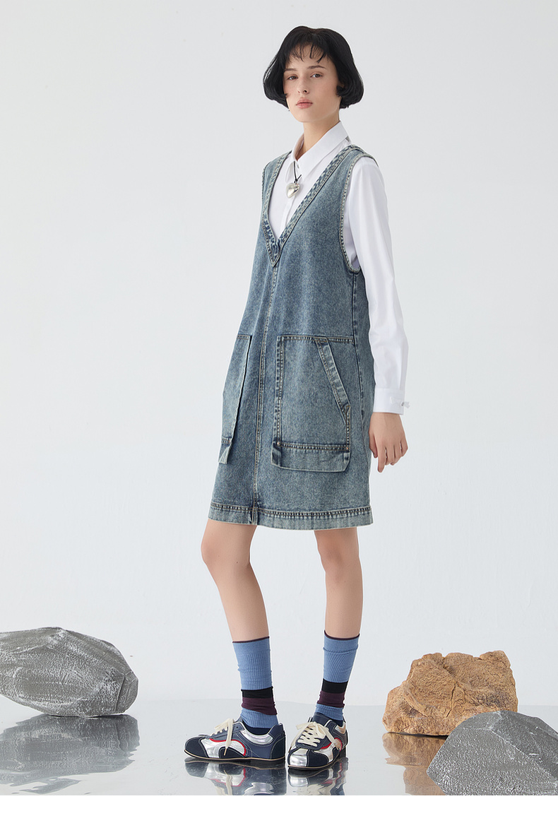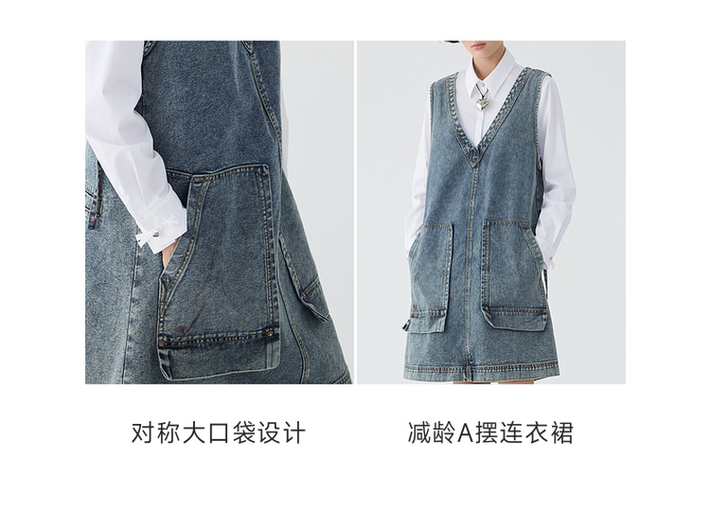 谜底牛仔背心式连衣裙2025春季新品设计感大口袋直筒裙251ML0060