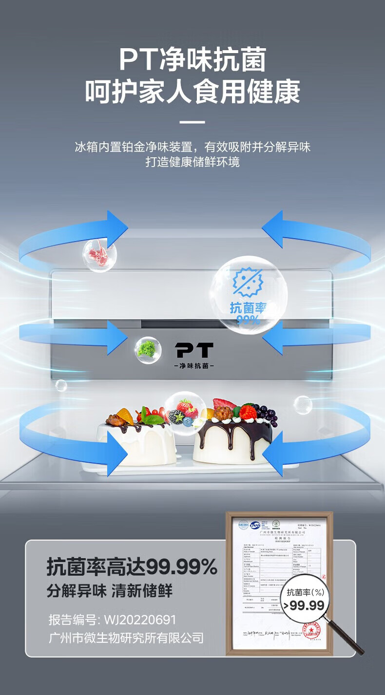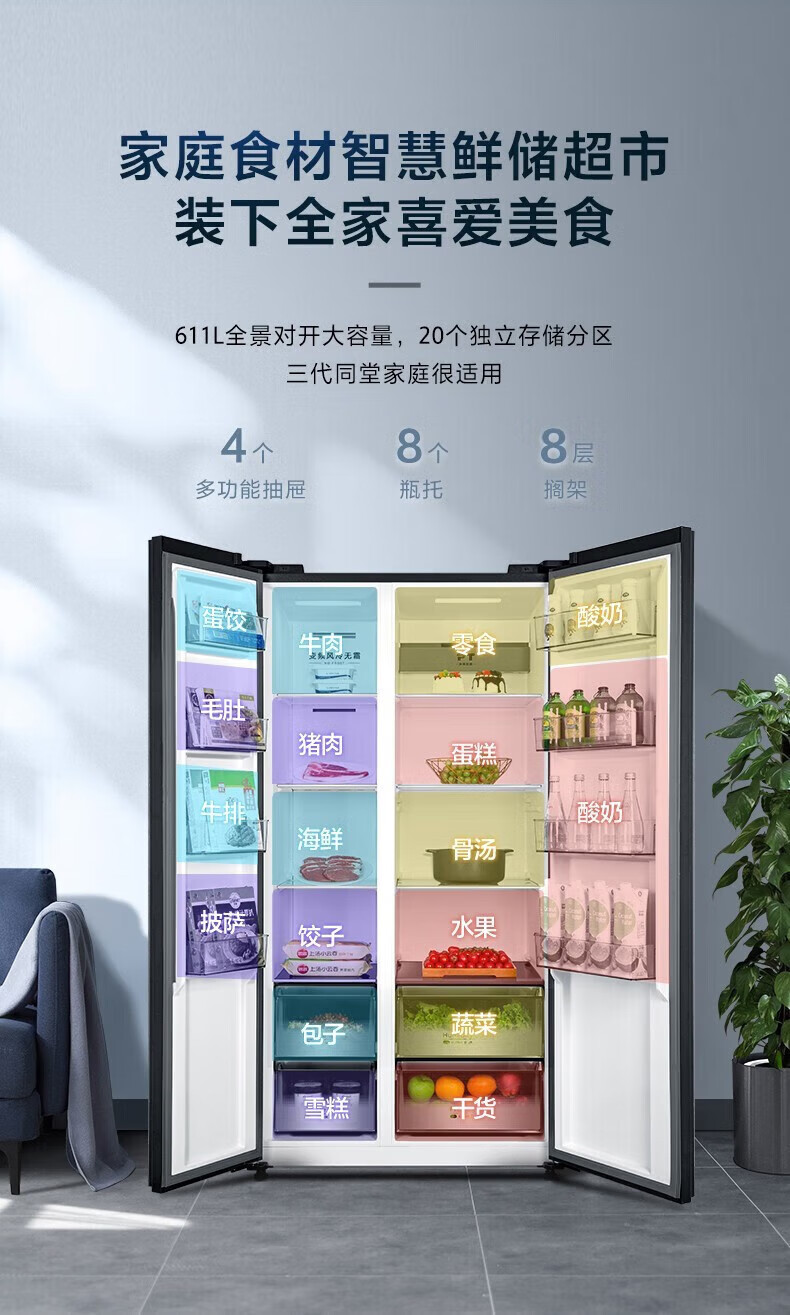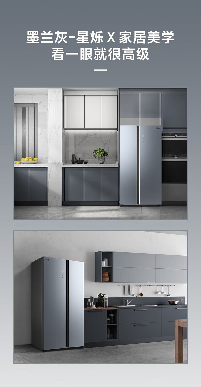 美的610/611L双开门风冷无霜一级能效双变频大容量净味冷冻保鲜冰箱 BCD-611WKGPZM(Q)墨兰灰-星烁
