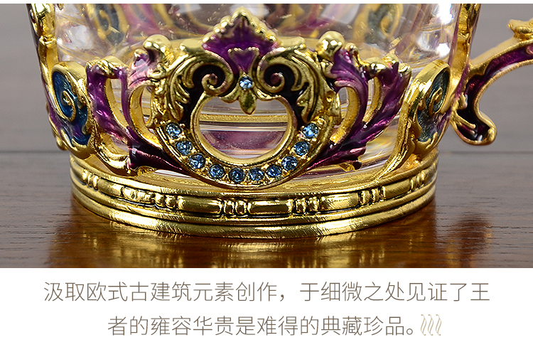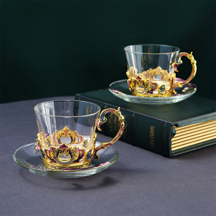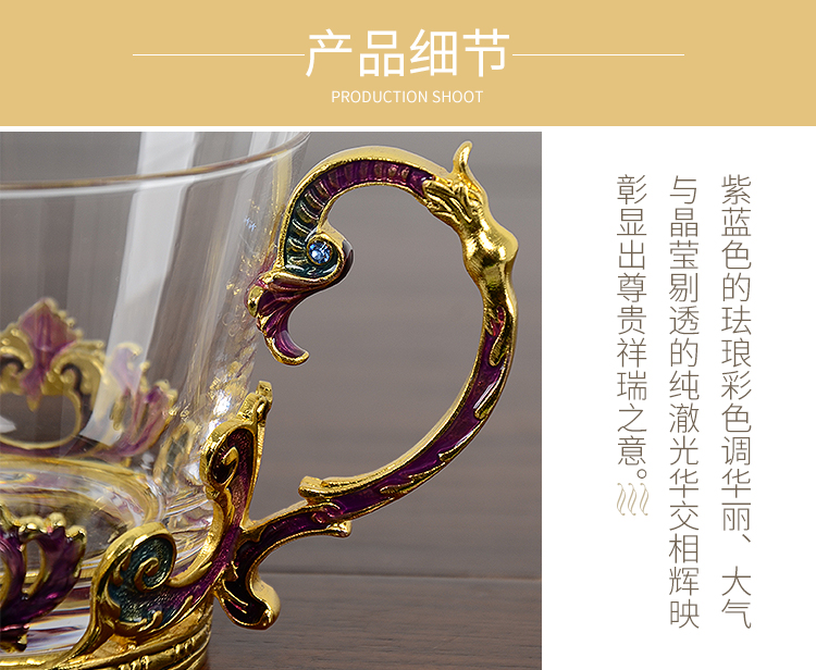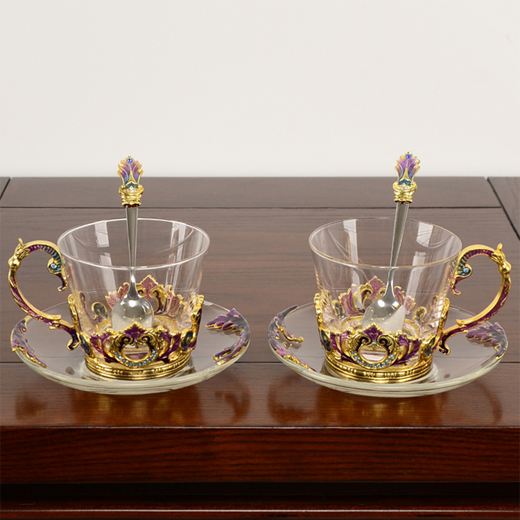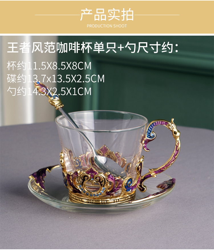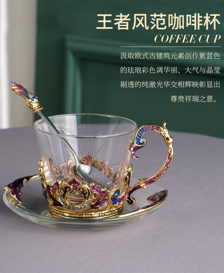 【样品特惠5折,仅1套,无货退款】罗比罗丹珐琅彩欧式奢华创意玻璃咖啡杯个性简约典雅带勺碟礼盒装