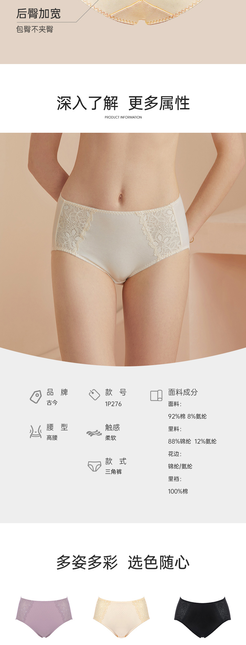 古今90-105臀围大码中高腰舒适提臀收腹三角内裤女1p276
