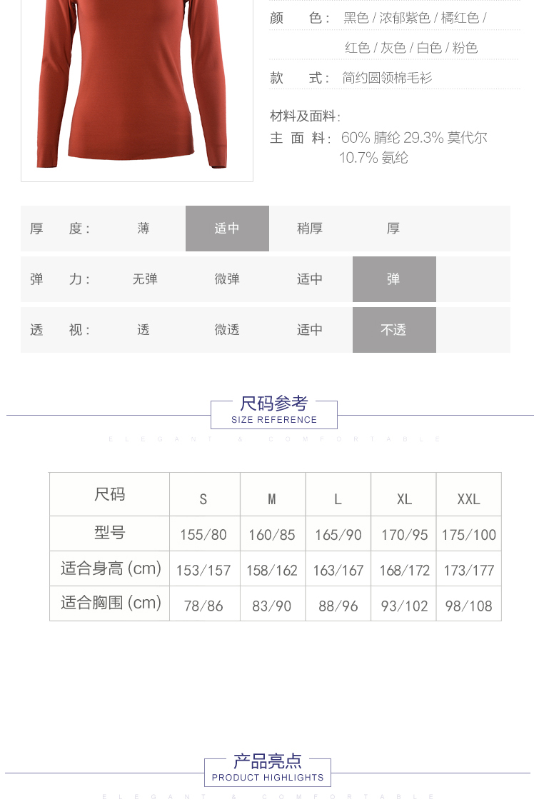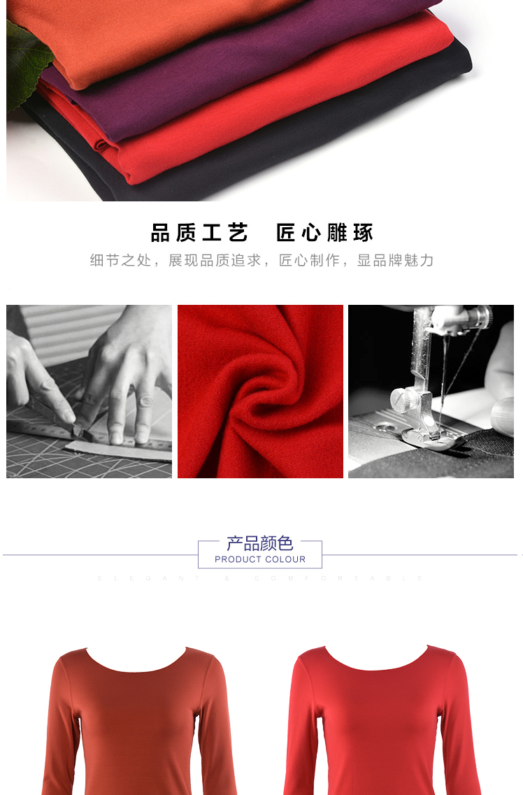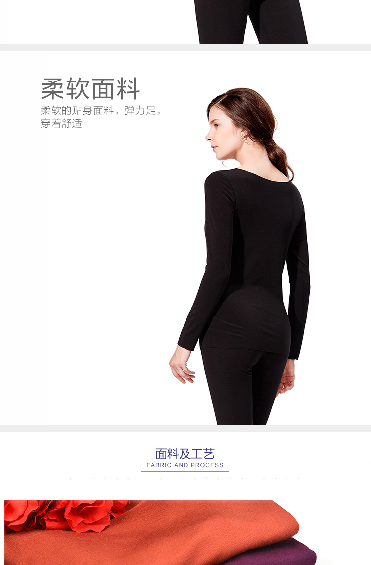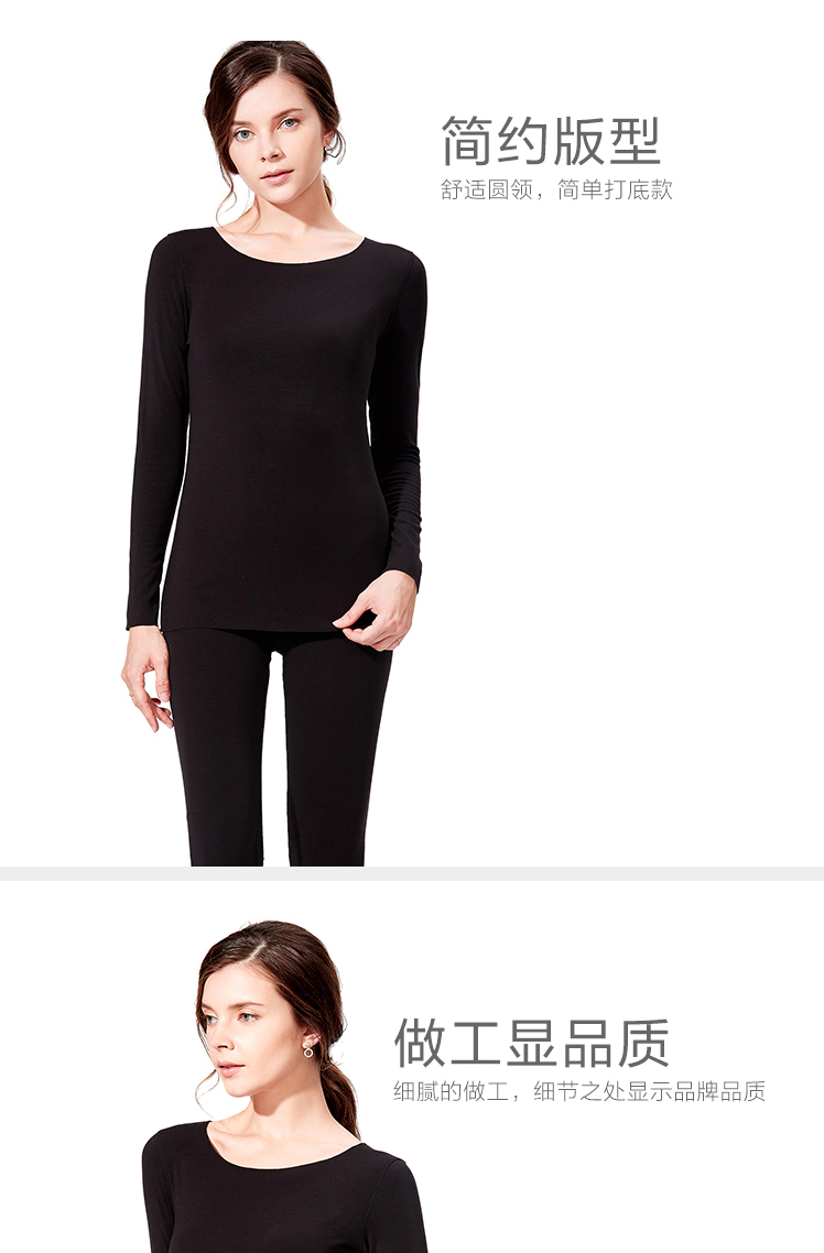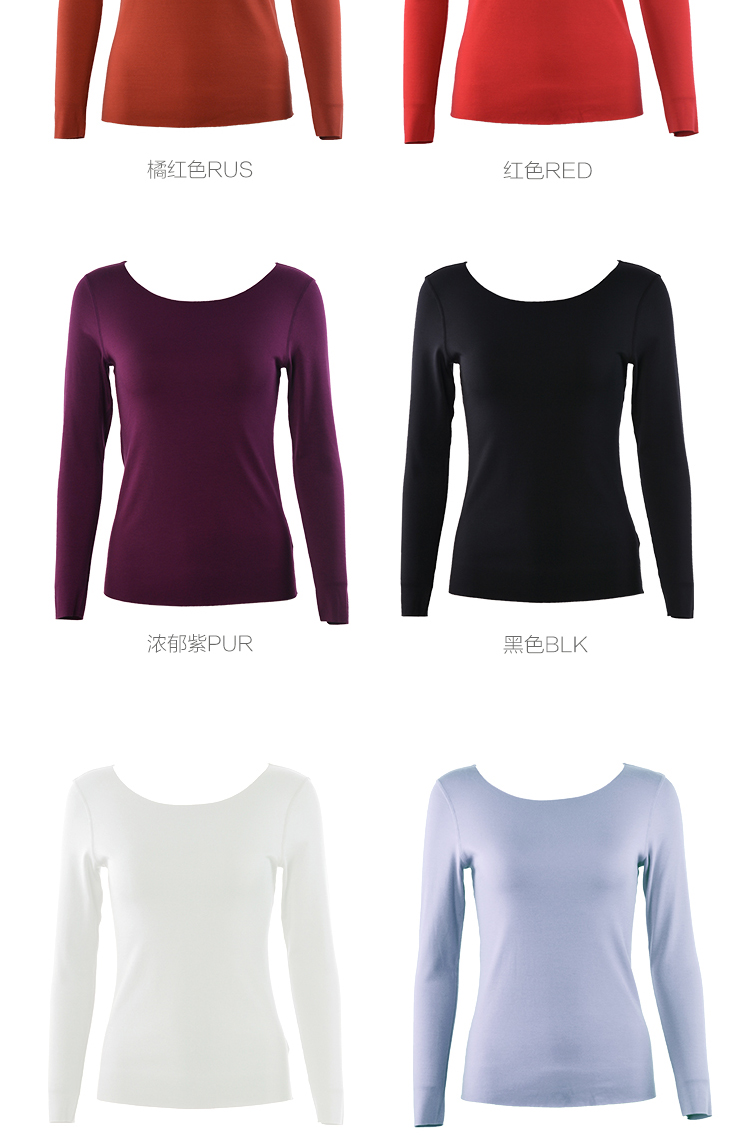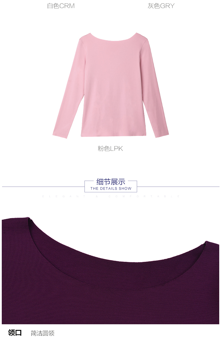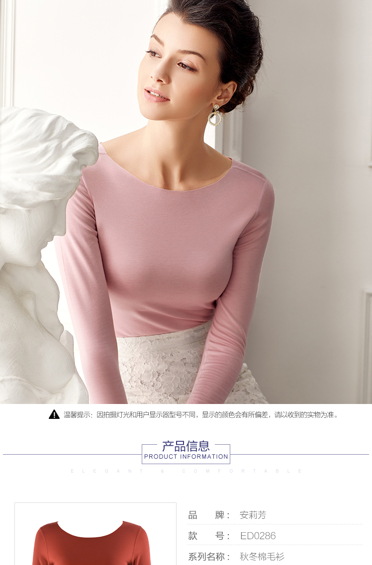 安莉芳秋冬圆领无痕修身暖衣上装女打底棉毛衫ED0286