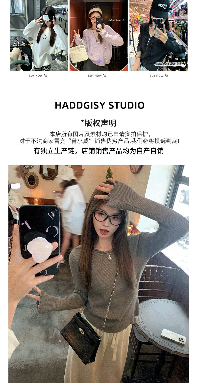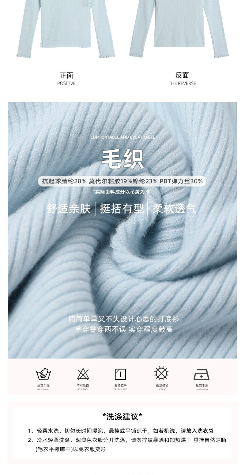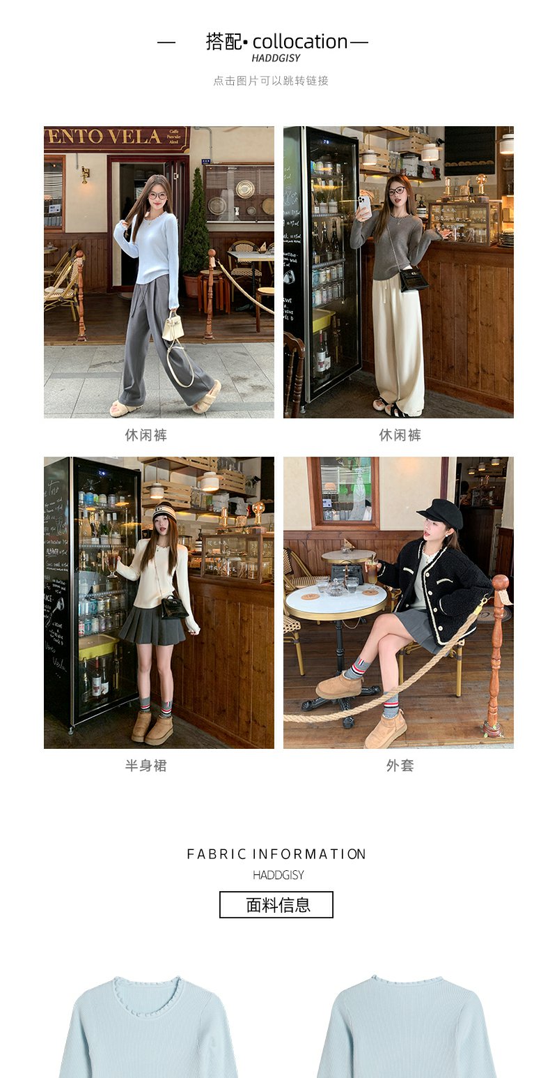 <曾小咸推荐>百搭3色领口木耳边显瘦打底衫