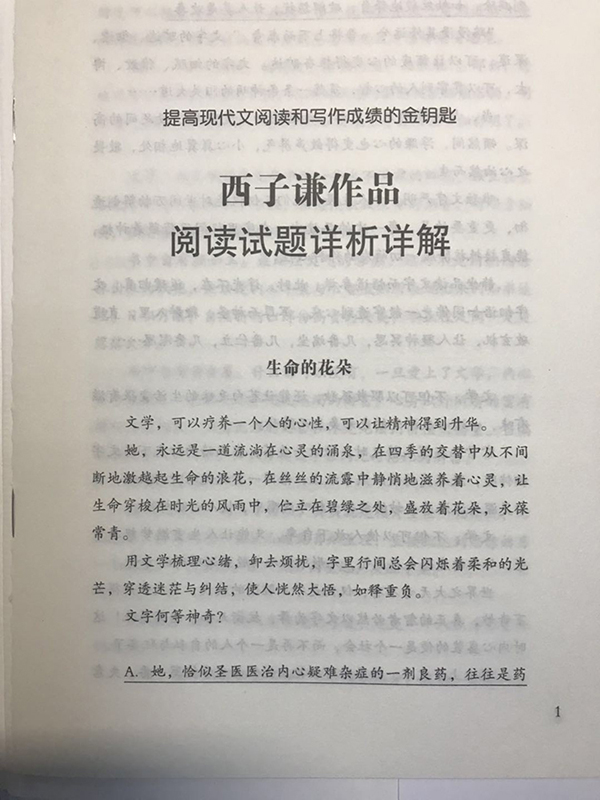 随书附赠《提高现代文阅读和写作成绩的金钥匙:西子谦作品阅读试题详析详解》1册。