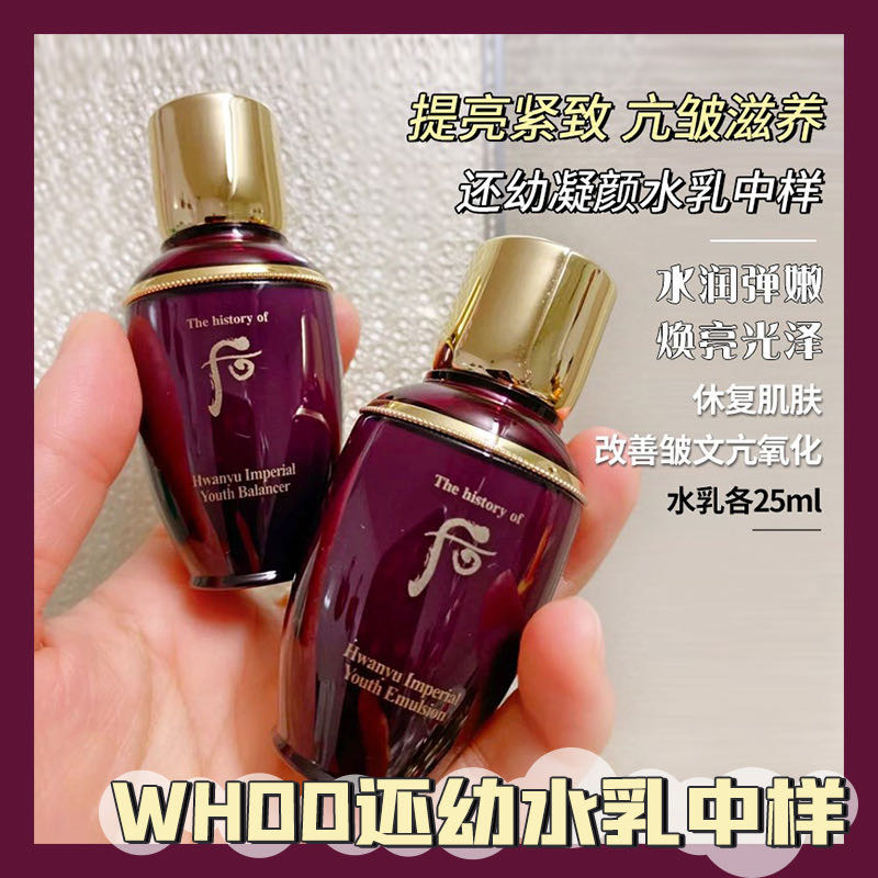 后家最高端系列❗【Whoo/后还幼水乳中样】✅ 水乳各25ML❗专柜正装3400❗4套中样等于正装容量!轻松体验顶奢王牌水乳🤣