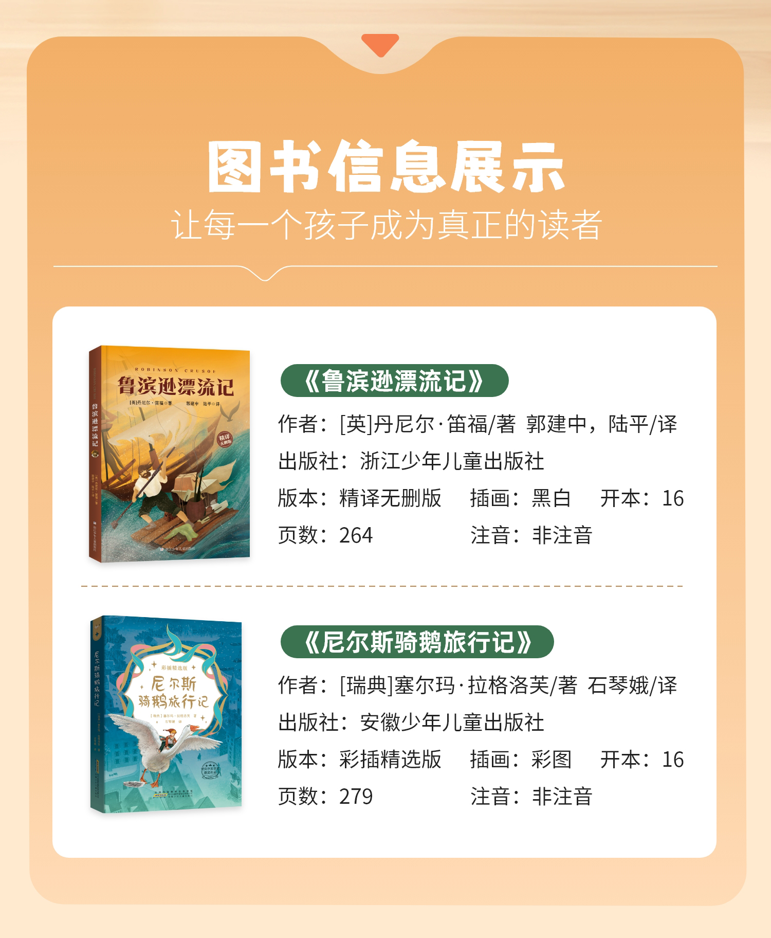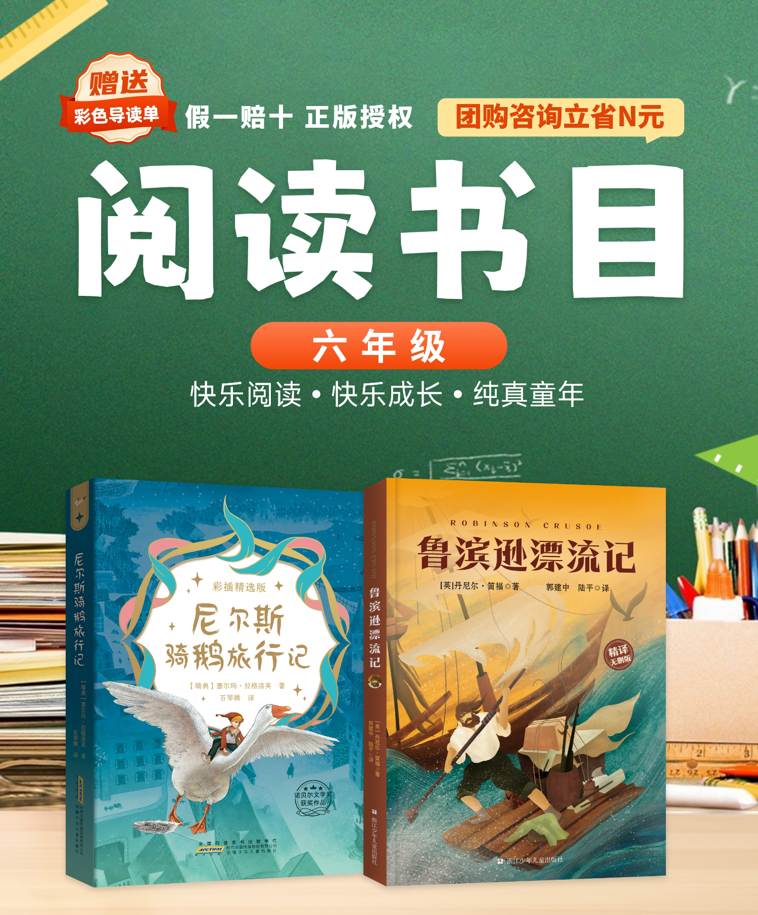 班班26寒六年级【单本】《鲁滨逊漂流记》《尼尔斯骑鹅旅行记》赠导读单