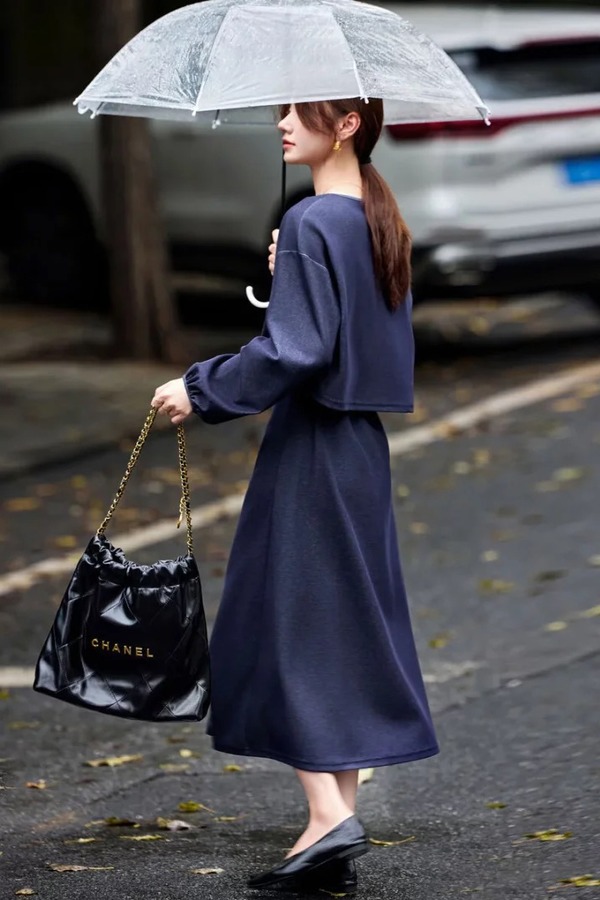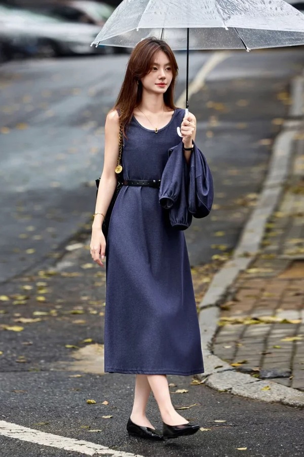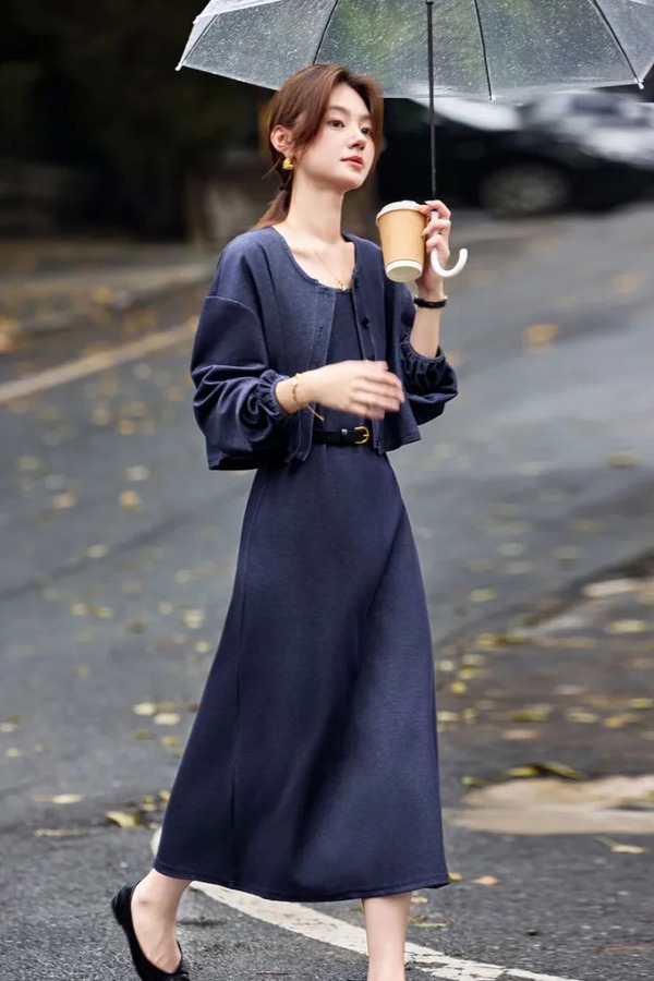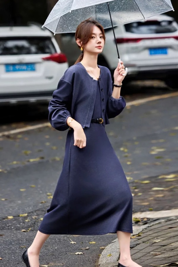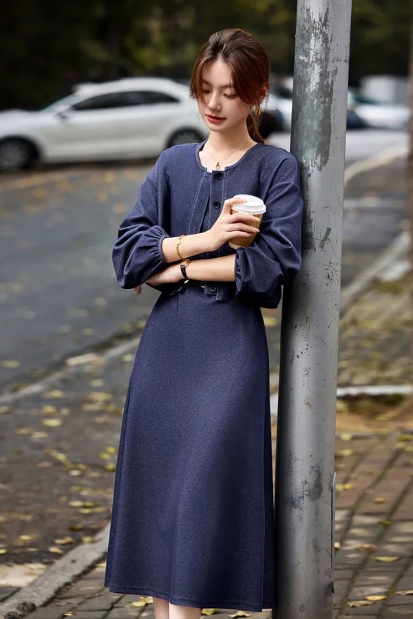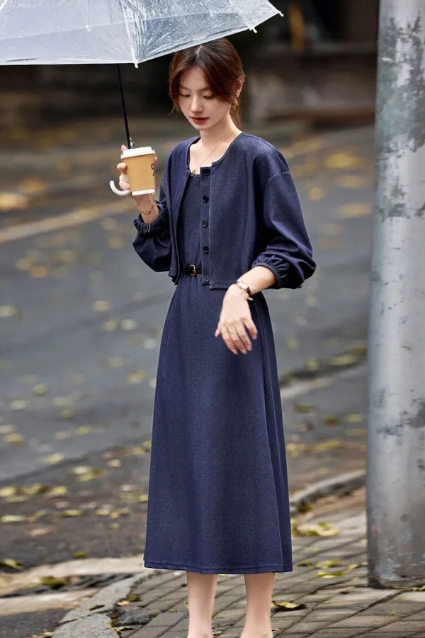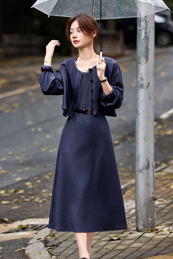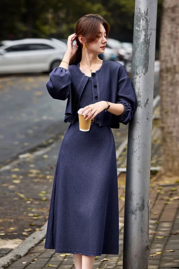 苏醒的乐园 牛仔蓝时尚气质通勤背心裙套装 21667