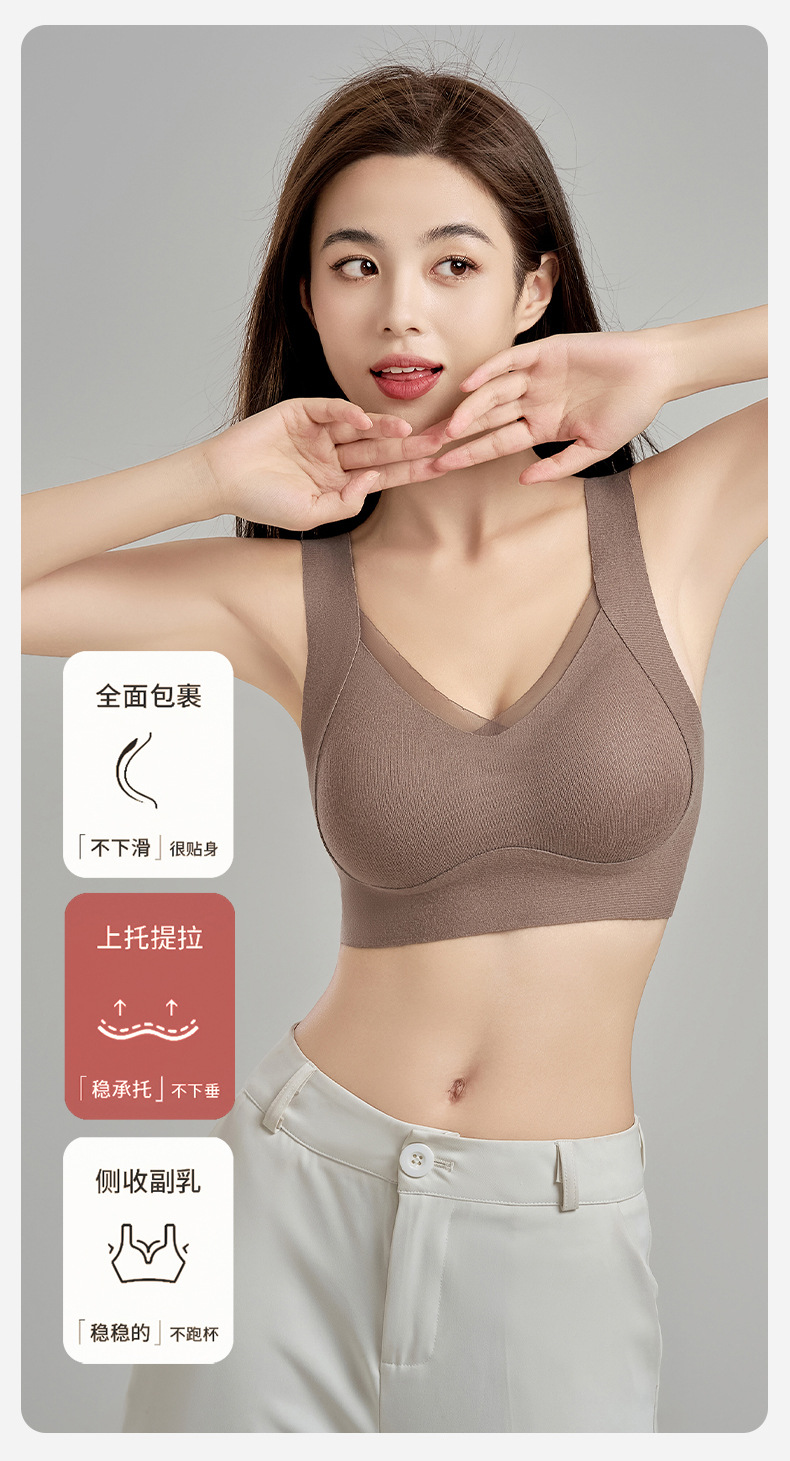 秋冬新品【美背无痕,V领锁骨!】高品质无痕内衣,防走光固定杯,清新磨毛,凸显曲线,美背塑形,无痕防走光。柔软提拉,稳稳不跑杯,让你青春不散场!